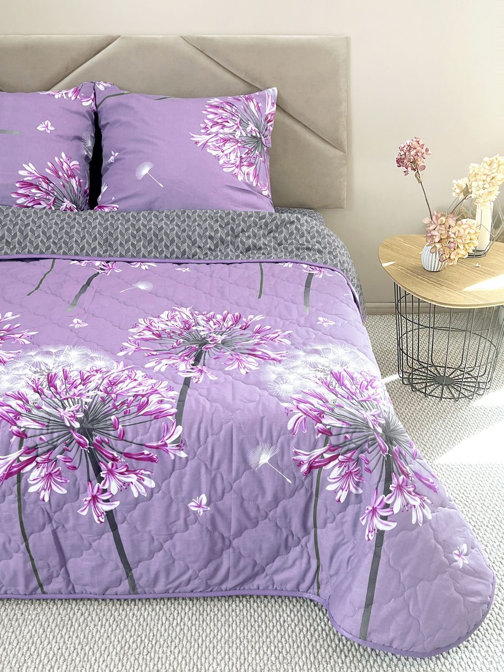 Состав комплекта: поплин плотностью 110 г/м2 (100% хлопок), наполнитель - синтепон 150 г/м2