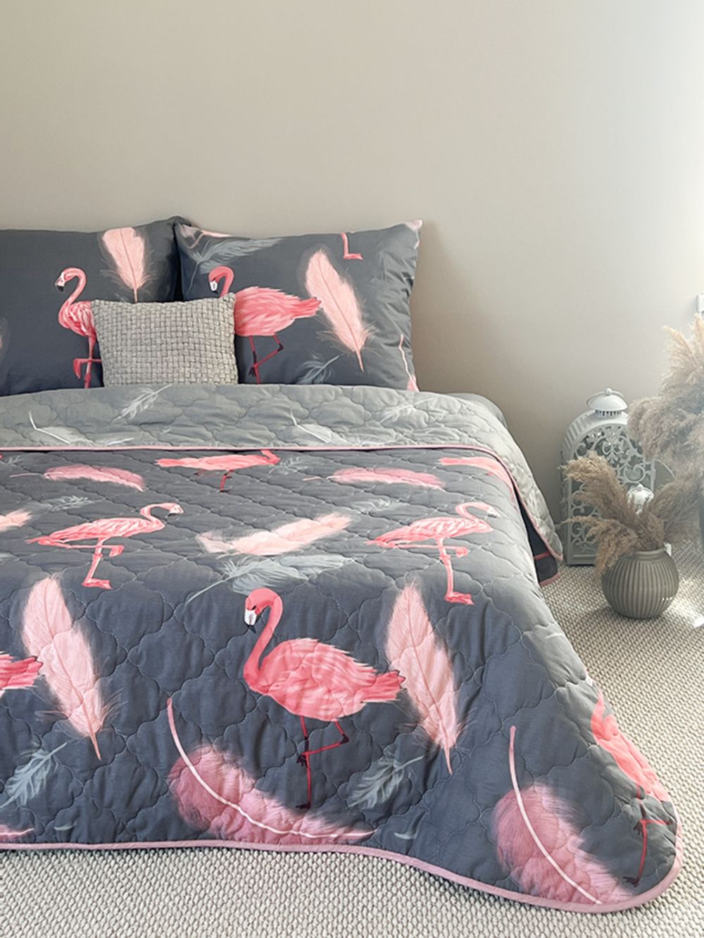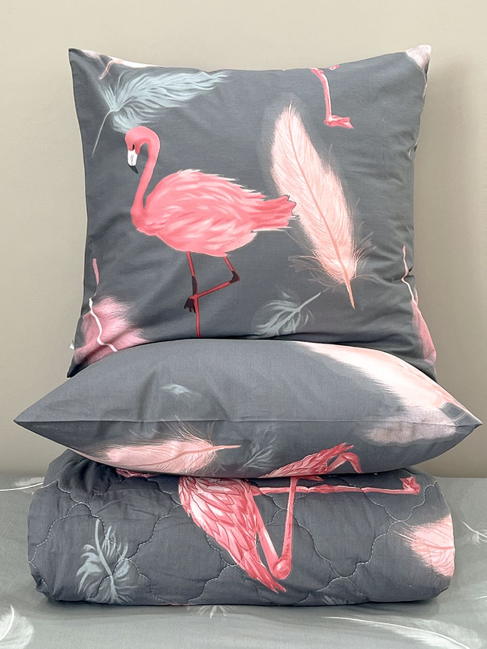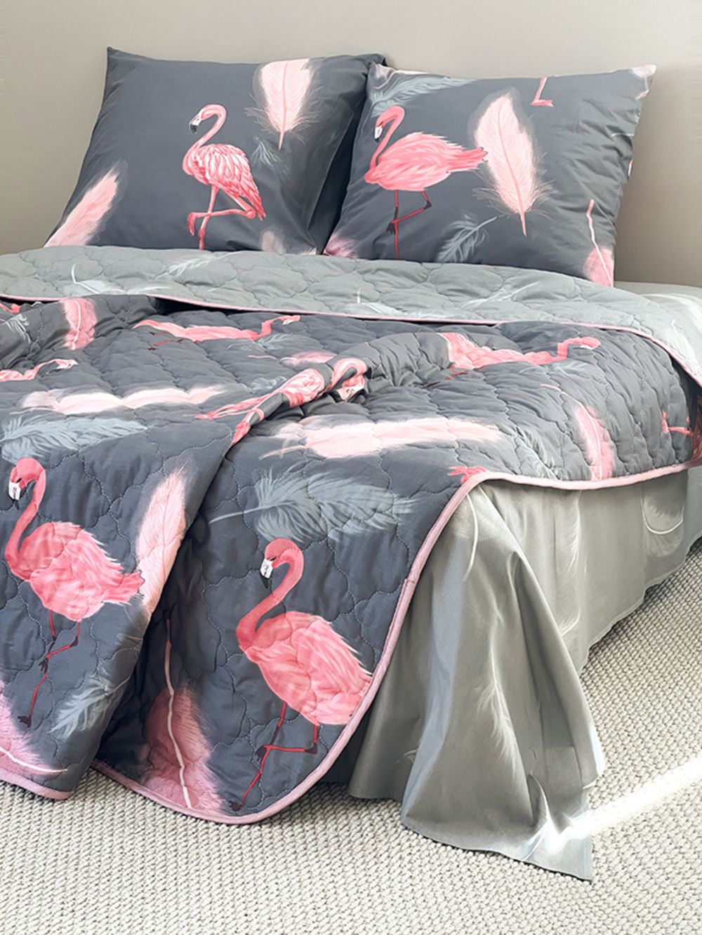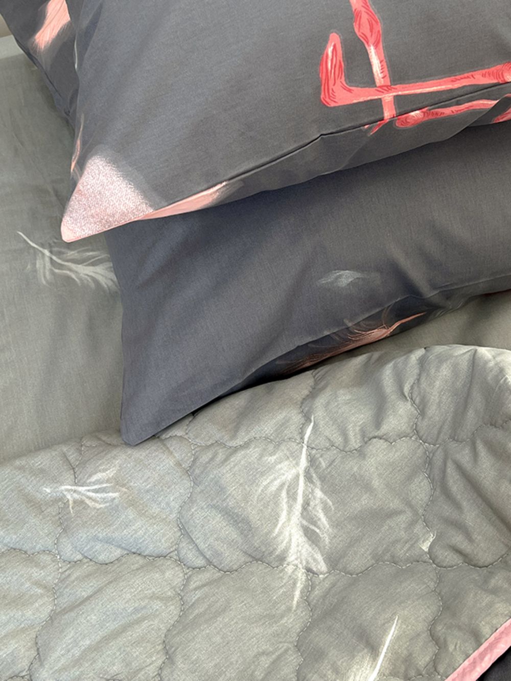 Края одеяла обработаны окантовочным материалом, наволочки клапан