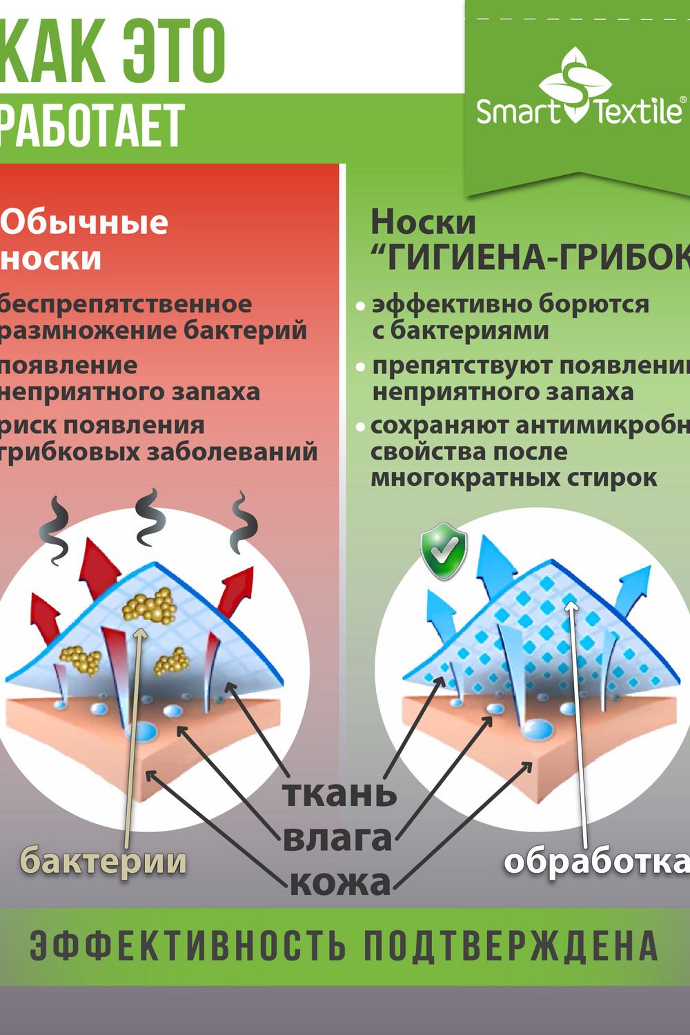 Противогрибковая защита: Носки обработаны специальными средствами, которые предотвращают развитие грибковых инфекций и защищают кожу ног от бактерий.