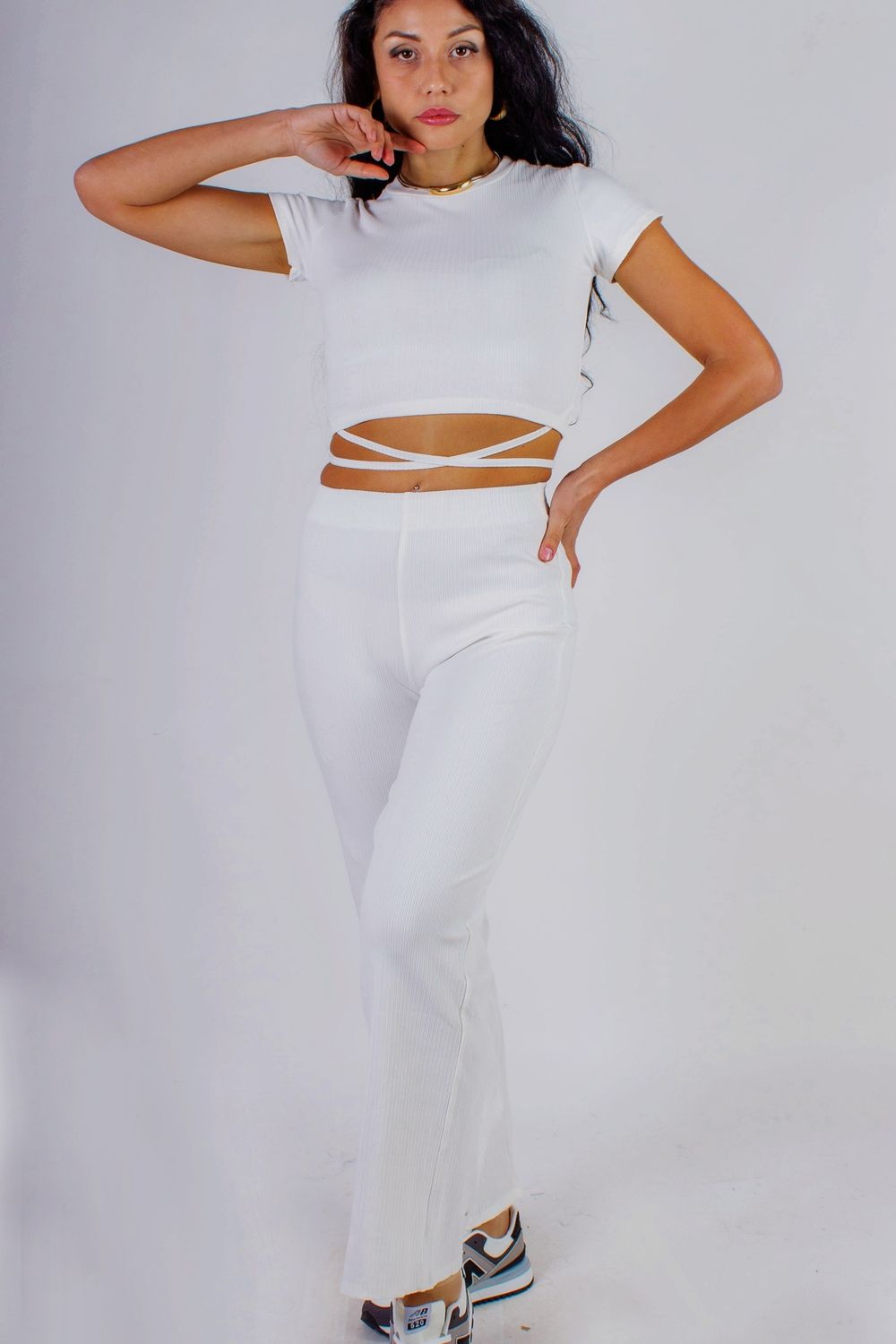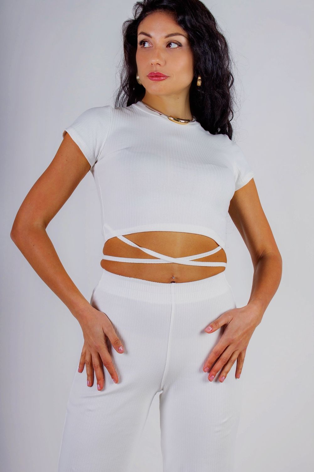 Укороченный топ с декоративными завязками — одна из «изюминок» этого костюма. Его эффектный дизайн позволяет обматывать завязки вокруг себя по вашему желанию, создавая оригинальный и стильный наряд даже для самых минималистичных образов. Завязки на обнаженное тело подчеркивают ваши достоинства и добавляют нотку смелости, обеспечивая при этом идеальную посадку. Вы можете экспериментировать с различными способами завязывания, меняя образы от повседневного до вечернего.