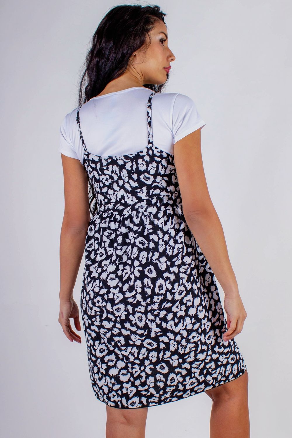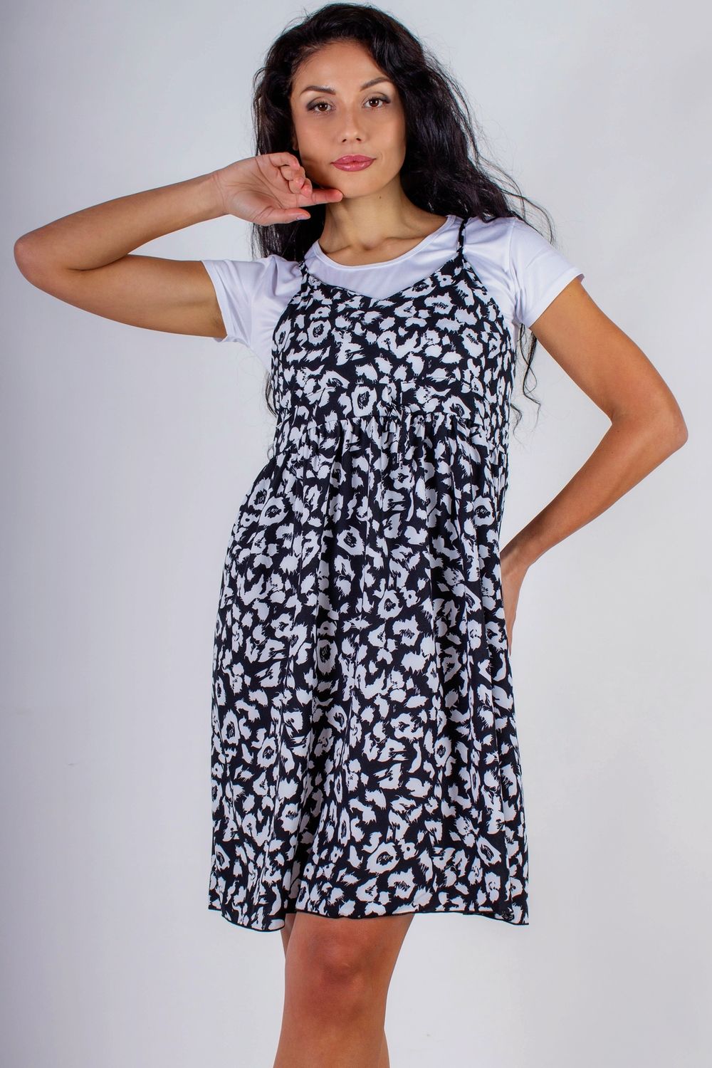 Комплект Сарафан с кокеткой+Футболка, арт. 8686 - Черный+белые штрихи
