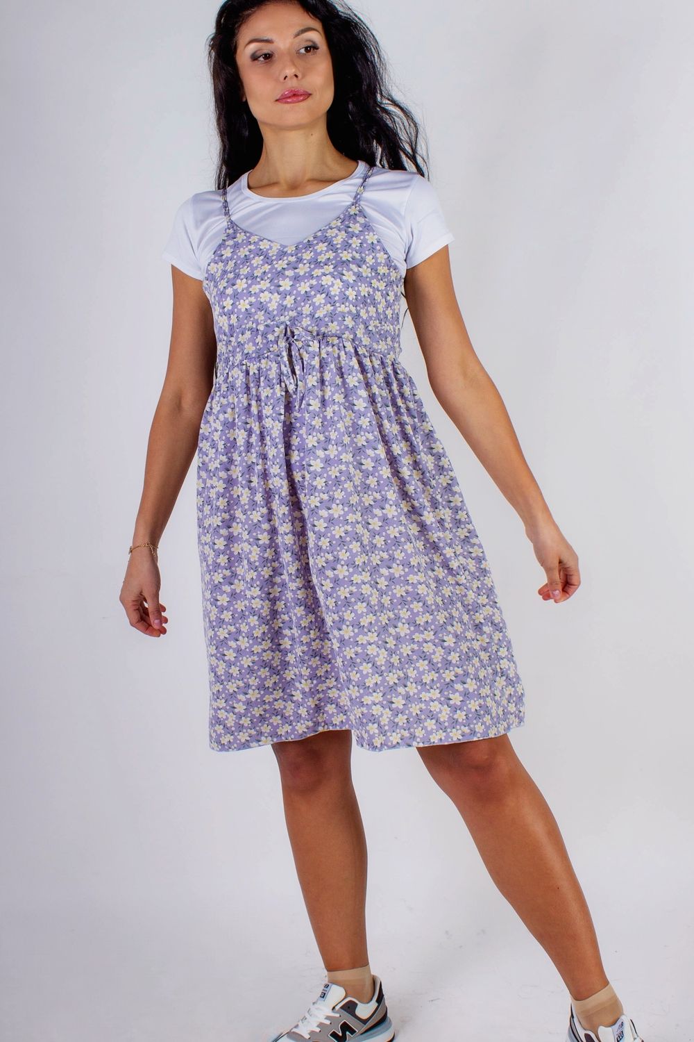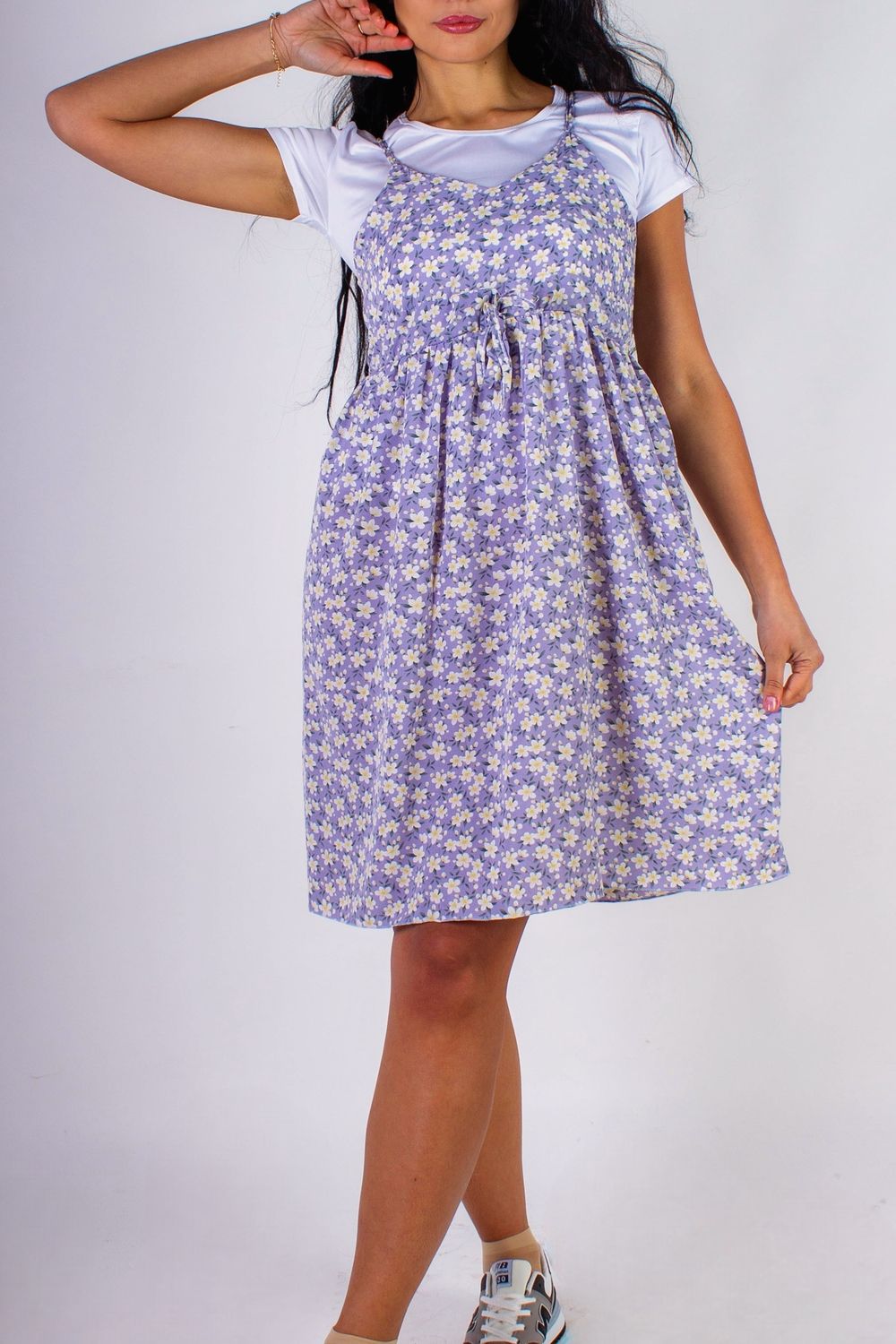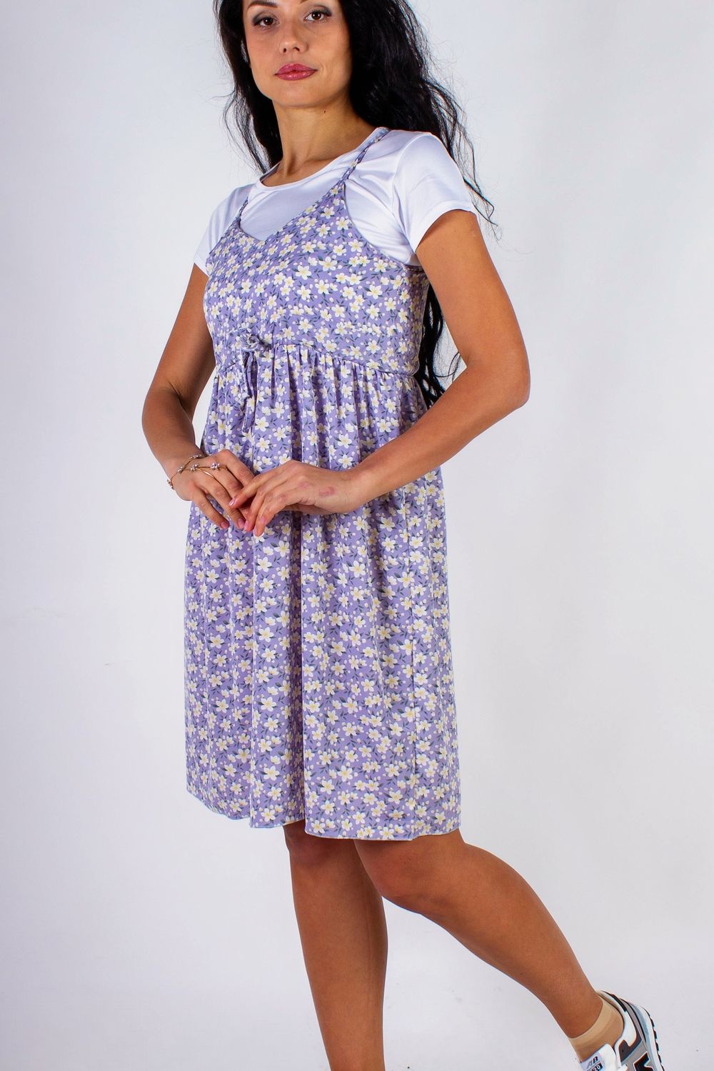 Комплект Сарафан с кокеткой+Футболка, арт. 8686 - сирень+белый цветочек