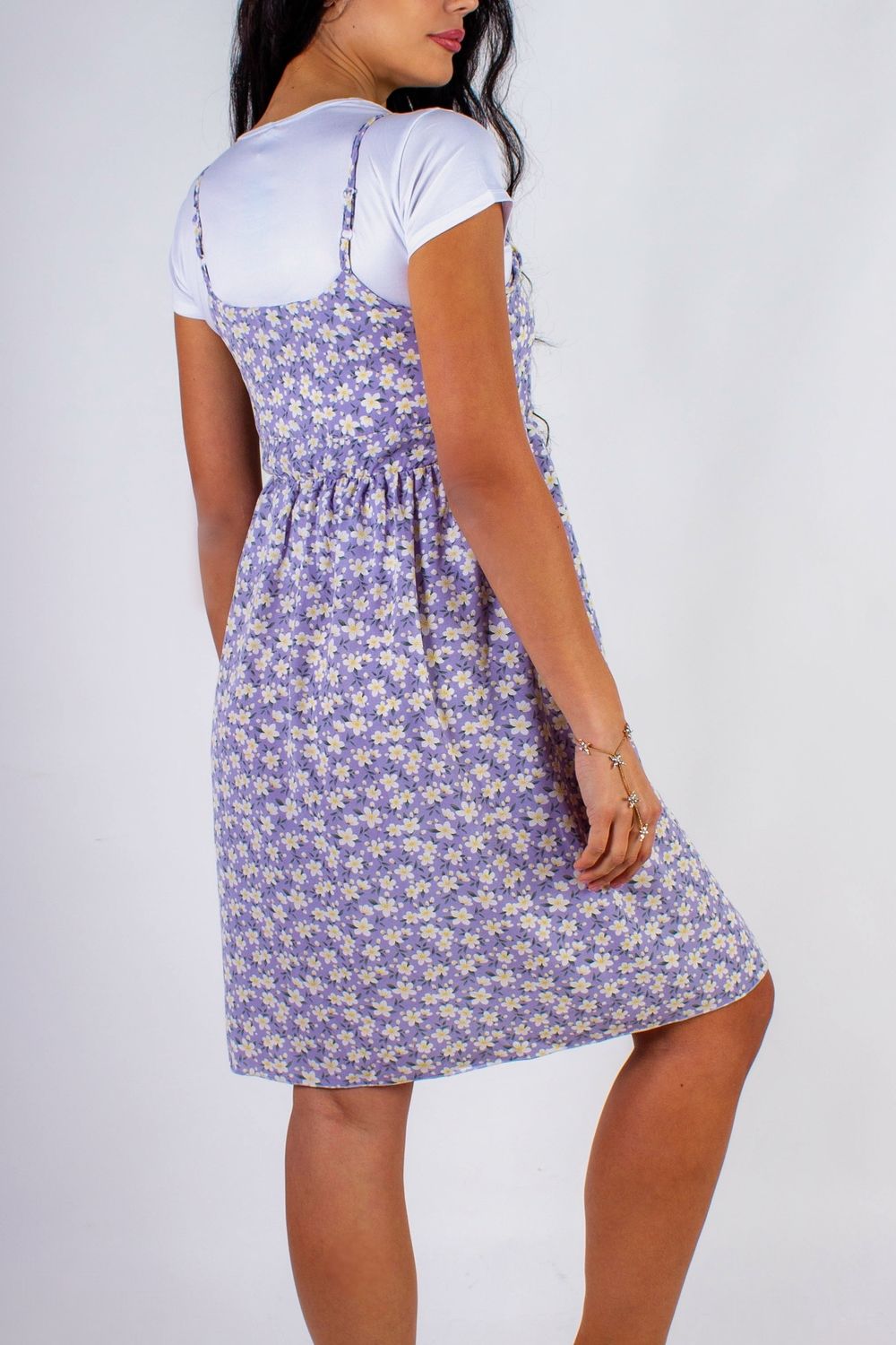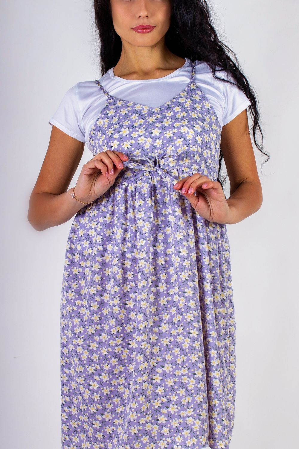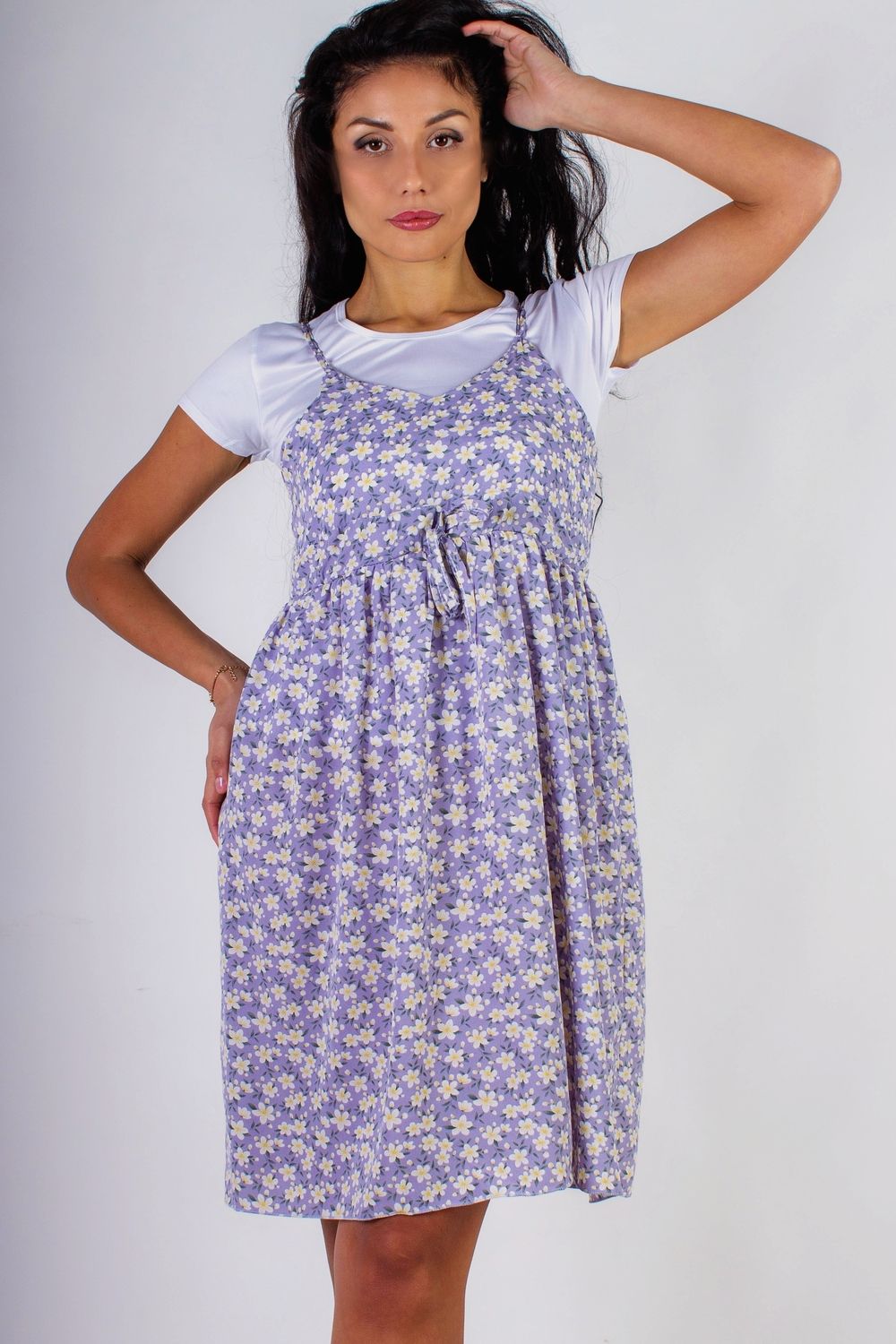Комплект Сарафан с кокеткой+Футболка, арт. 8686 - сирень+белый цветочек