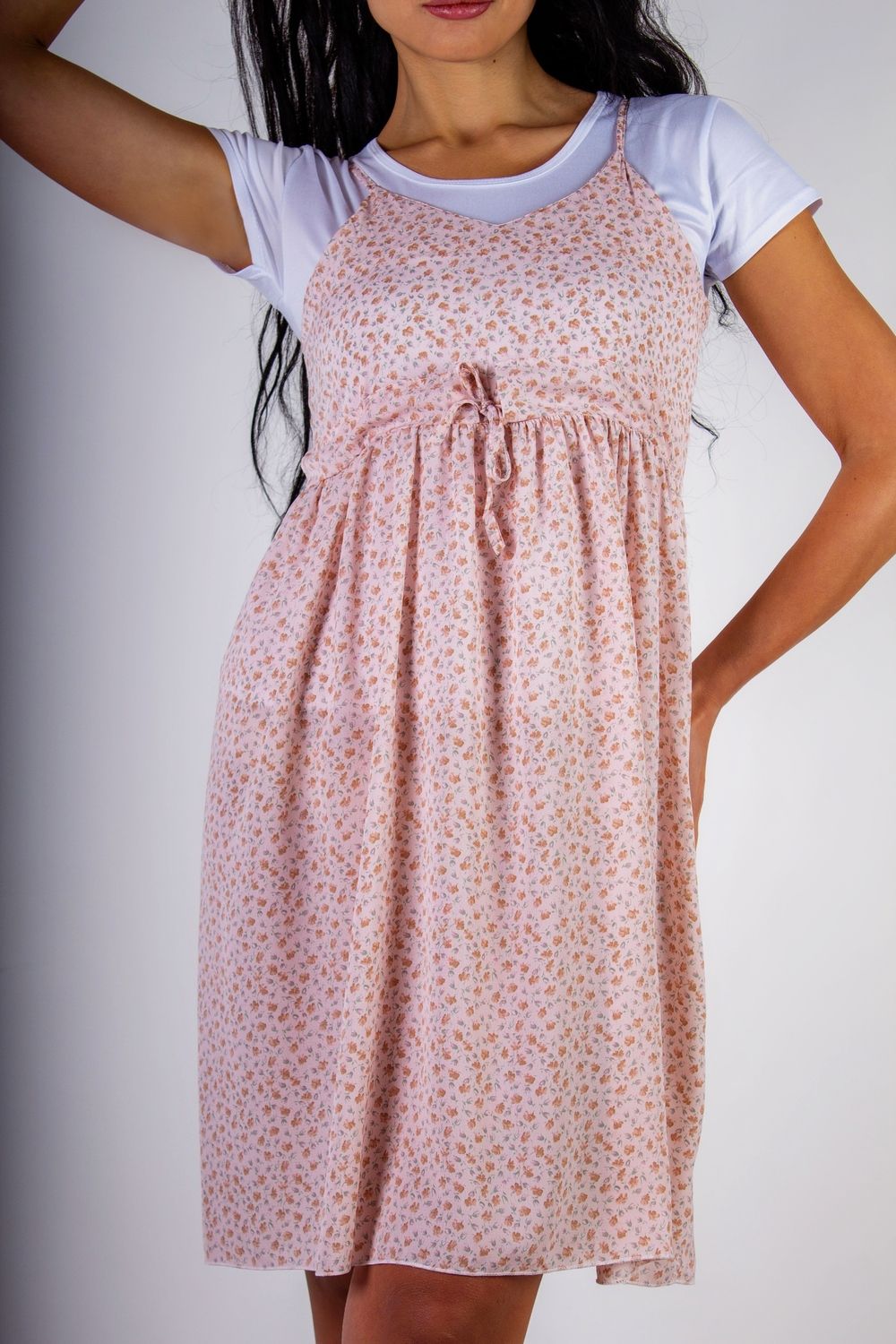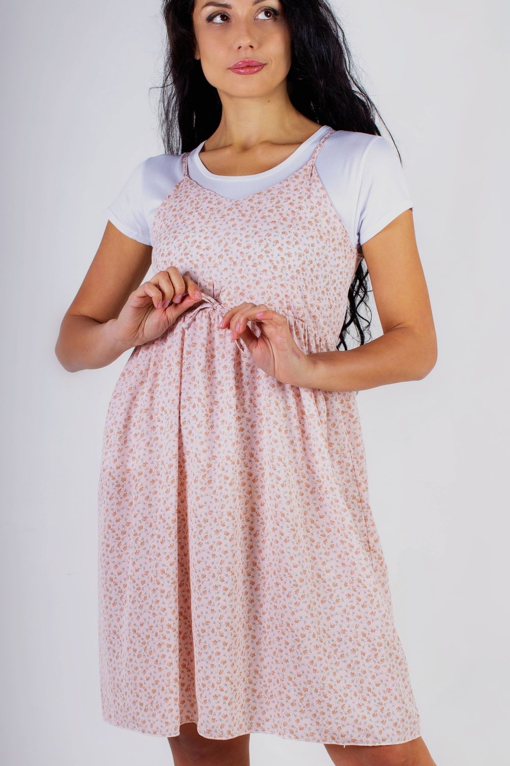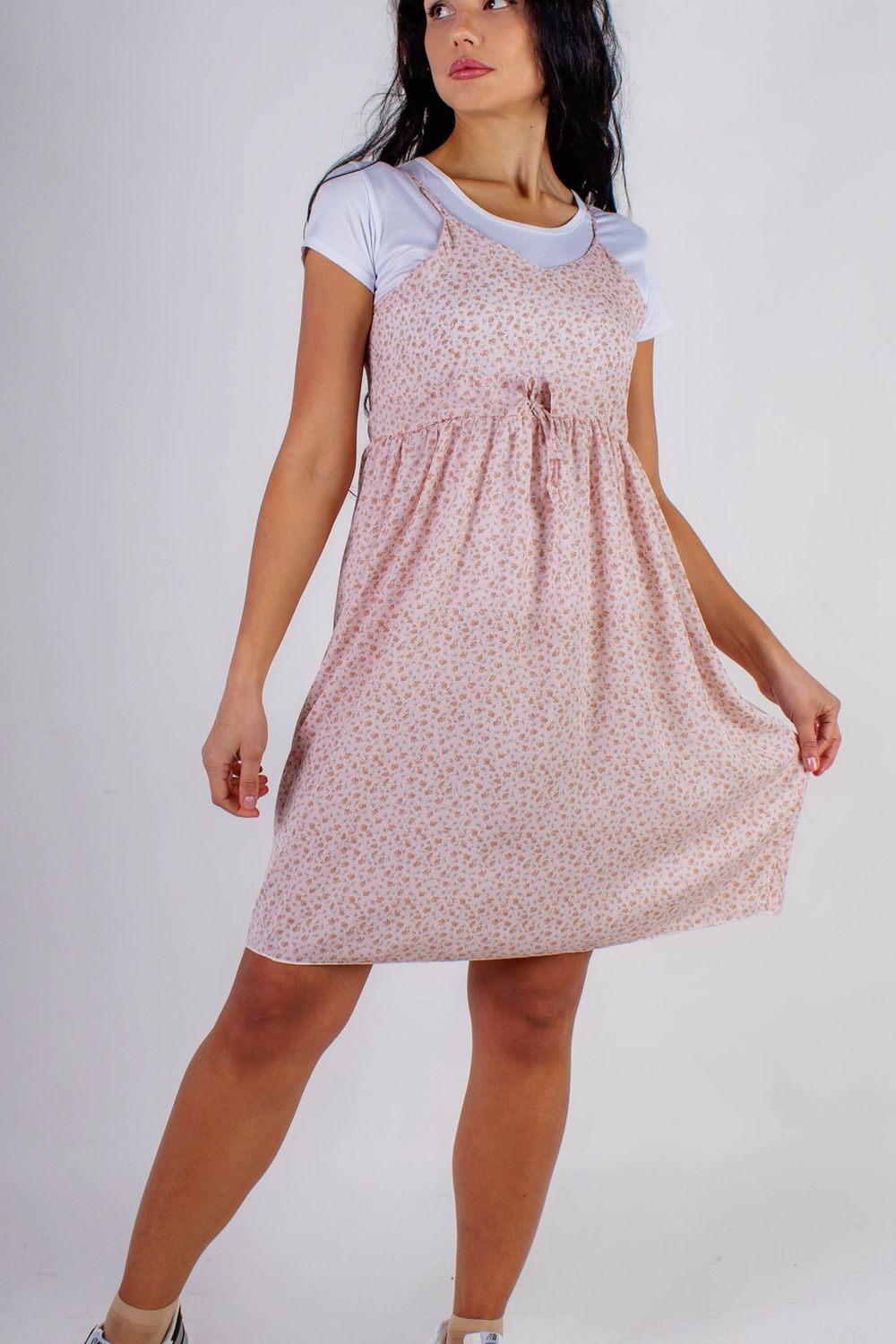 Комплект Сарафан с кокеткой+Футболка, арт. 8686 - светло розовый + бежевый цветочек