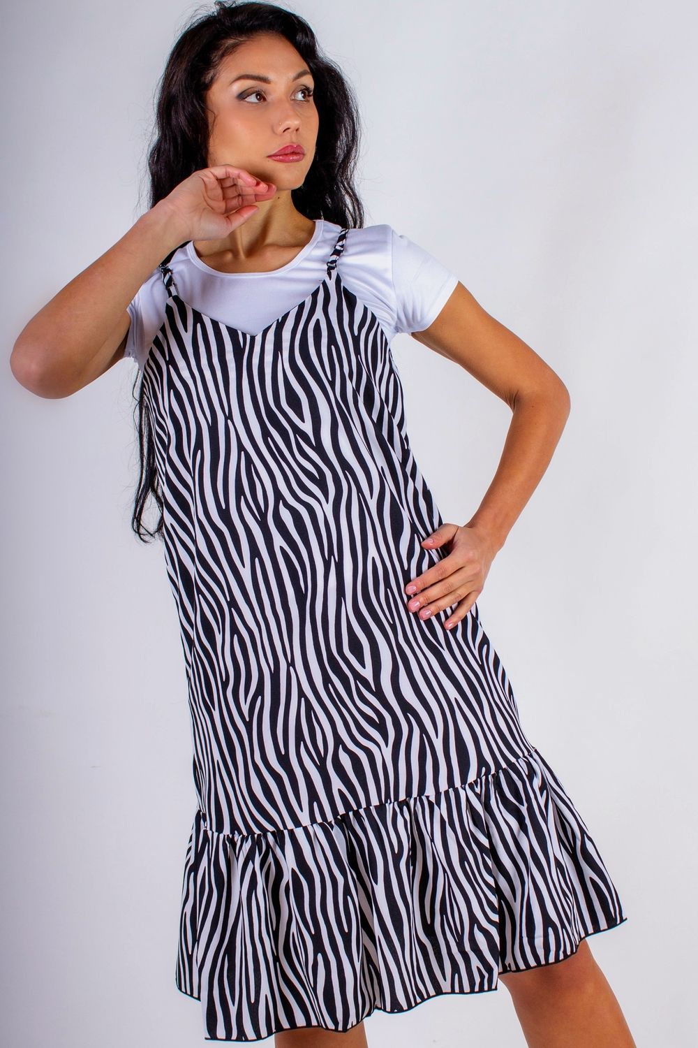 Комплект Сарафан с воланом+Футболка, арт. 8868 - Черно-белый зебра