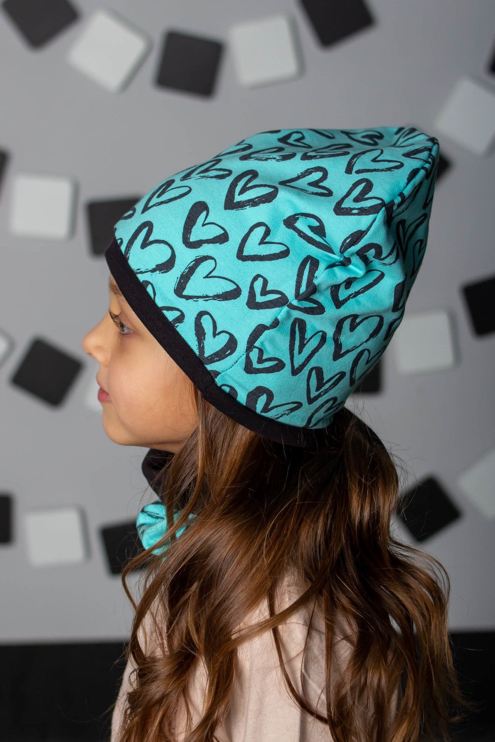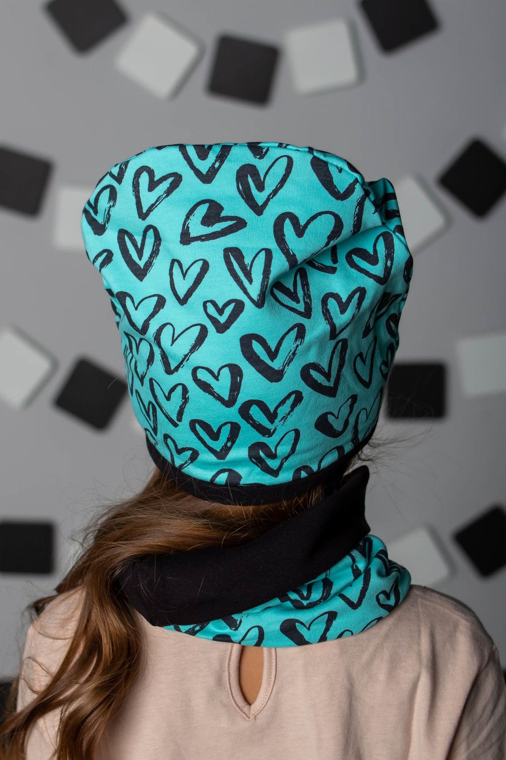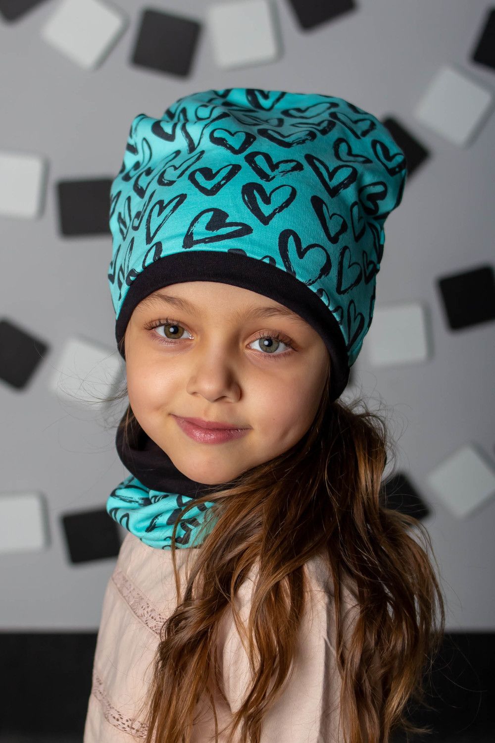 Комплект Сердца-Мята (шапка+снуд) детский - зеленый