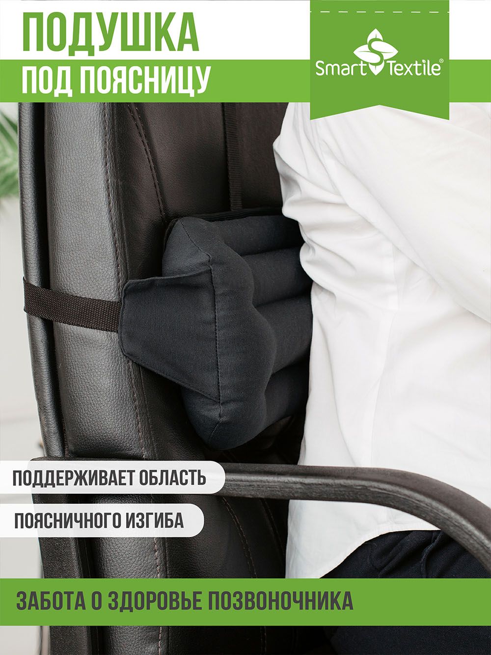 Подушка под поясницу поддерживает поясничный изгиб, обеспечивая анатомически правильное положение позвоночника.