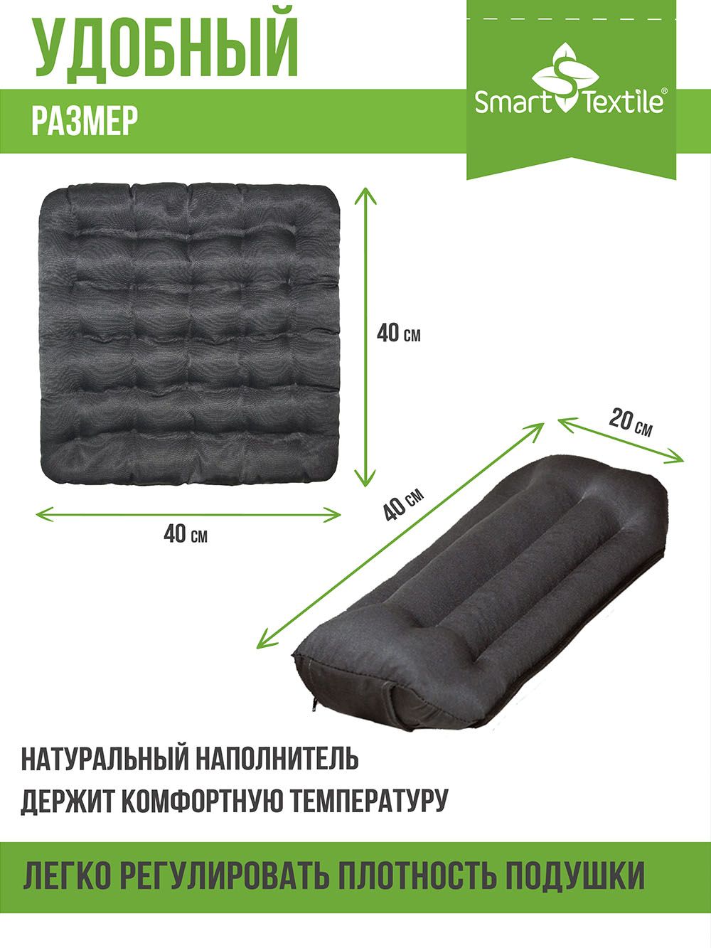 Подушка на сиденье с наполнителем из гречишной лузги предотвращает застойные явления в области малого таза, снижает давление на крестец и предотвращает затекание мышц при длительном сидении. Пирамидальные крупинки лузги оказывают деликатное воздействие на кожу, улучшая кровообращение. Дизайн подушки с объемными ячейками позволяет воздуху свободно циркулировать, обеспечивая комфорт даже в жаркую погоду.