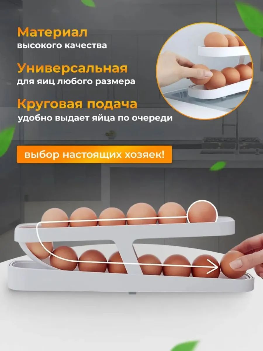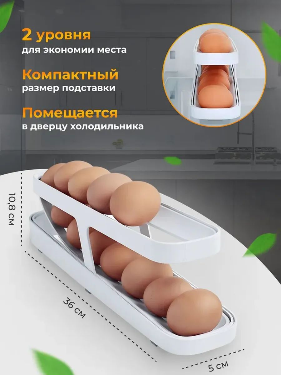 Органайзер для холодильника поможет разместить 12-14 яиц в одной стойке. Диспенсер для яиц занимает мало места в холодильнике. Пластиковый контейнер для продуктов экономит пространство и поддерживает порядок в холодильнике. Кухонный держатель подставка под яйца имеет 2 уровня. Полимерный оргонайзер на полку в холодильник. Емкость полимерная для еды изготовлена из безопасных эко материалов, не впитывает запахи и не разрушается от холода.