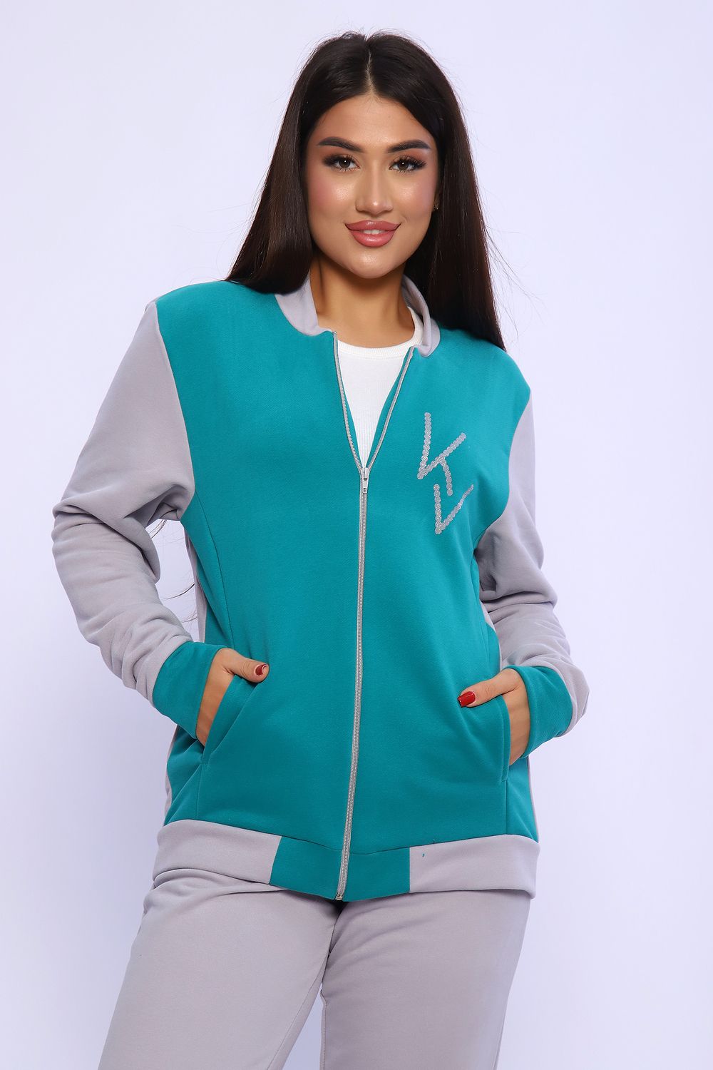 Костюм женский молодежный - бомбер с брюками - выполнен из футера 3-нитки петля с обработкой Софт Браш. Бомбер на молнии, отделка в цвет брюк, воротник-стойка, в боках карманы, на левой полочке оригинальный принт, рукава на резинке. Брюки с карманами, пояс на широкой резинке, низ брюк также на резинке. Костюм очень комфортный и удобный, идеально подойдет для прогулок и отдыха.