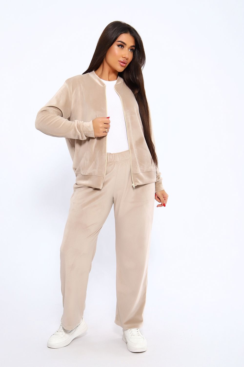 Костюм женский из мягкого велюра состоит из брюк и бомбера. Брюки имеют идеальную посадку, бомбер свободного кроя. Костюм идеально подойдет как для дома, так и для отдыха и прогулок.