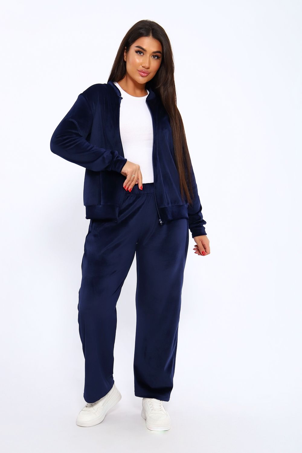 Костюм женский из мягкого велюра состоит из брюк и бомбера. Брюки имеют идеальную посадку, бомбер свободного кроя. Костюм идеально подойдет как для дома, так и для отдыха и прогулок.