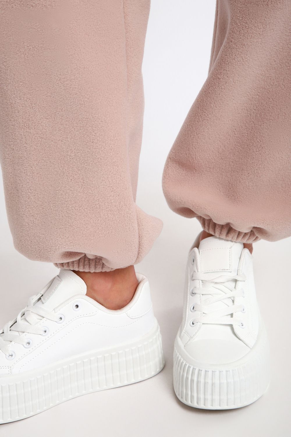Костюм женский флисовый состоит из толстовки и брюк. Толстовка с кокеткой, на молнии, с воротником-стойкой, рукав спущенный внизу на резинке. Брюки с карманами, внизу на резинке. Костюм мягкий, теплый, удобный, идеально подойдет для прогулок и отдыха в прохладное время года. Молния может отличаться по цвету.