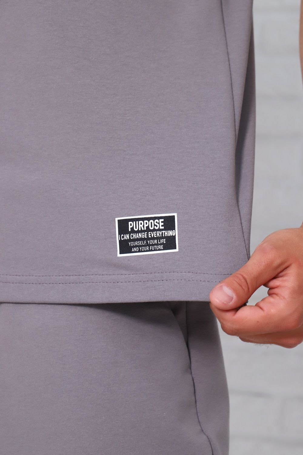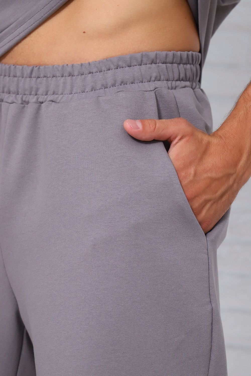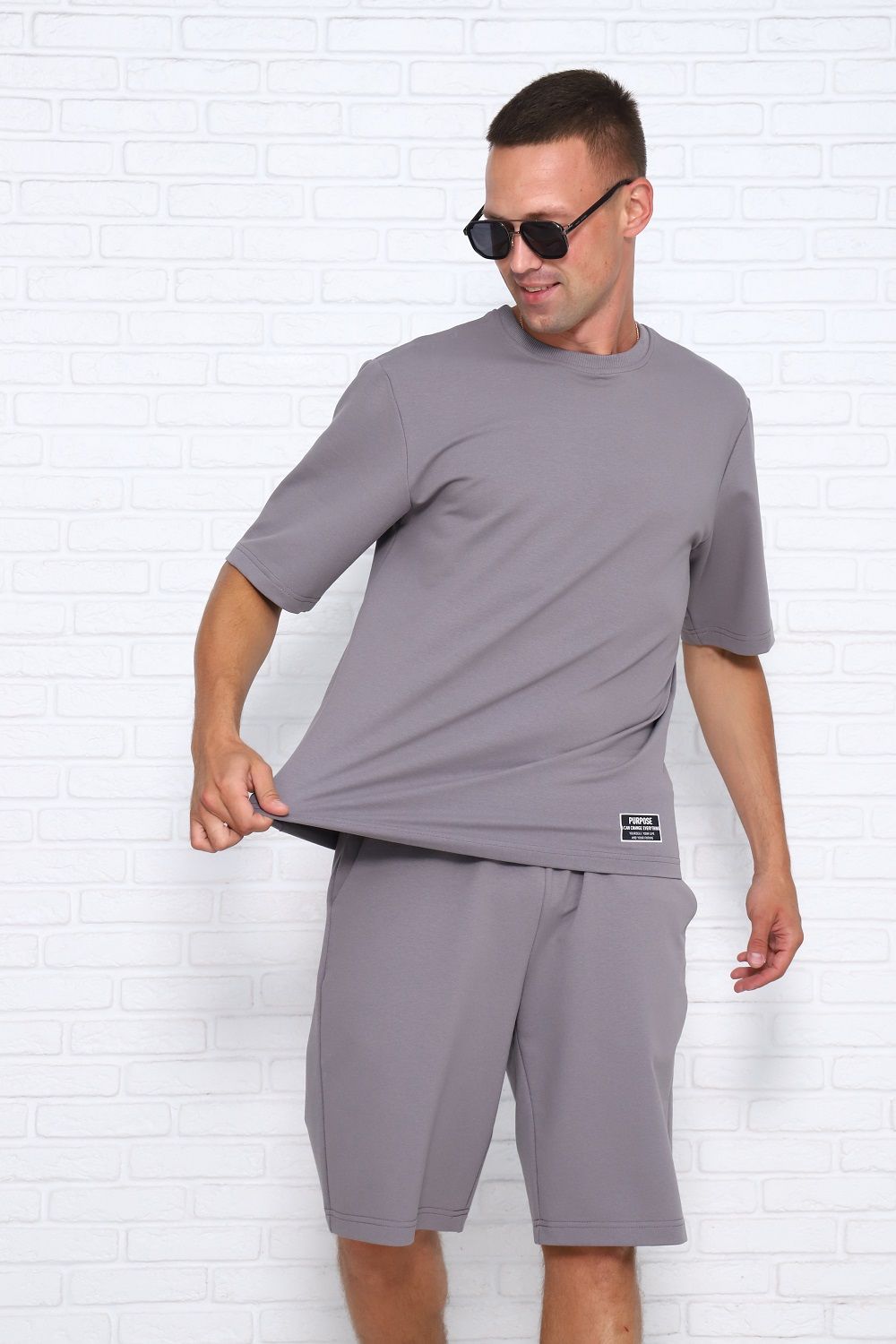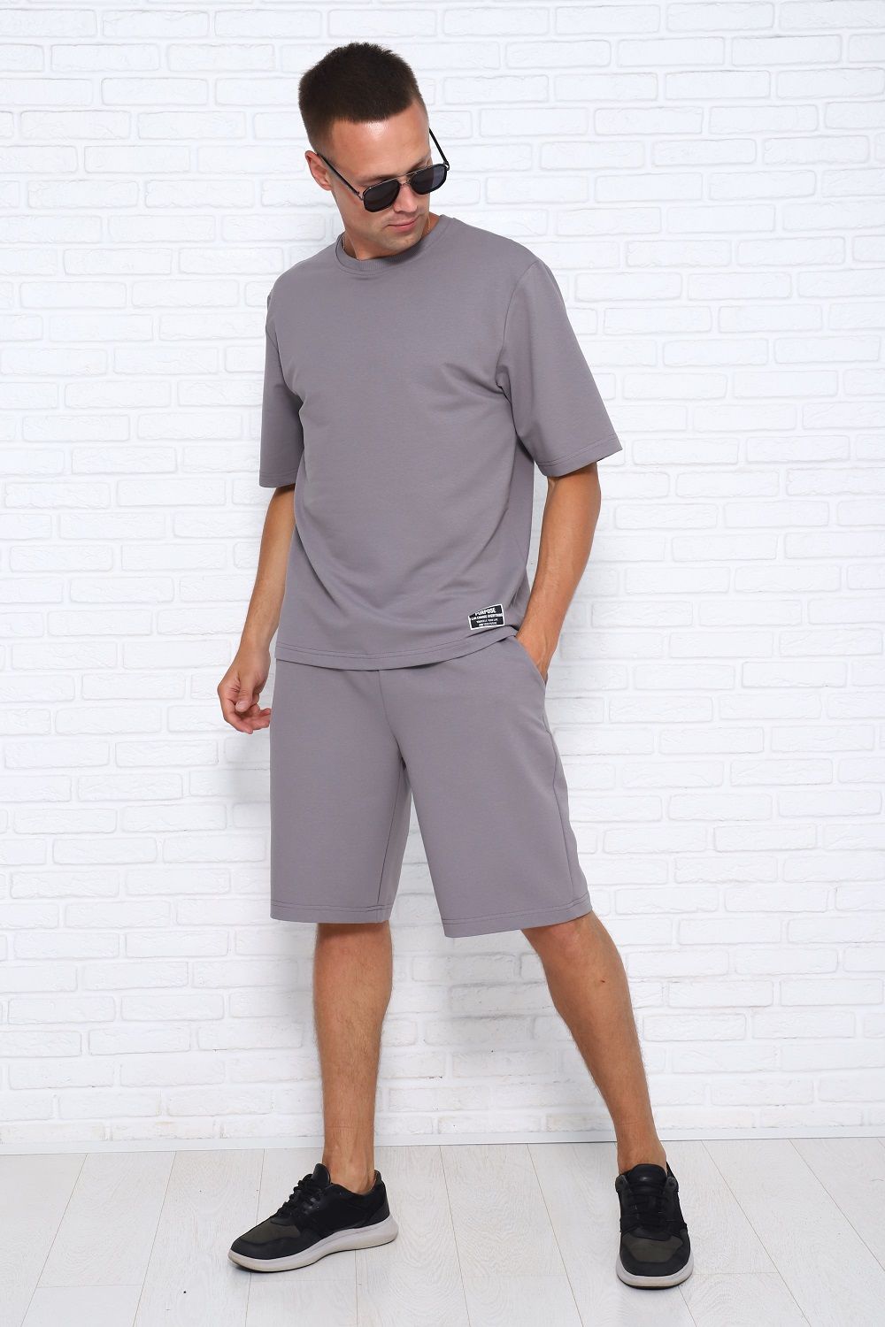 Костюм мужской из футера 2-х нитки: шорты на эластичном комфортном поясе, с боковыми карманами и футболка прямого кроя, со слегка спущенным плечом, с принтом по низу полочки. Данный трикотаж имеет низкую сминаемость и презентабельный вид.