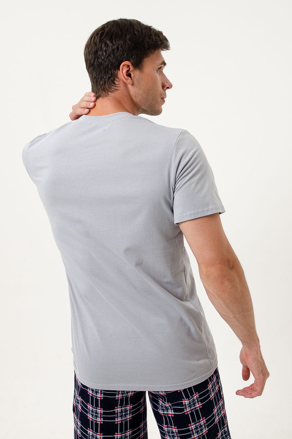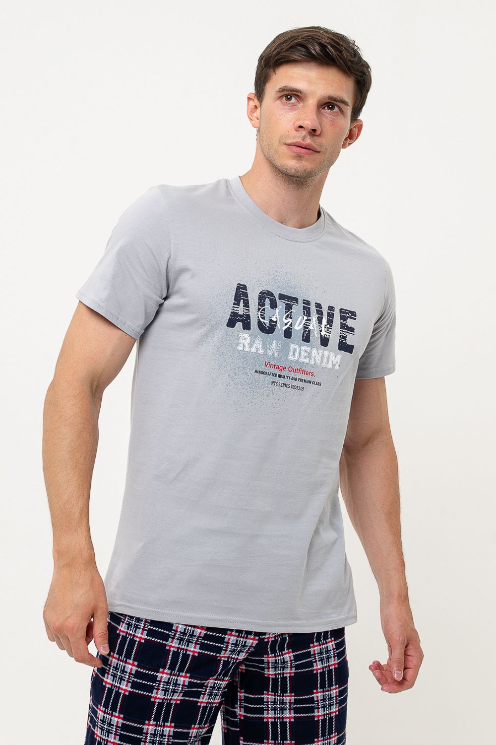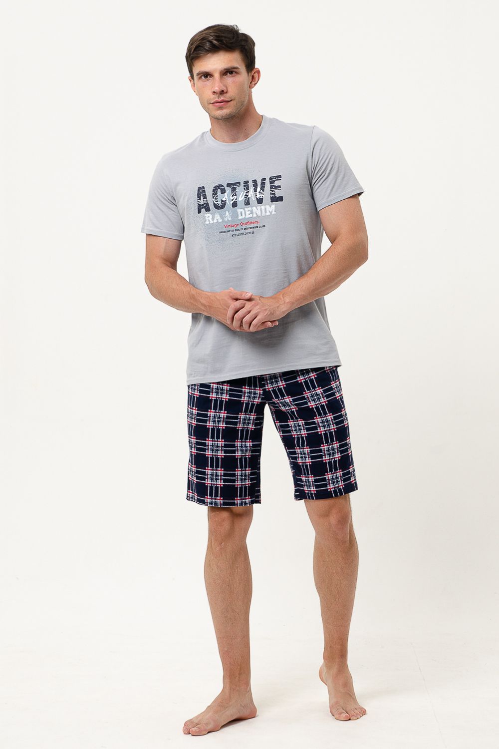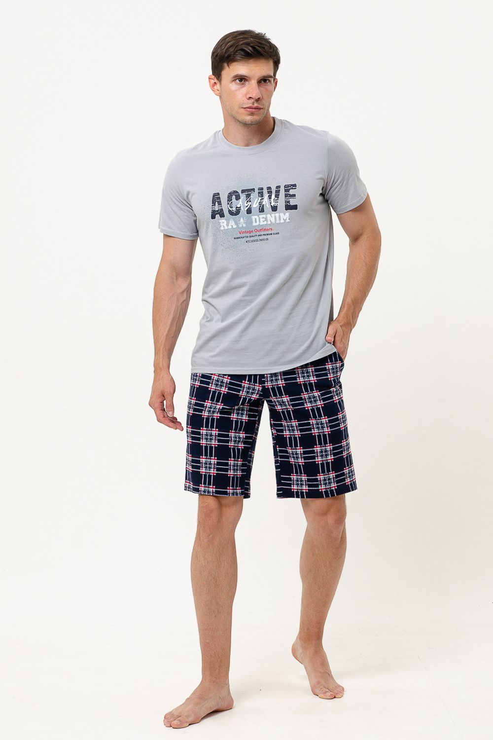 Мужской домашний комплект прямого кроя из натуральной ткани 100 % хлопка. Футболка с классической горловиной и коротким рукавом. Шорты с карманами держатся на резинке. Ткань дышащая, легкая.