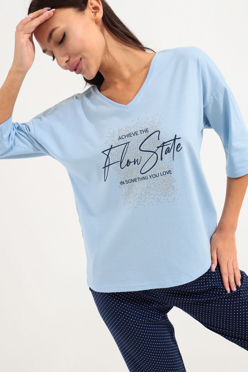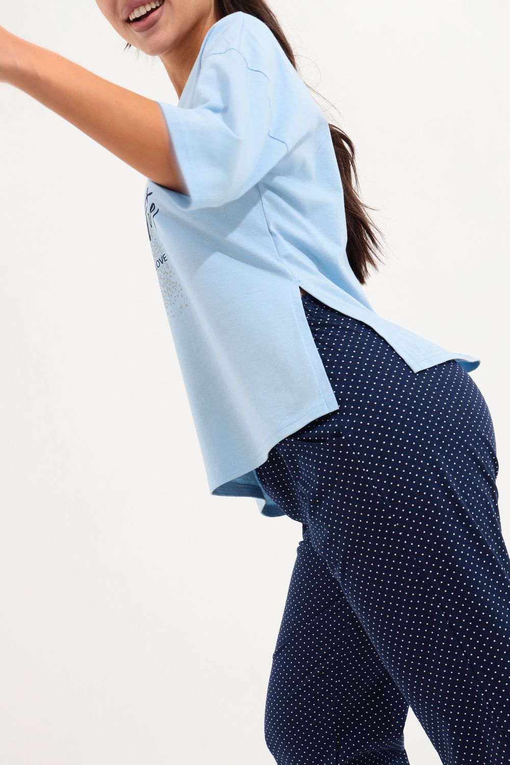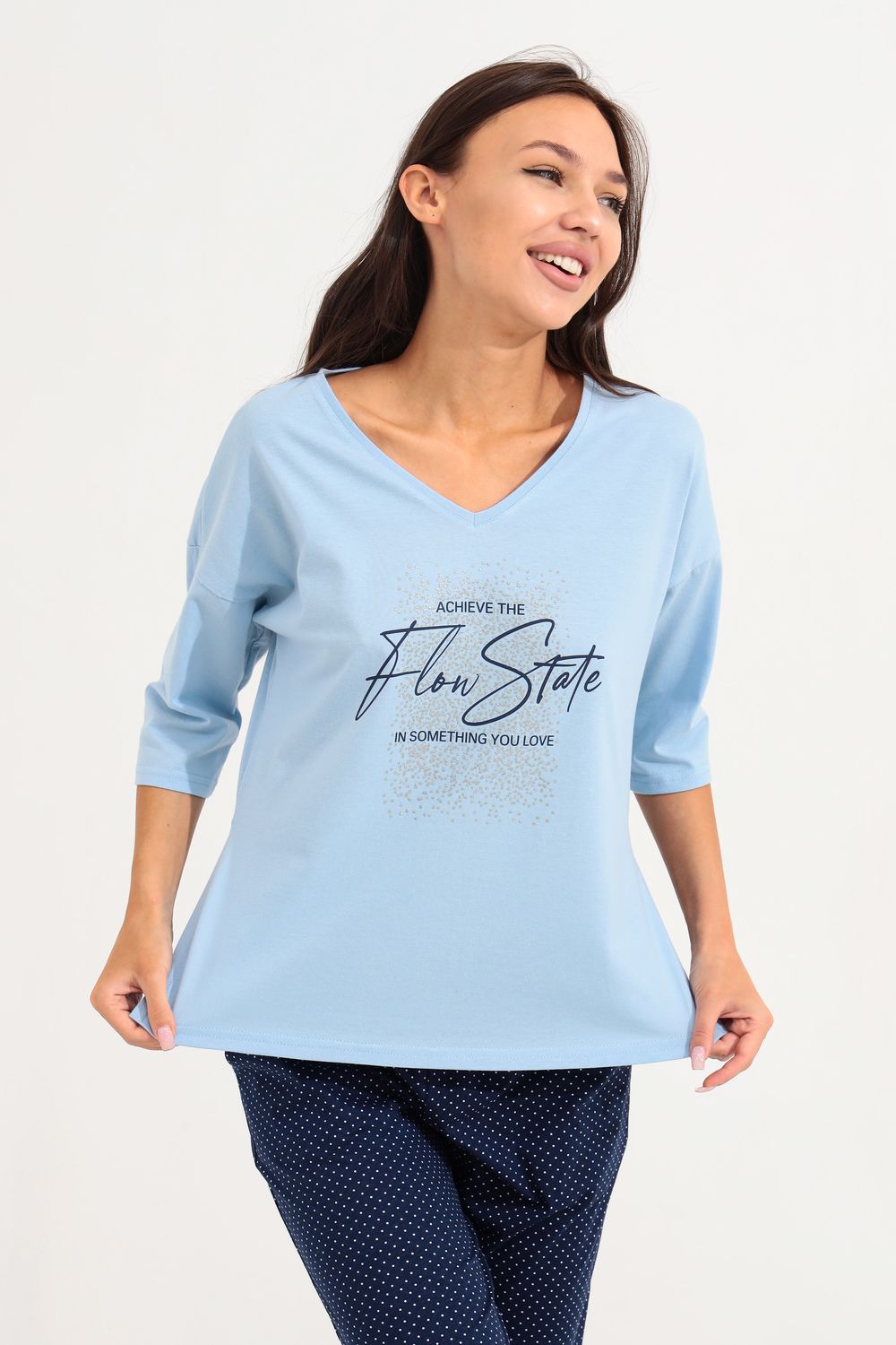 Костюм для девушек, женщин и девочек из хлопка на каждый день прекрасно подойдет для комфортного нахождения дома. Костюм идеален на лето, весну и осень, так же подойдет для зимней носки в комфортных условиях. Хлопковый трикотаж позволяет коже дышать. Хлопок не изнашивается, не теряет форму и цвет после стирки. Наш костюм создан для вашего уюта и комфорта, он так же идеально подойдет для подарка на любой праздник. Длина рукава измеряется по верхней части плеча и вниз по предлагаемой длины. Рост модели 164 см и размер 44.