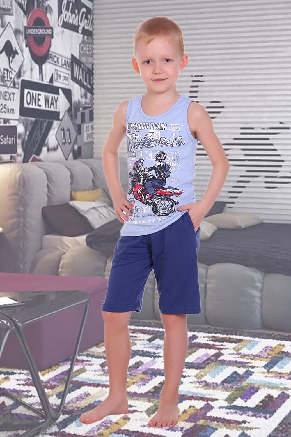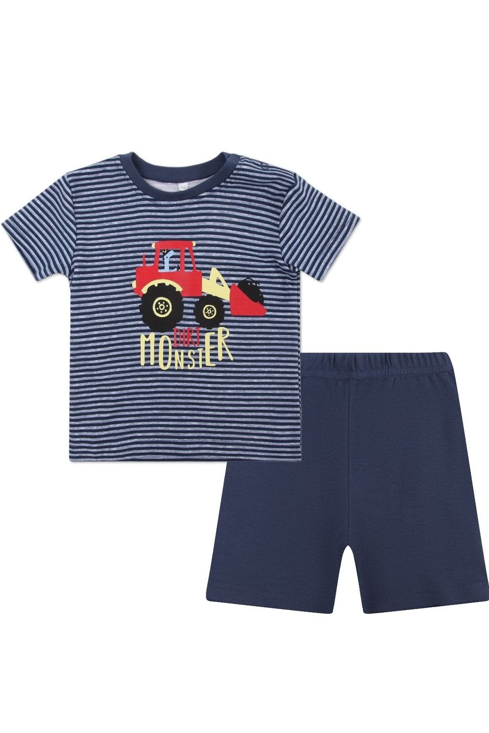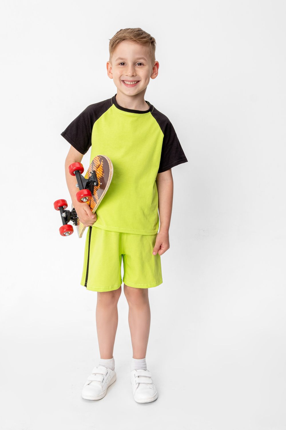 Костюм для мальчика выполнен из экологичной хлопковой ткани-кулирное полотно. Набор из 2 комплектов. Футболка прямого кроя. Вырез горловины округлый, рукав втачной, короткий. Шорты короткие, без карманов, пояс на резинке. Ткань легкая, приятная к телу, хорошо пропускает воздух. Натуральный хлопок обеспечит комфорт ребенку во время летних прогулок или носки дома, в детском саду.
