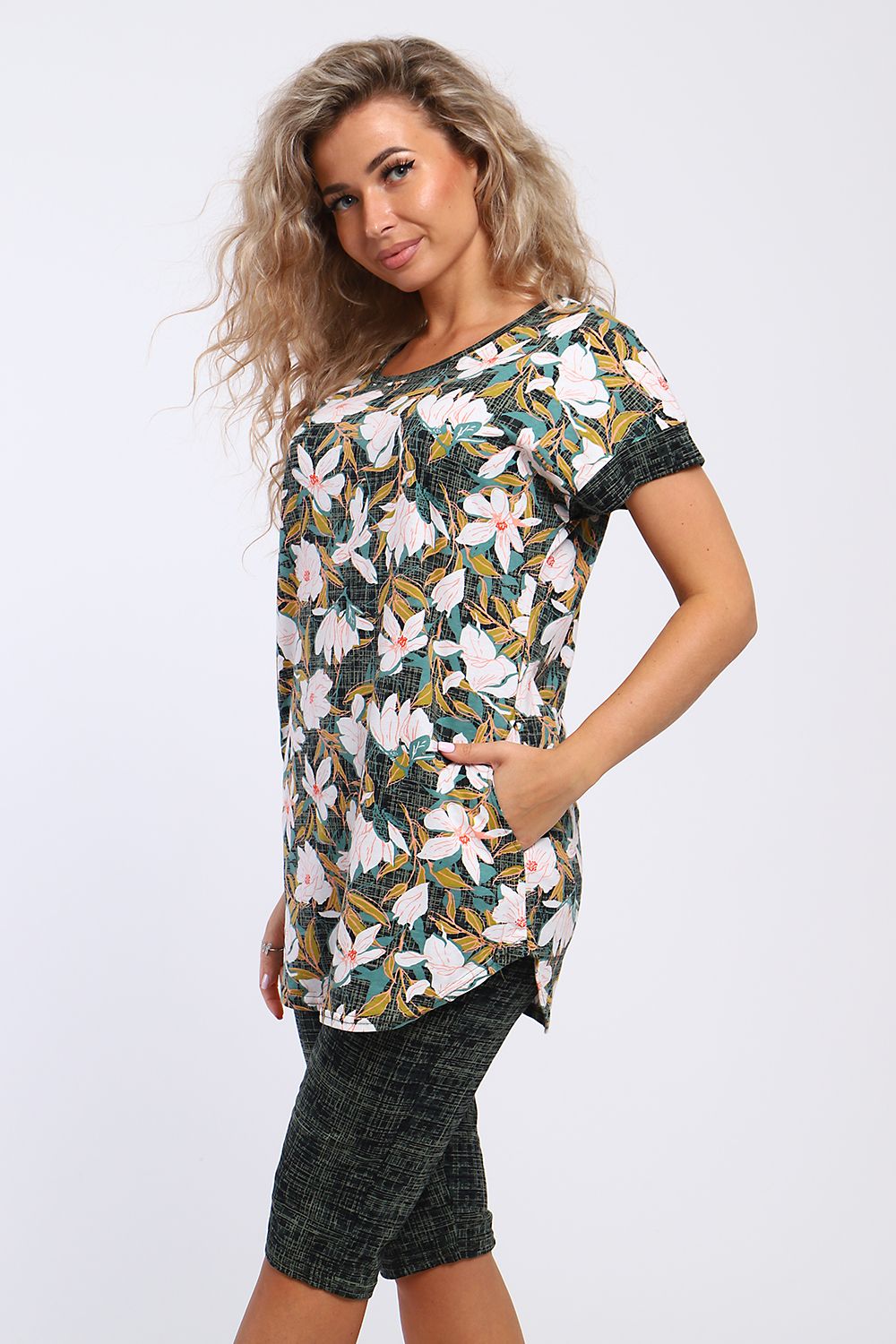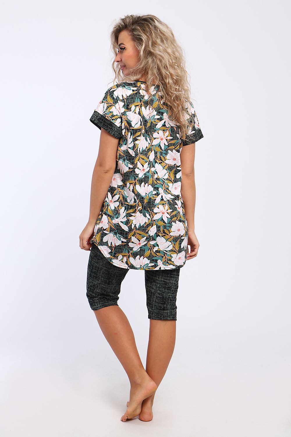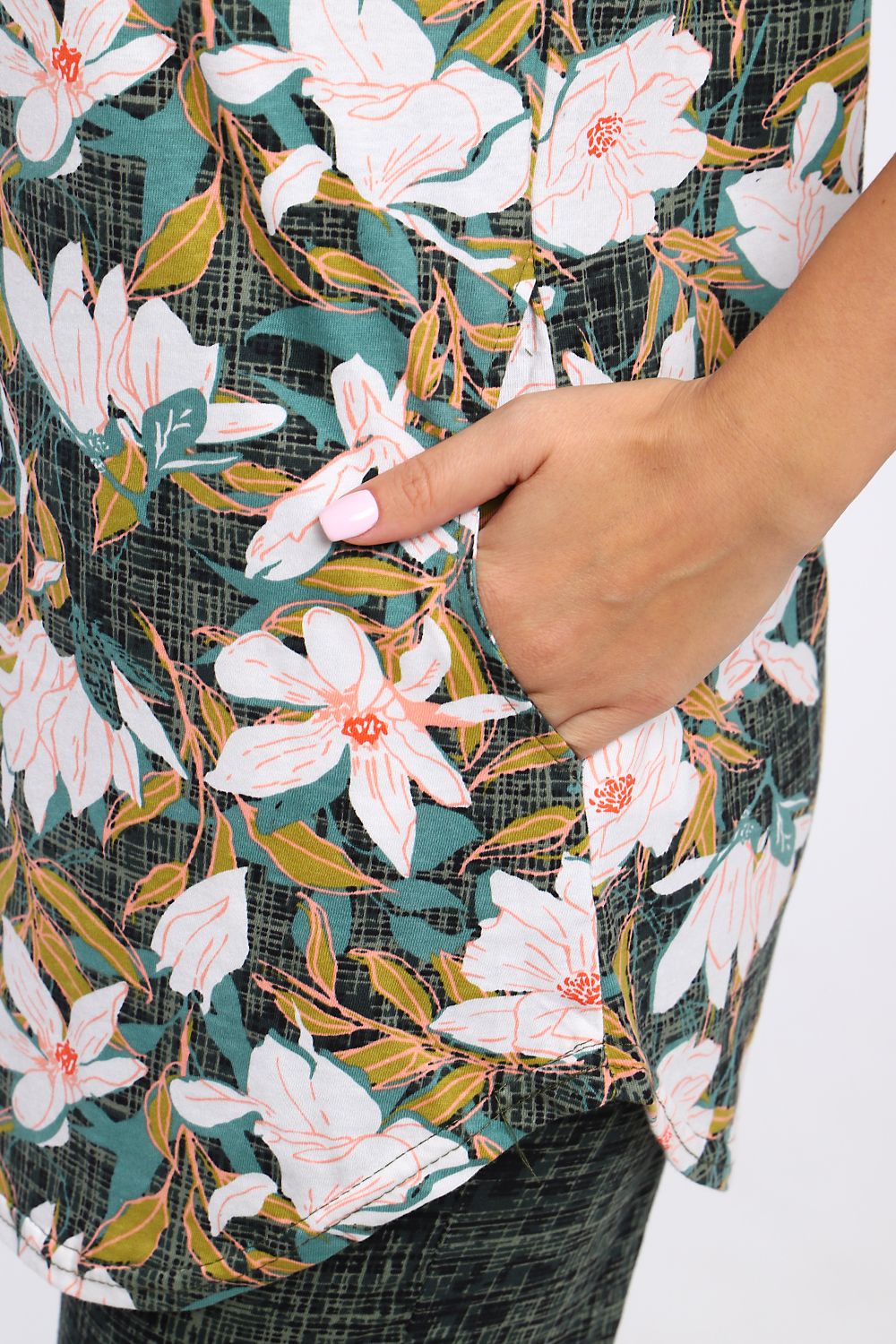 Костюм состоит из туники и бридж. Туника свободного кроя с манжетами на спущенном плече, боковыми карманами и полукруглым низом.