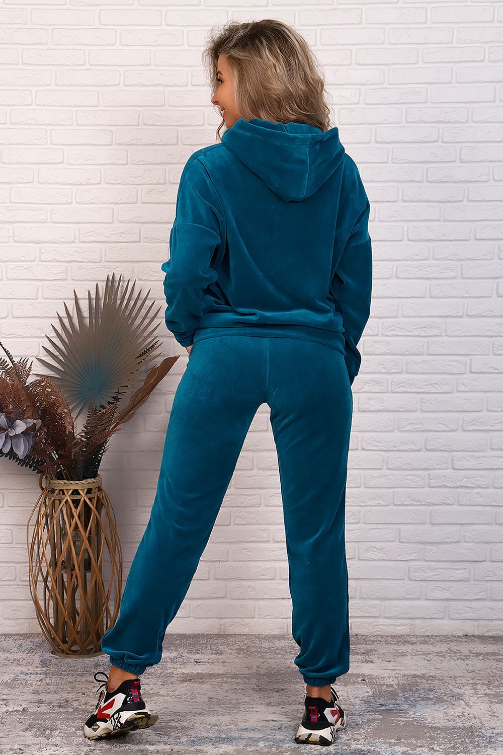 Костюм женский с брюками. Толстовка с двойным капюшоном в стиле оверсайз. Брюки с поясом и резинкой 4 см, в боковых швах присутствуют карманы. По низу пришита резинка 2,5 см. Данная модель выполнена из трикотажного полотна велюра с рапортом 4/1. Отлично подходит для прогулок и повседневной носки, а сочный цвет поднимет настроение в осеннее время