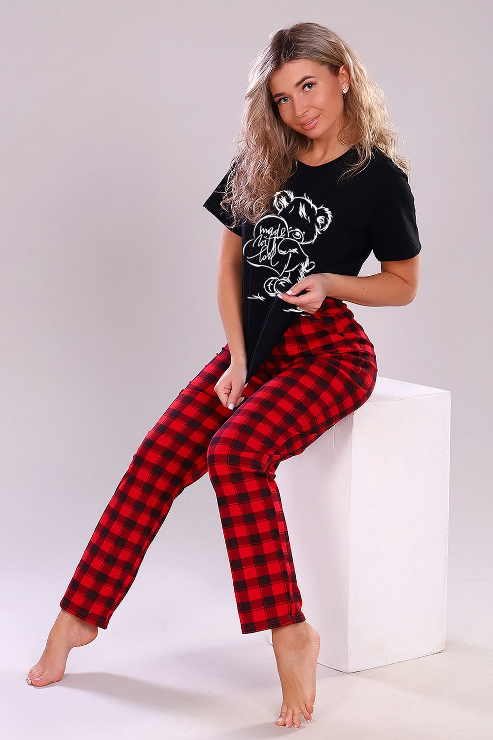 Костюм женский с брюками. Данная модель выполнена из трикотажного полотна кулирка (хлопок 100%). Футболка в стиле оверсайз с коротким рукавом, на полочке присутствует принт. Брюки свободного покроя с боковыми карманами и вшивным поясом с тройной отстрочкой. Отличная модель для домашнего отдыха.