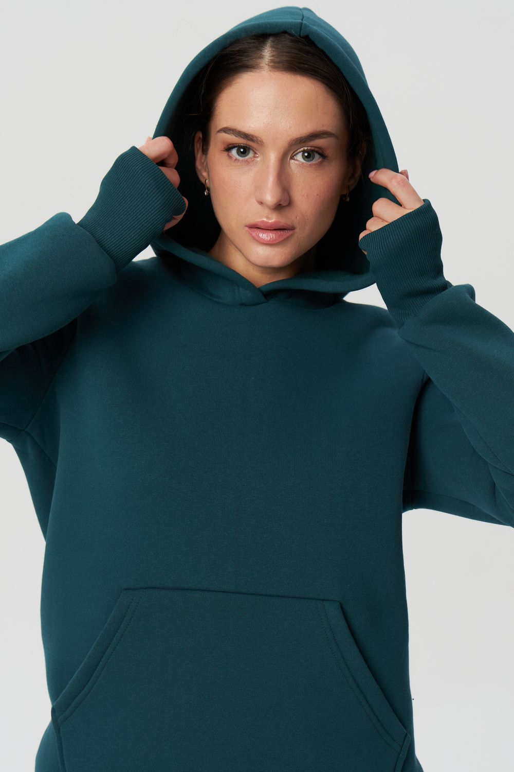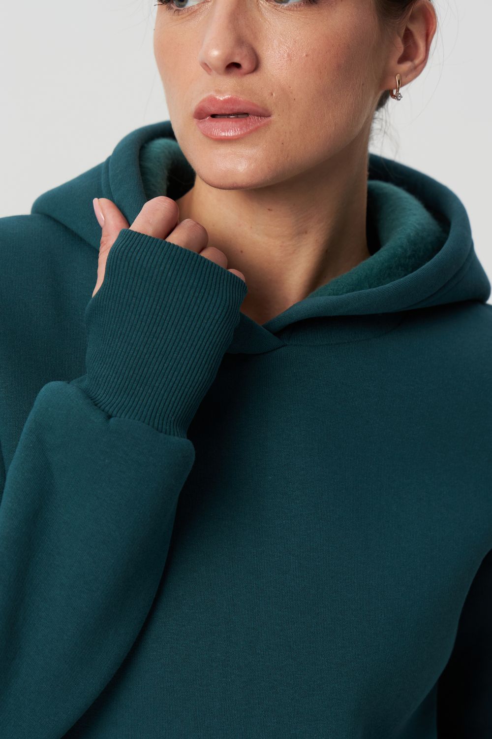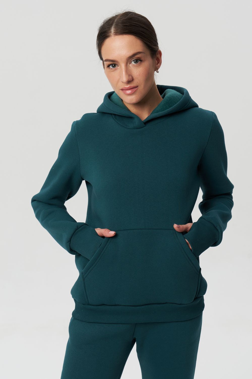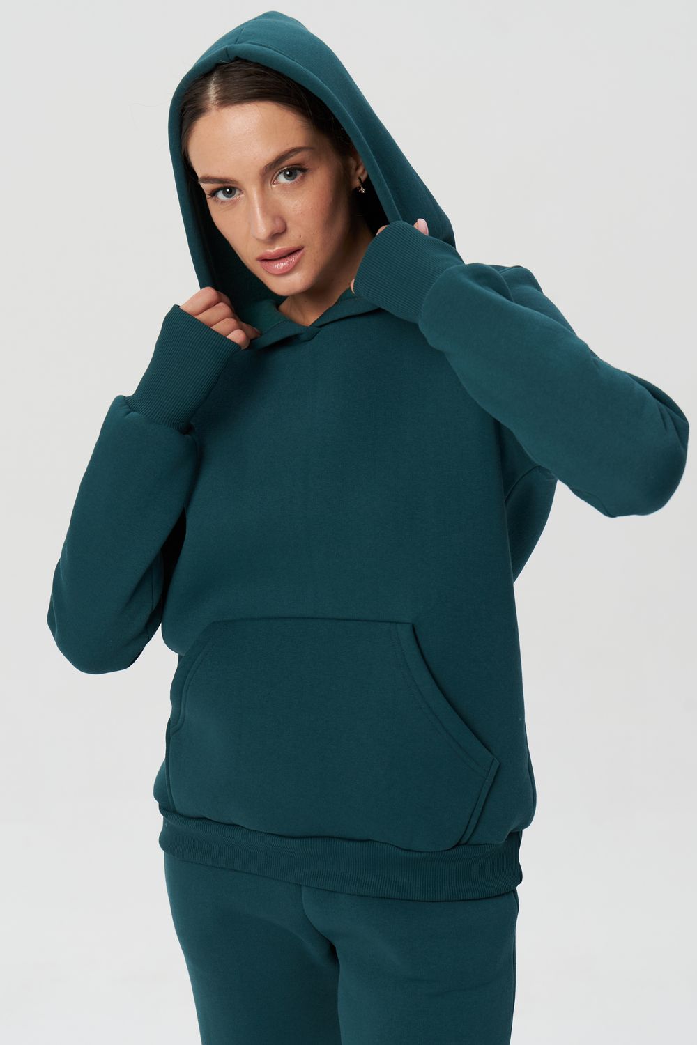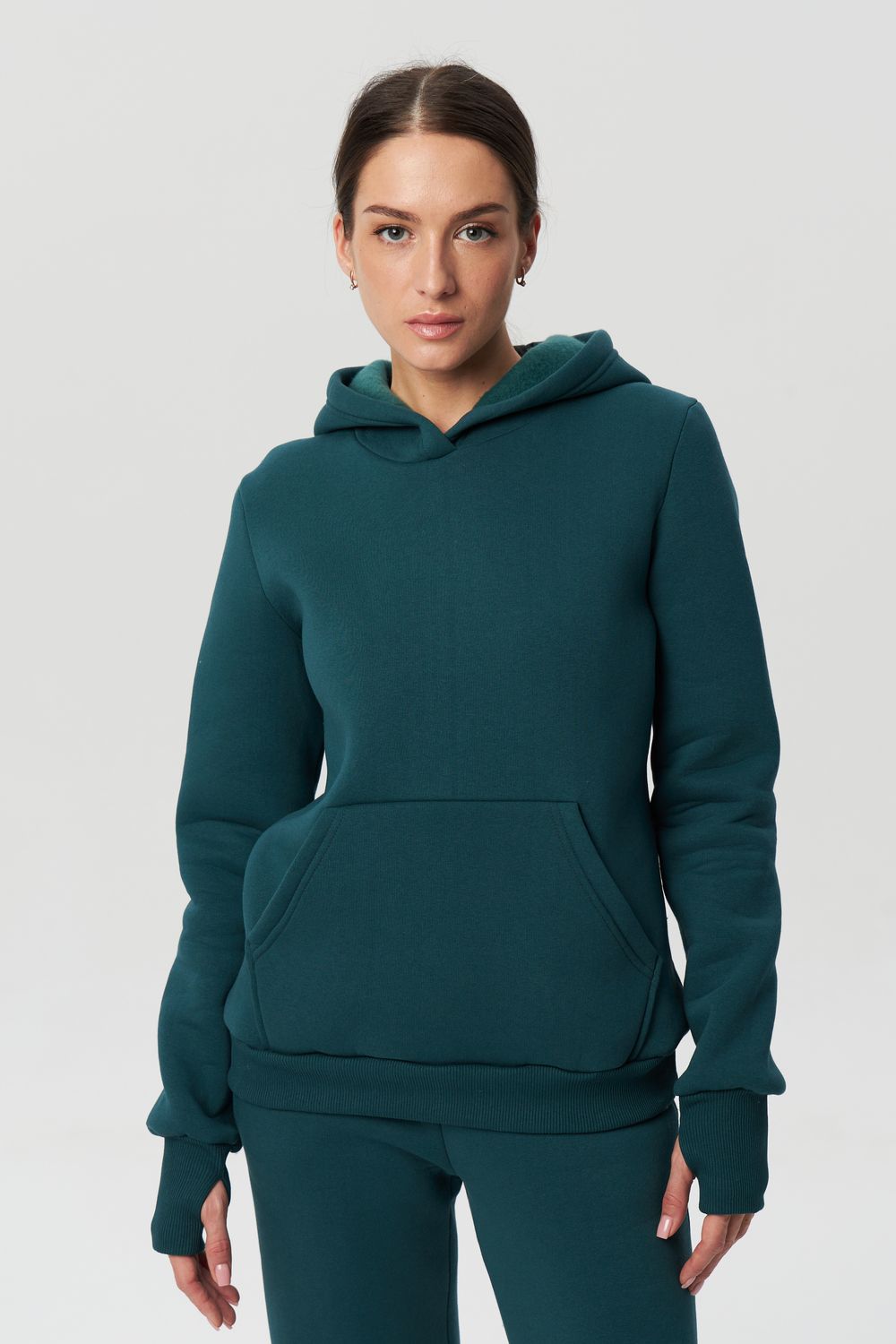 Костюм с начёсом - прекрасный вариант повседневной одежды для осени и зимы. Толстовка прямого кроя, имеет классическую пройму с втачным рукавом и удлиненными манжетами с отверстием для большого пальца, карман кенгуру. Капюшон однослойный, он прекрасно защитит голову в прохладную погоду. Брюки на резинке, с боковыми наклонными карманами, по низу штанины вшита внутрь резинка.