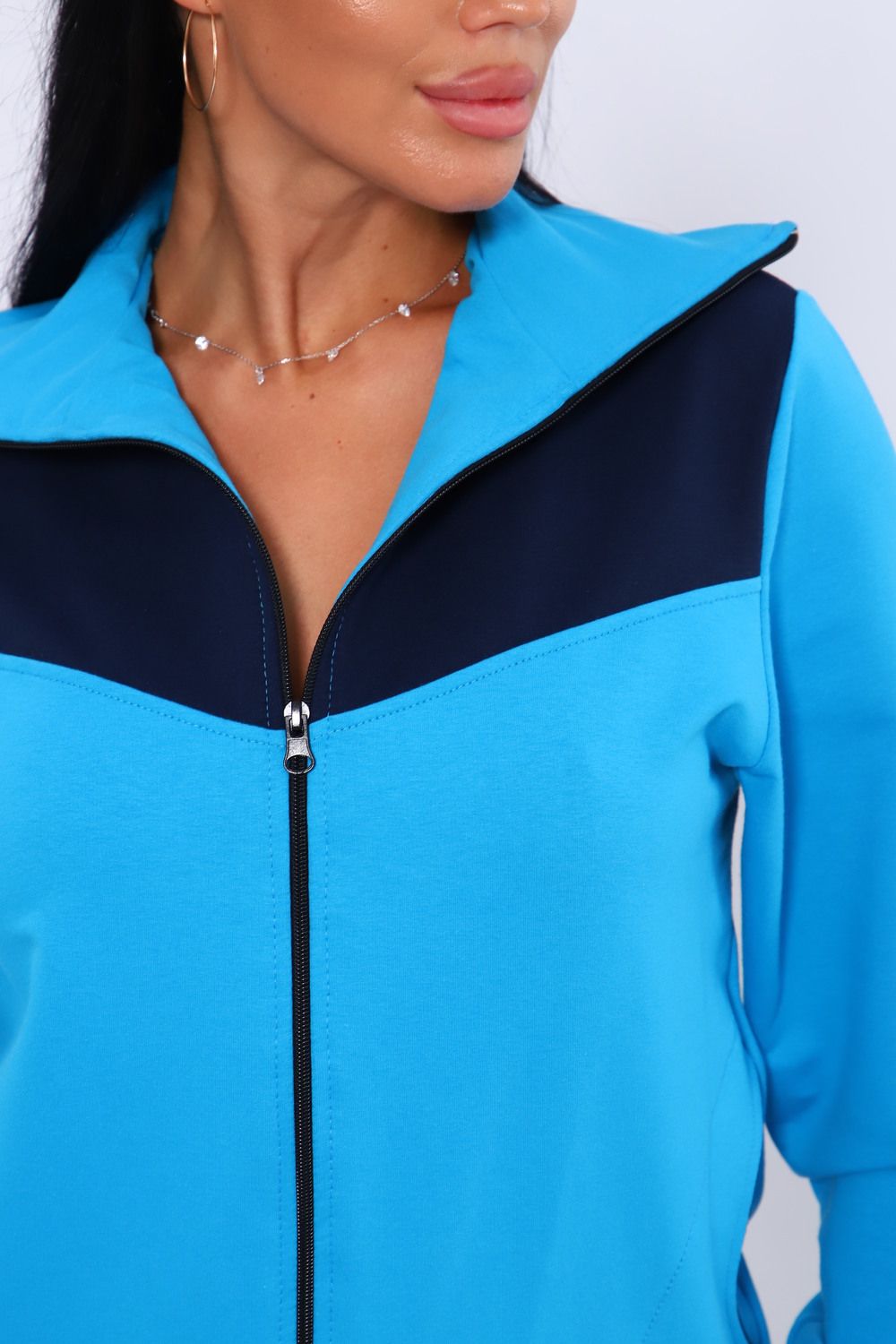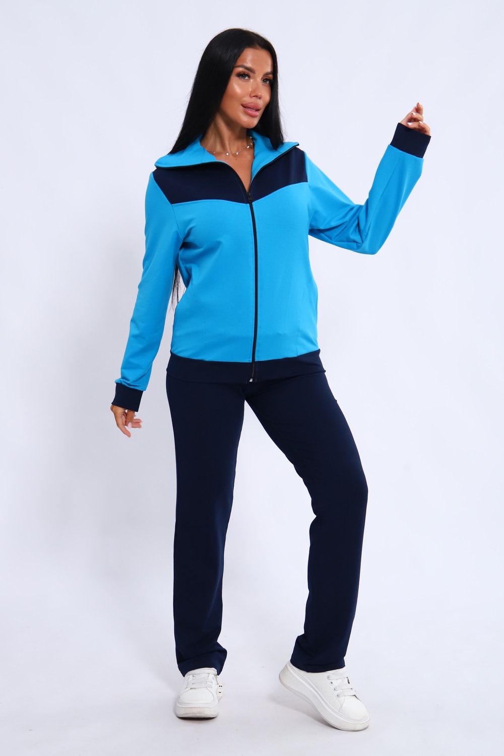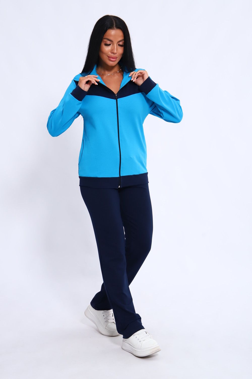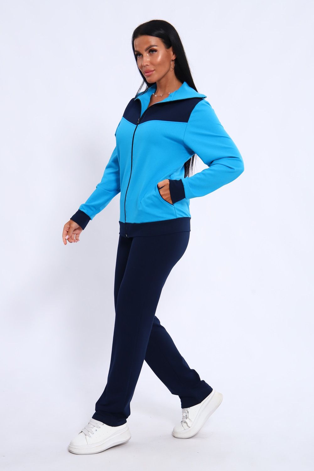 Спортивный женский костюм из эластичного футера. Кофта прямого силуэта на молнии с воротником - стойка, рукав втачной, по бокам карманы, на поясе манжет. Брюки классического кроя без карманов на притачном поясе.