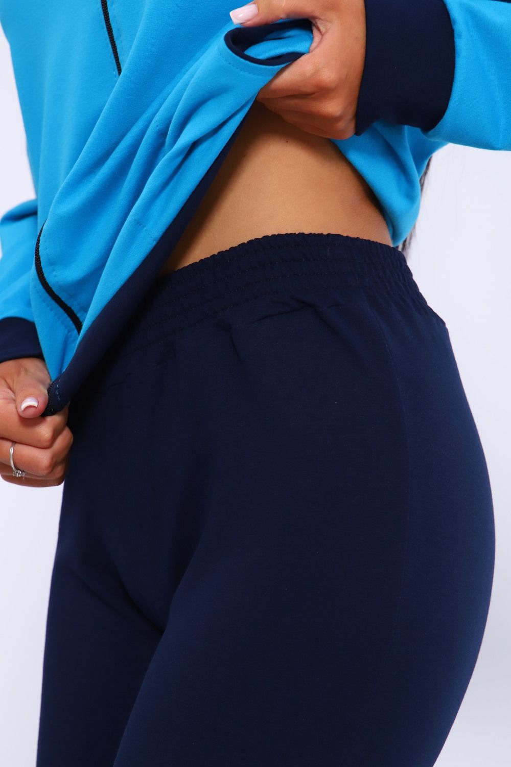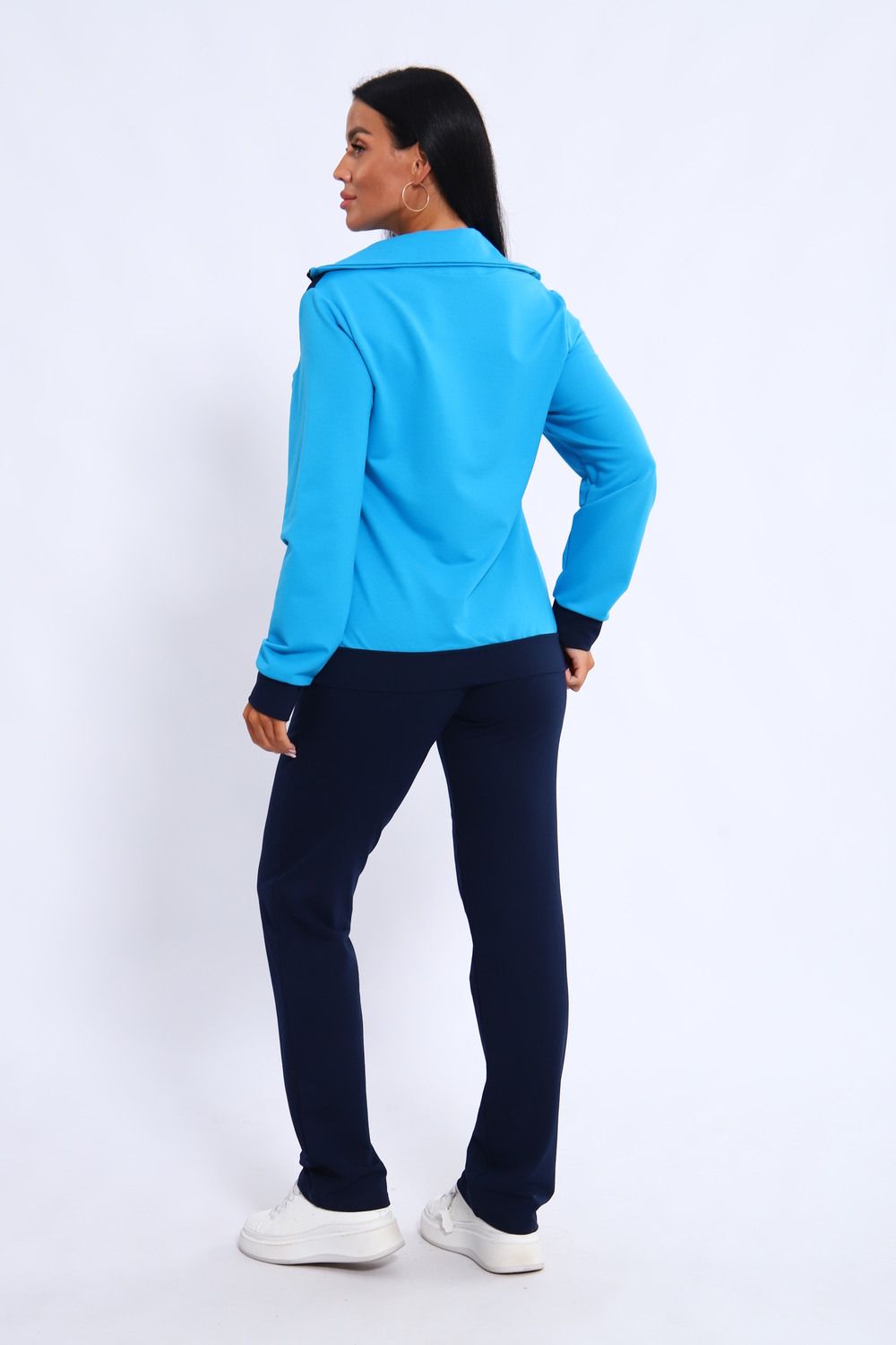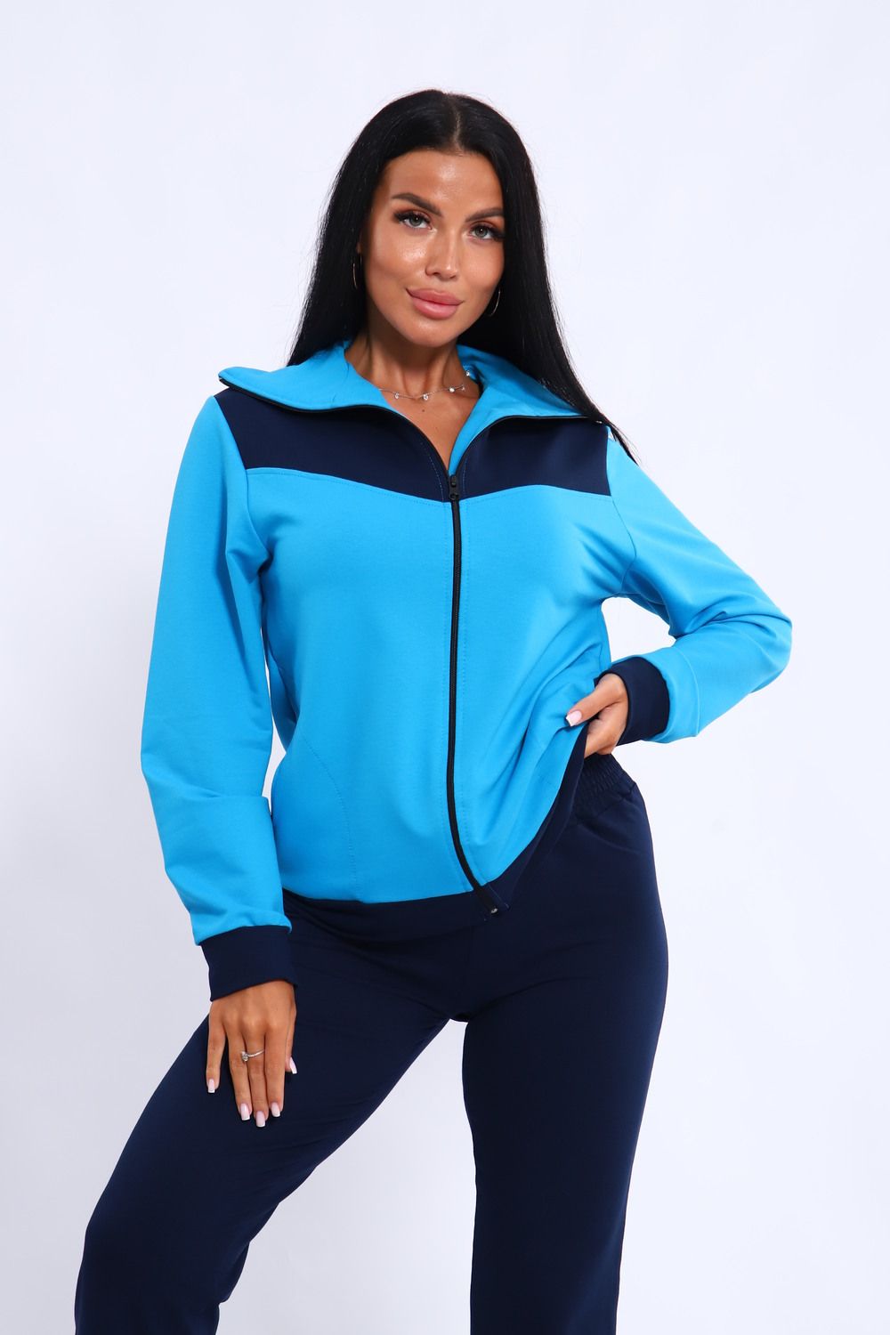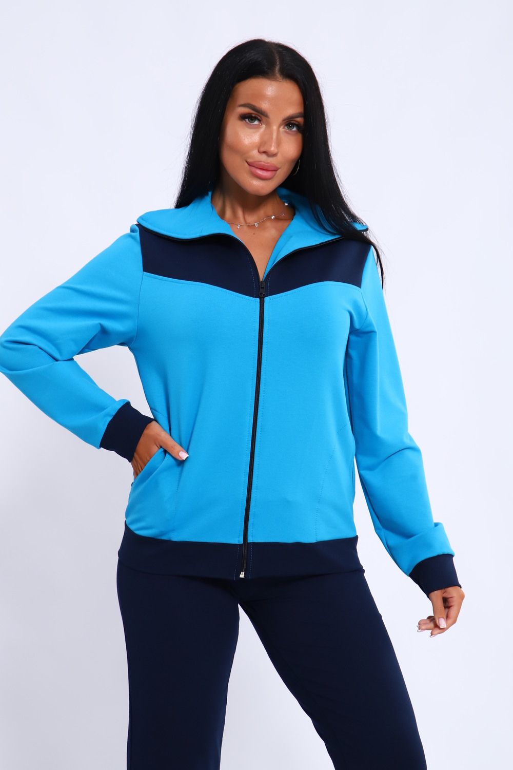 Спортивный женский костюм из эластичного футера. Кофта прямого силуэта на молнии с воротником - стойка, рукав втачной, по бокам карманы, на поясе манжет. Брюки классического кроя без карманов на притачном поясе.