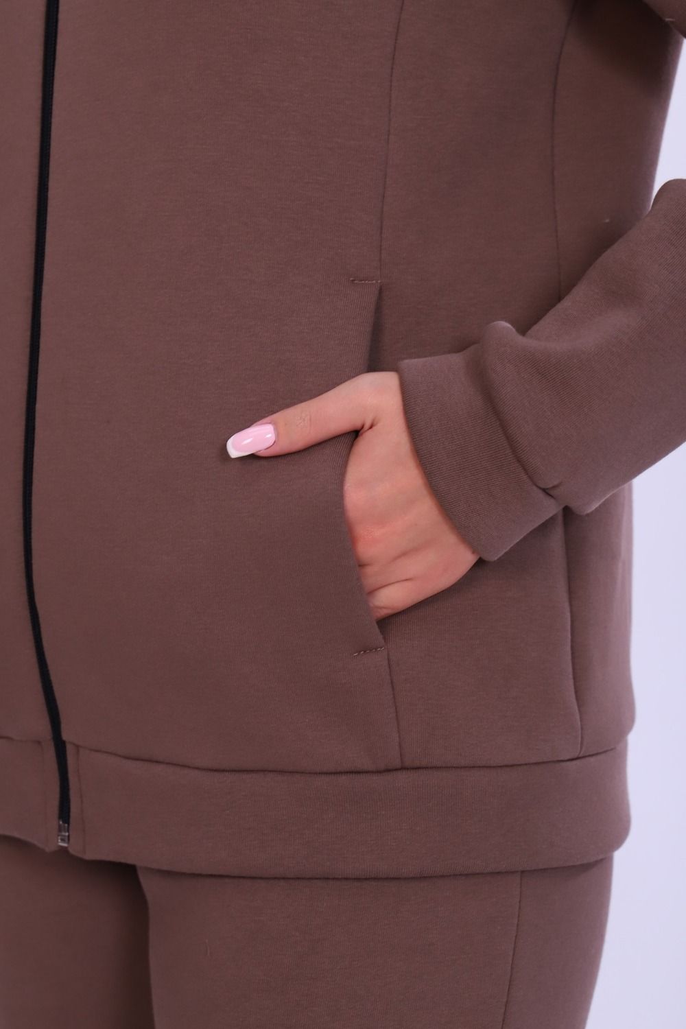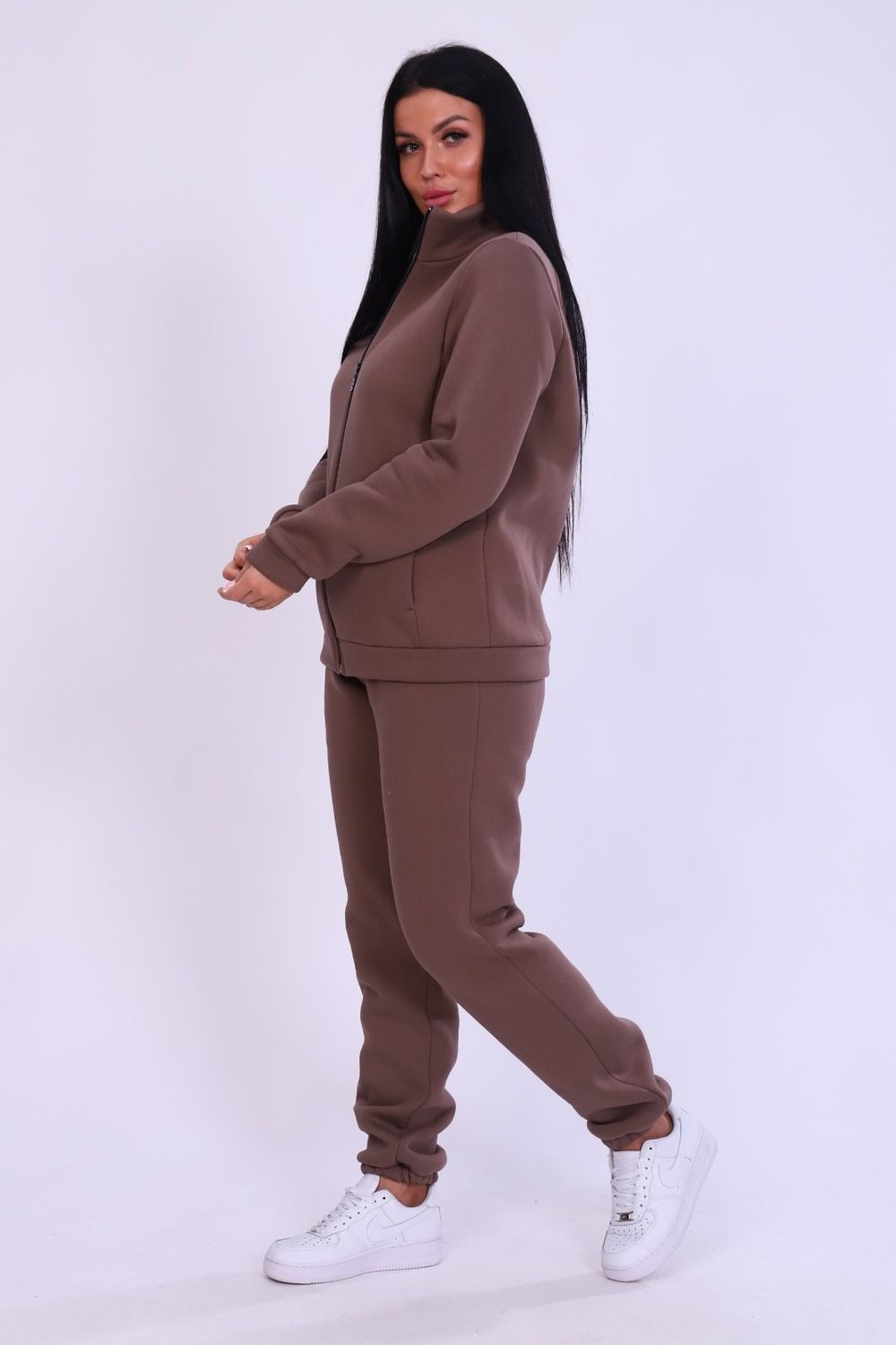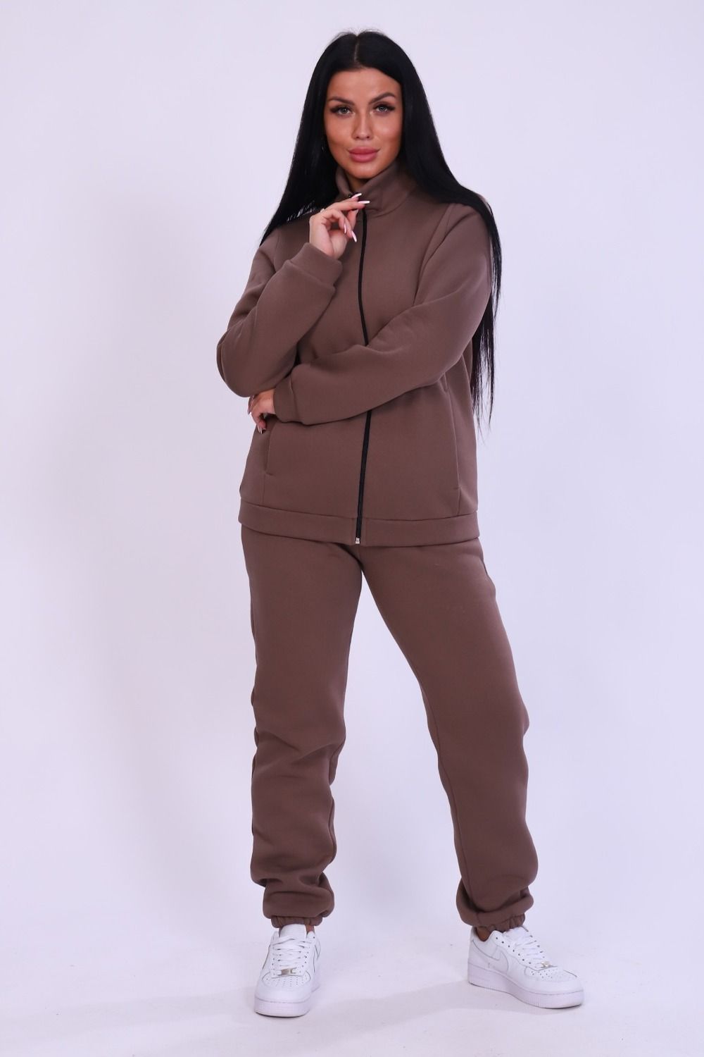 Спортивный костюм женский. Костюм отлично подойдет на весну, осень и зиму. В нем вы всегда будете чувствовать себя тепло и уютно. Костюм женский выполнен из футера 3-нитки премиум качества, с начесом. В комплекте брюки без карманов и кофта на замке с воротником -стойка. На полочках толстовки выполнены рельефы, в которых расположены карманы. В модели широкий размерный ряд с 42р по 60р