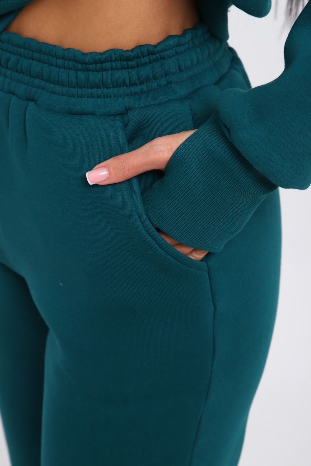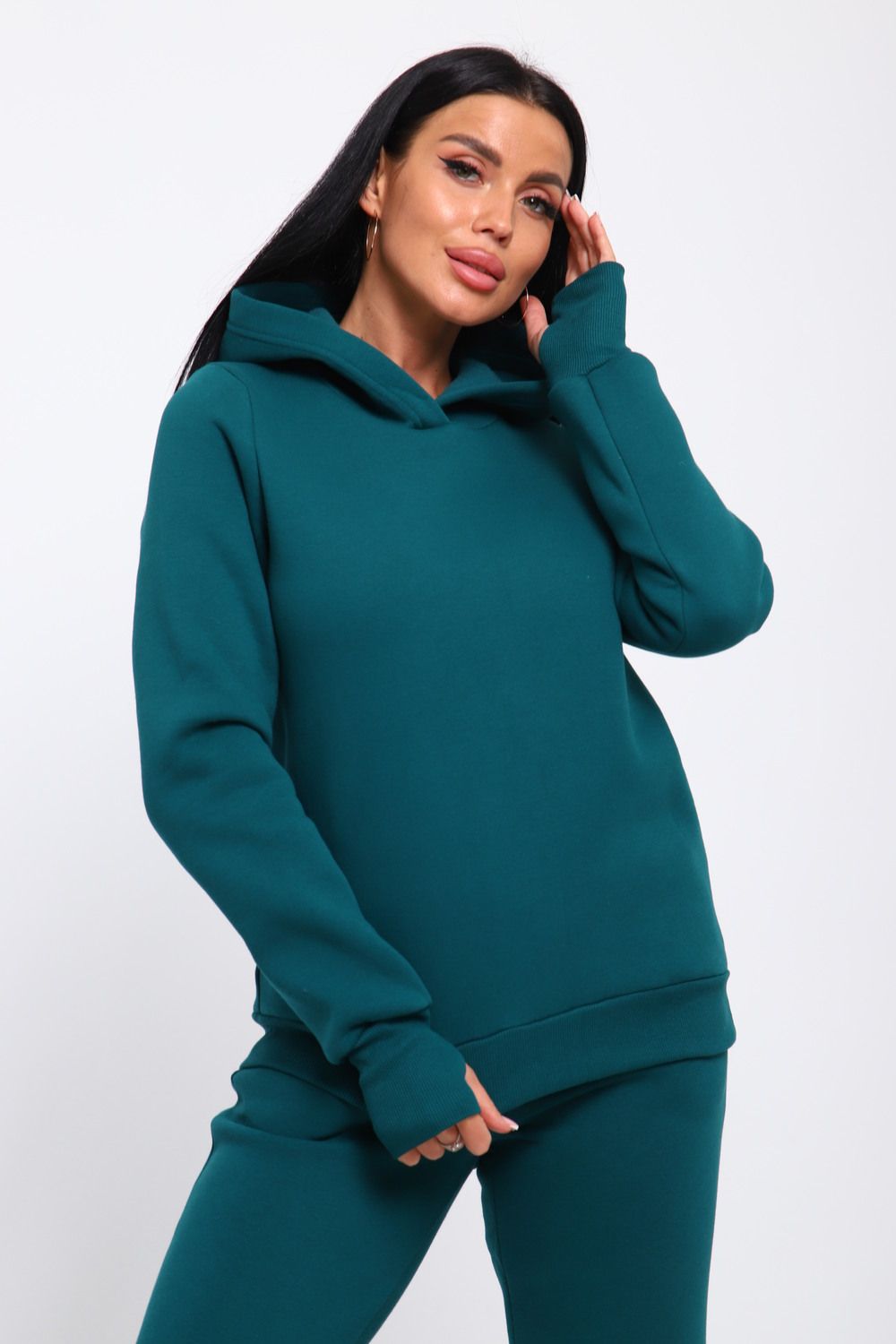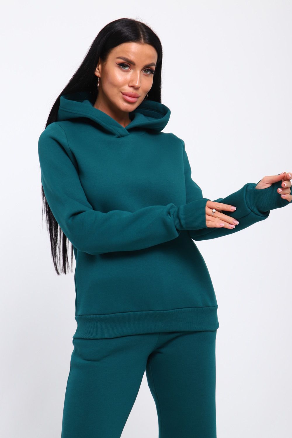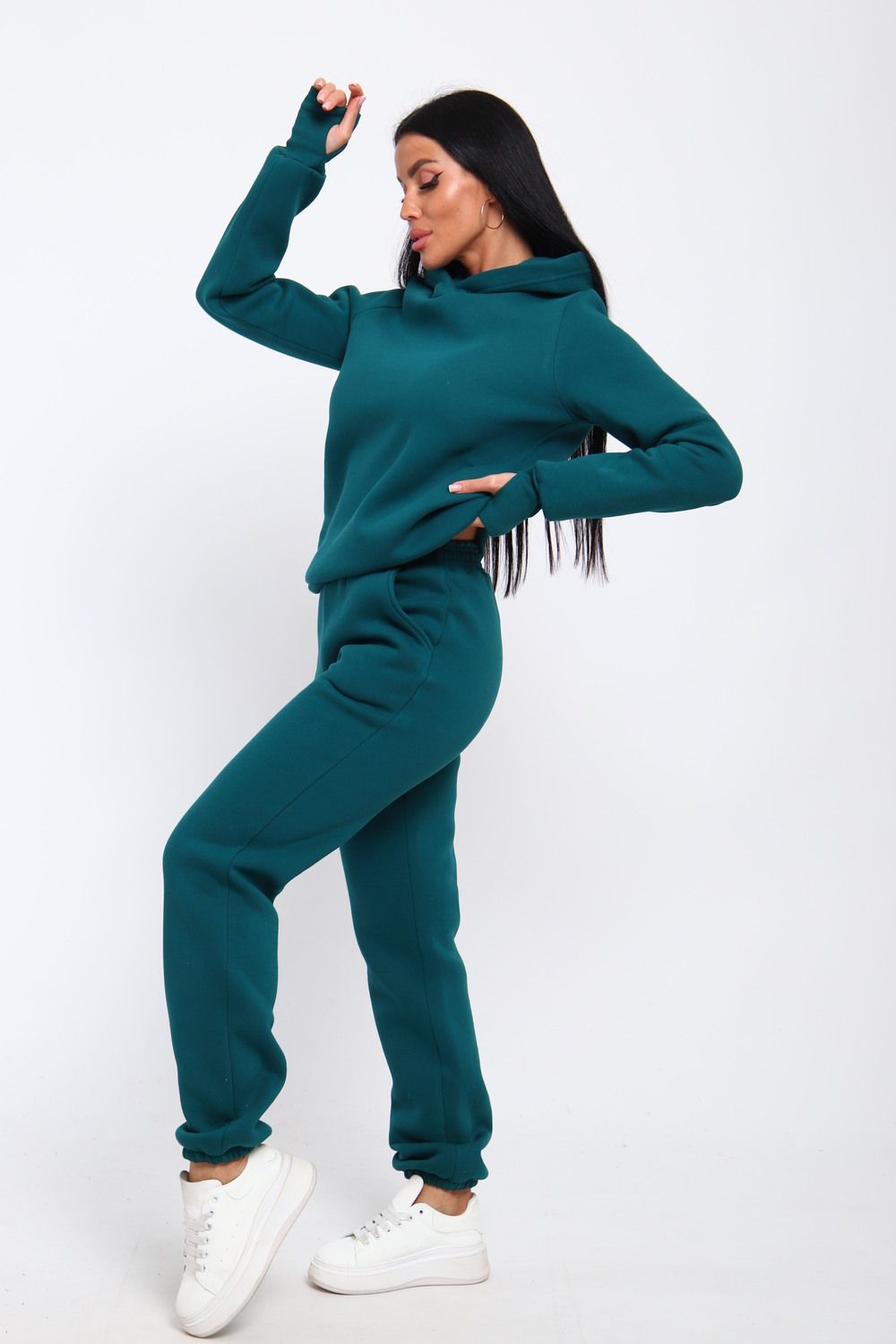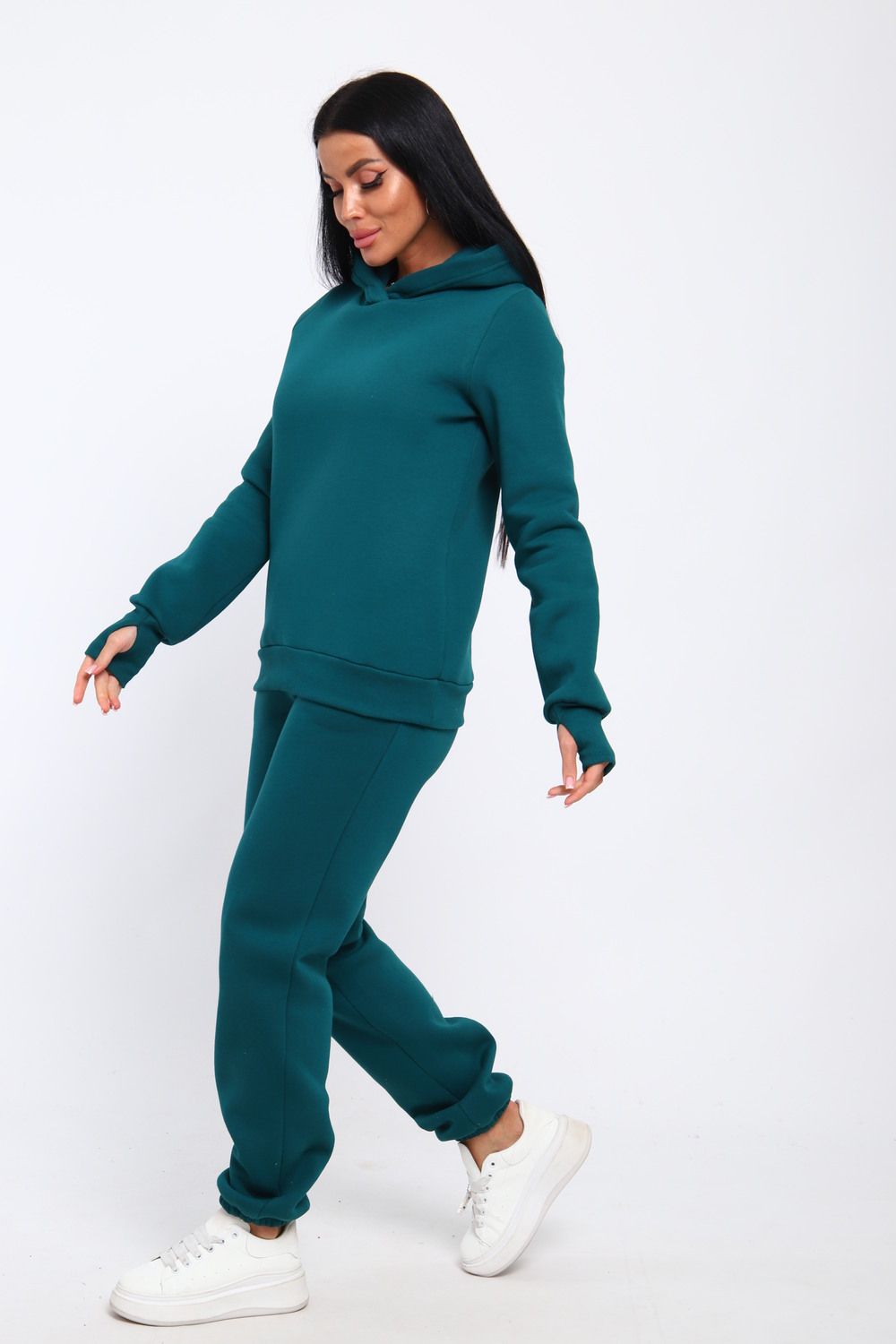 Костюм с начёсом прекрасный вариант повседневной одежды для осени и зимы. Толстовка прямого кроя, имеет классическую пройму с втачным рукавом и удлиненными манжетами с отверстием для большого пальца. Капюшон однослойный, он прекрасно защитит голову в прохладную погоду. Брюки на резинке, с боковыми наклонными карманами, по низу штанины вшита внутрь резинка.