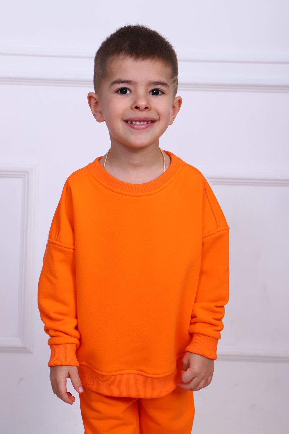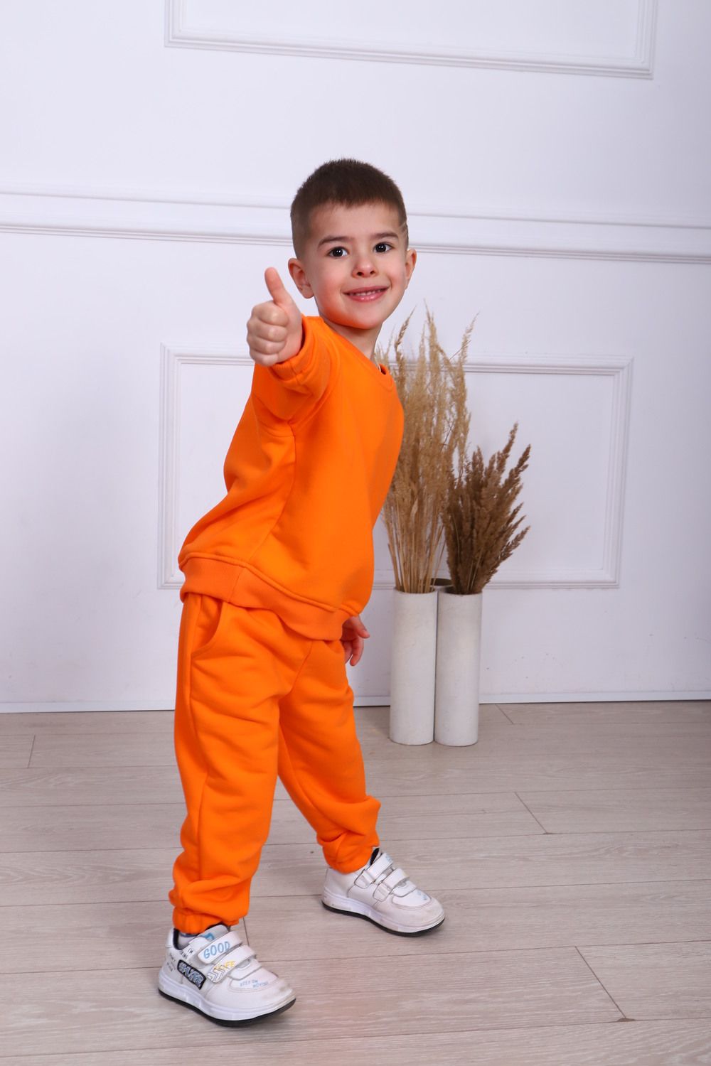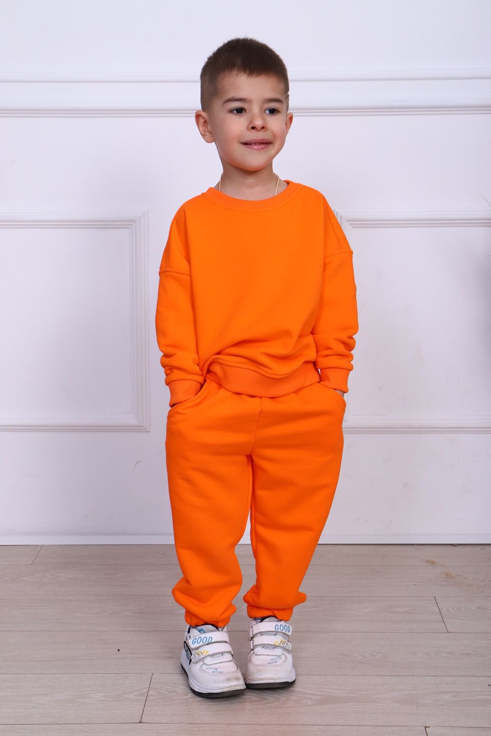 Спортивный детский костюм для мальчиков и девочек. Выполнен из трикотажного полотна футера 3х нитки диагональ петля. Яркая расцветка подойдет и для мальчика и для девочки. Толстовка свободного силуэта без капюшона, манжеты рукавов, горловина и пояс толстовки выполнены из кашкорсе. Брюки имеют притачной пояс с резинкой и карманы по бокам. Низ брюк обработан резинкой. Утепленный костюм идеальный вариант на любой сезон.