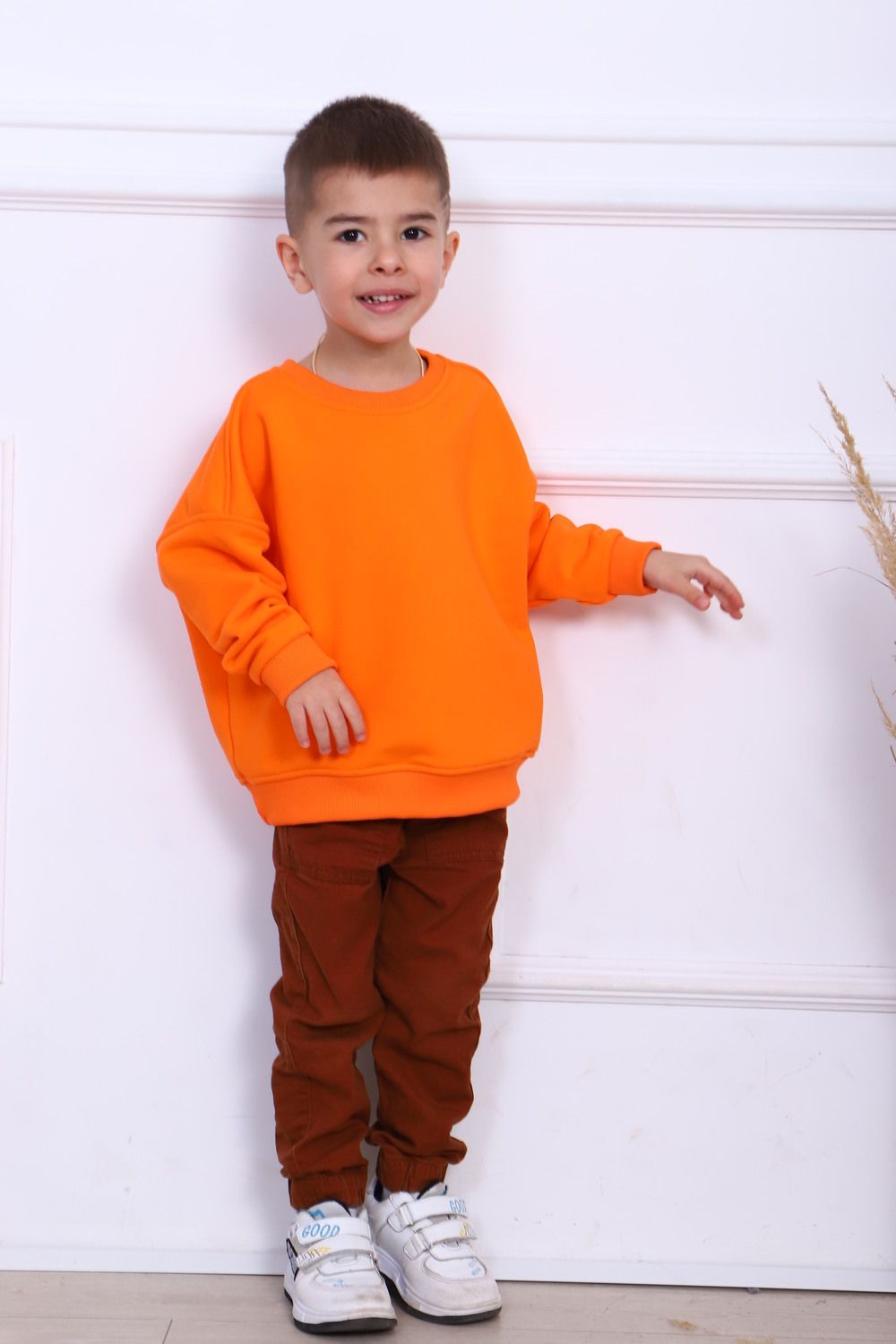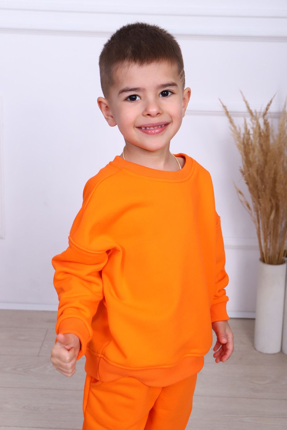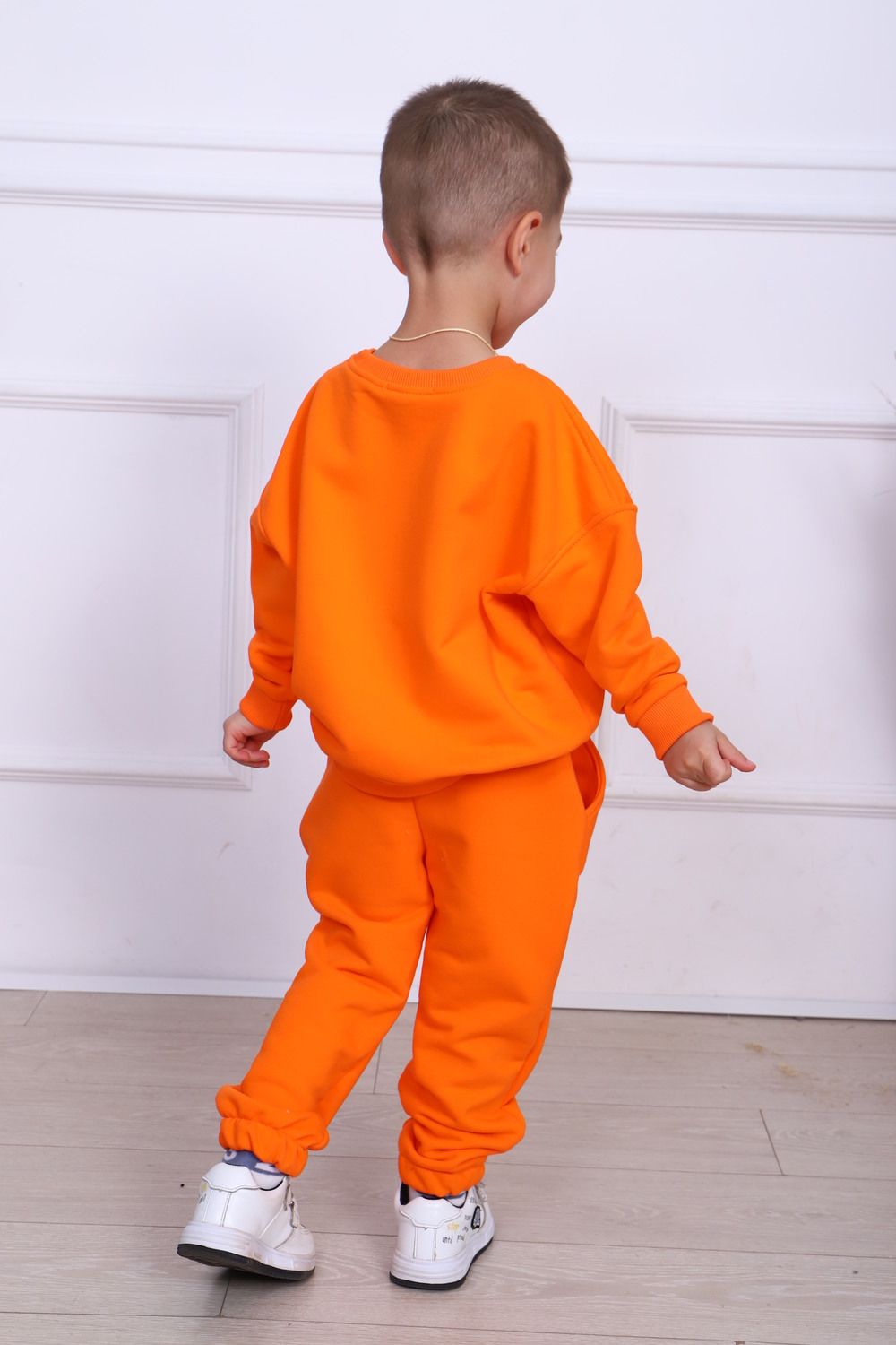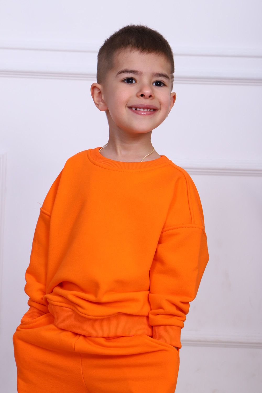 Спортивный детский костюм для мальчиков и девочек. Выполнен из трикотажного полотна футера 3х нитки диагональ петля. Яркая расцветка подойдет и для мальчика и для девочки. Толстовка свободного силуэта без капюшона, манжеты рукавов, горловина и пояс толстовки выполнены из кашкорсе. Брюки имеют притачной пояс с резинкой и карманы по бокам. Низ брюк обработан резинкой. Утепленный костюм идеальный вариант на любой сезон.