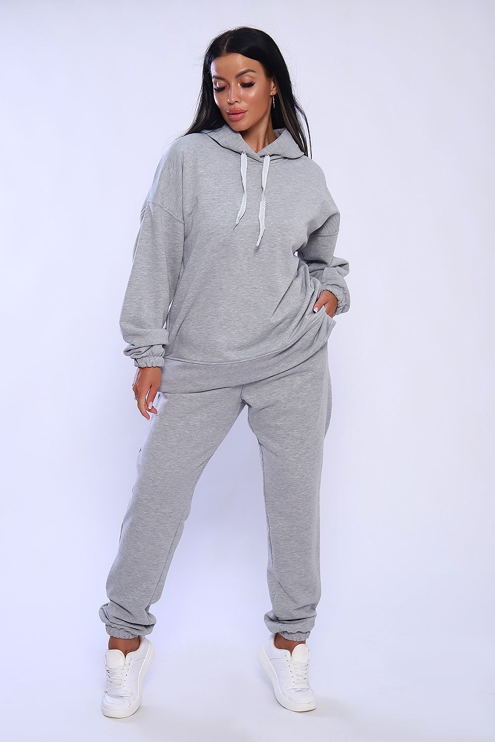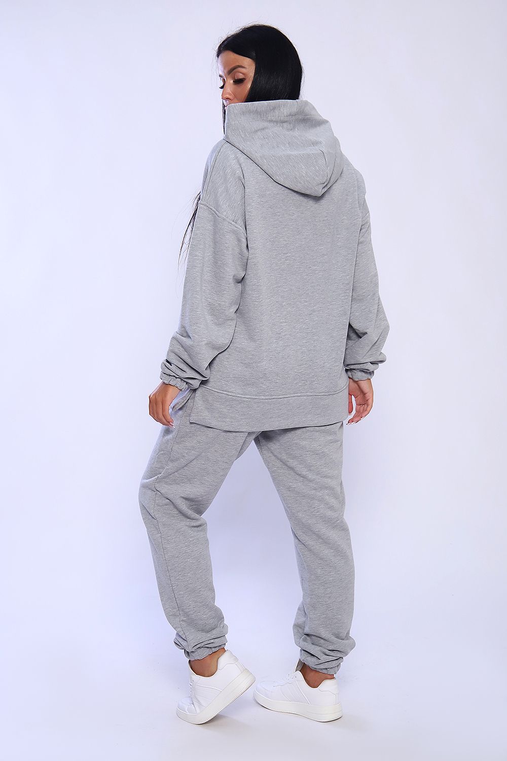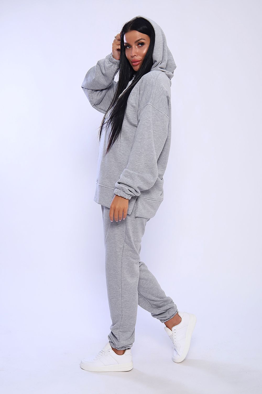 Костюм выполнен из трикотажного полотна футер 3-х нитка диагональ петля (100% хлопок). Толстовка свободного силуэта, имеет капюшон с люверсами и шнурком. Линия плеча спущена (в измерениях длина рукава указана от шва втачивания рукава), низ рукава обработан резинкой, низ изделия обработан поясом с разрезами в боковых швах. Брюки имеют притачной пояс с резинкой и карманы в боковых швах. Низ брюк обработан резинкой. Ткань Костюма плотная, теплая, приятная к телу, согревающая в прохладную погоду, данная модель не обтягивает фигуру, скрывает мелкие огрехи силуэта, комплект уместен для носки в любых повседневных ситуациях и подходит для любого типа фигуры. Рекомендуемый режим стирки 30 t.