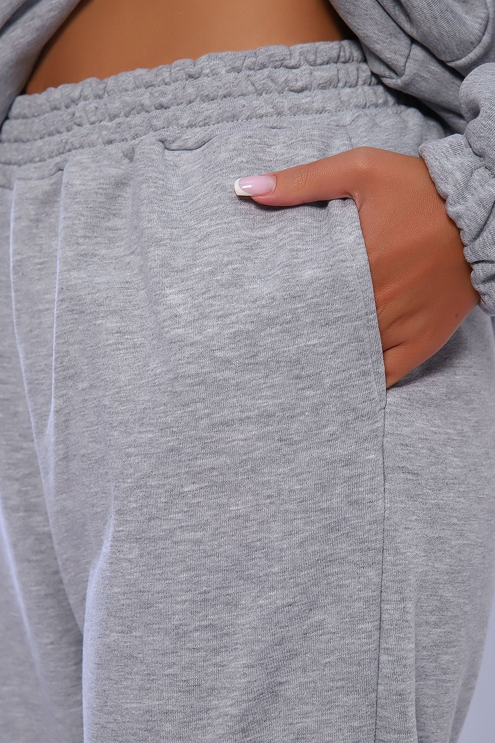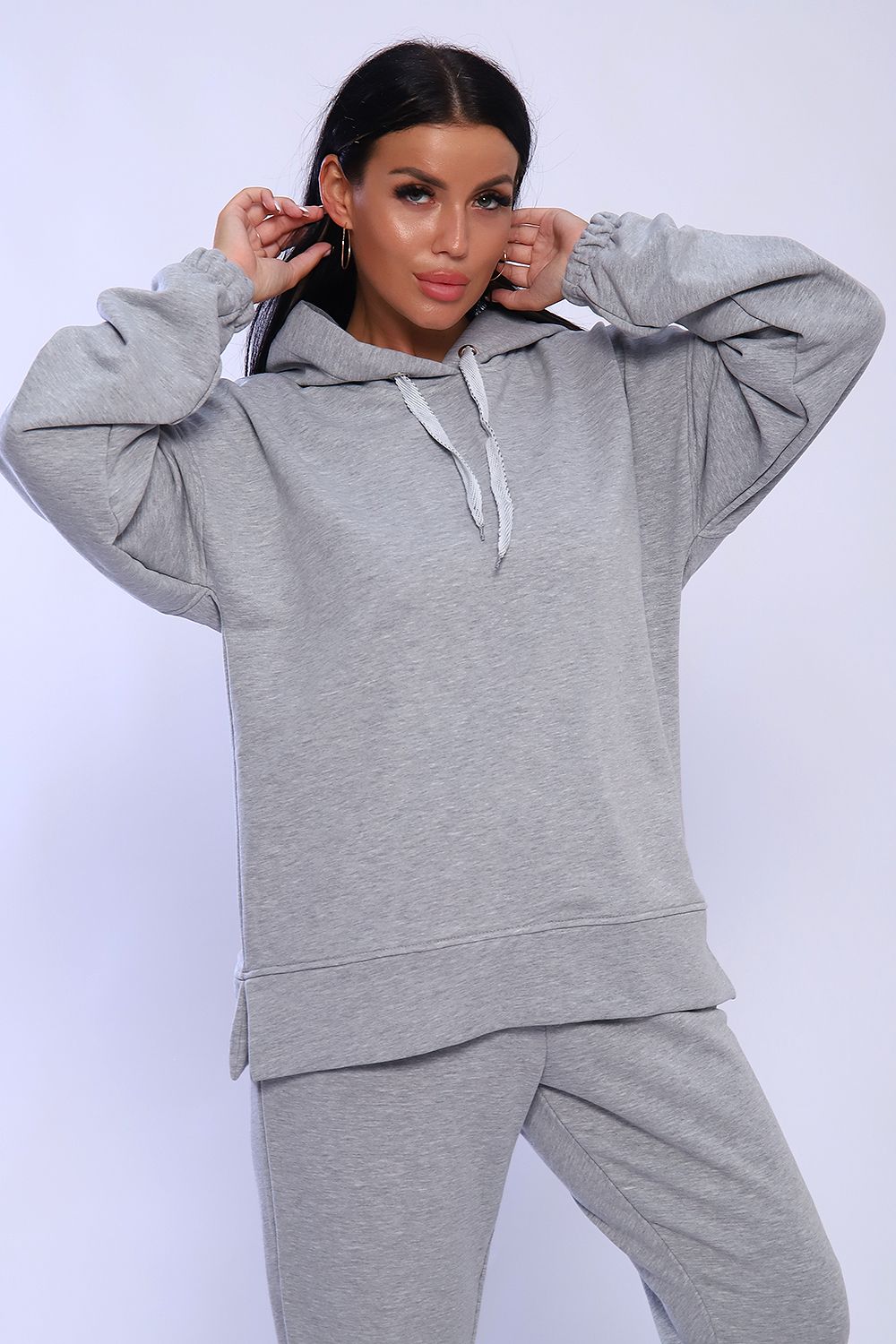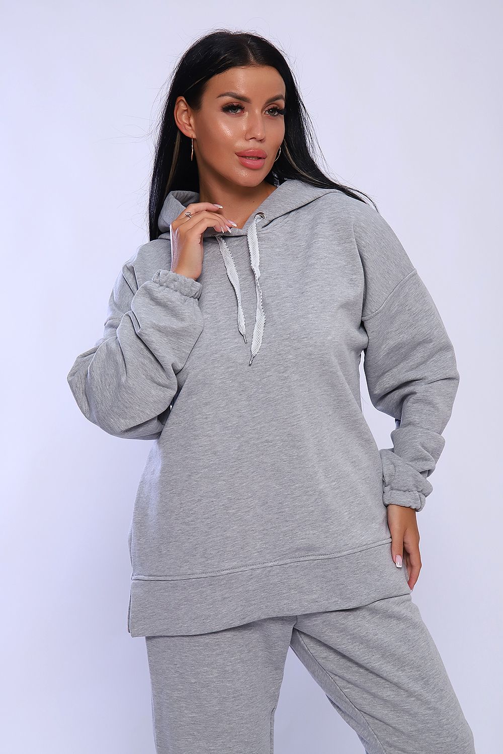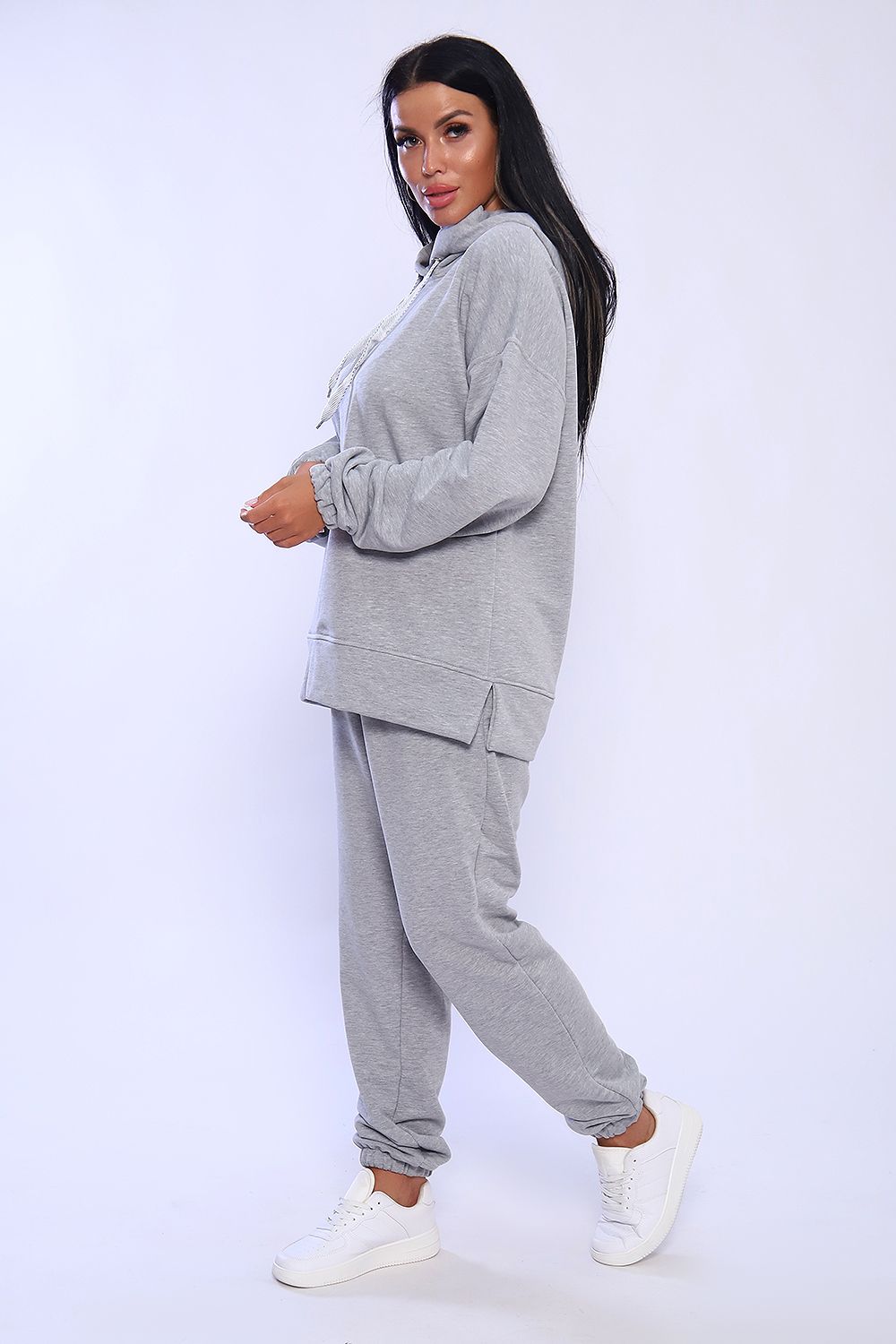 Костюм выполнен из трикотажного полотна футер 3-х нитка диагональ петля (100% хлопок). Толстовка свободного силуэта, имеет капюшон с люверсами и шнурком. Линия плеча спущена (в измерениях длина рукава указана от шва втачивания рукава), низ рукава обработан резинкой, низ изделия обработан поясом с разрезами в боковых швах. Брюки имеют притачной пояс с резинкой и карманы в боковых швах. Низ брюк обработан резинкой. Ткань Костюма плотная, теплая, приятная к телу, согревающая в прохладную погоду, данная модель не обтягивает фигуру, скрывает мелкие огрехи силуэта, комплект уместен для носки в любых повседневных ситуациях и подходит для любого типа фигуры. Рекомендуемый режим стирки 30 t.