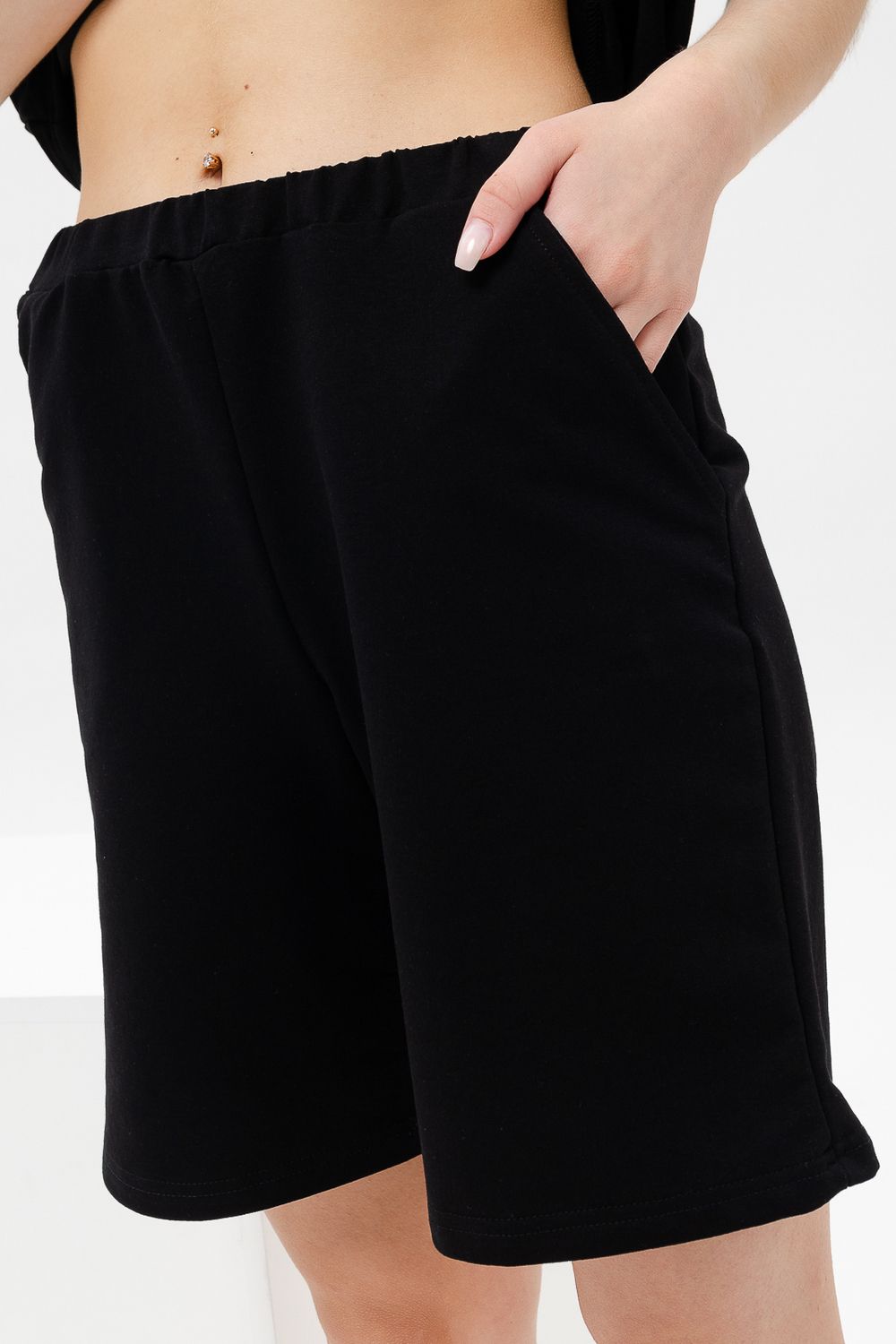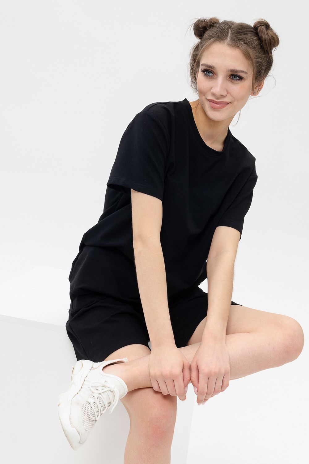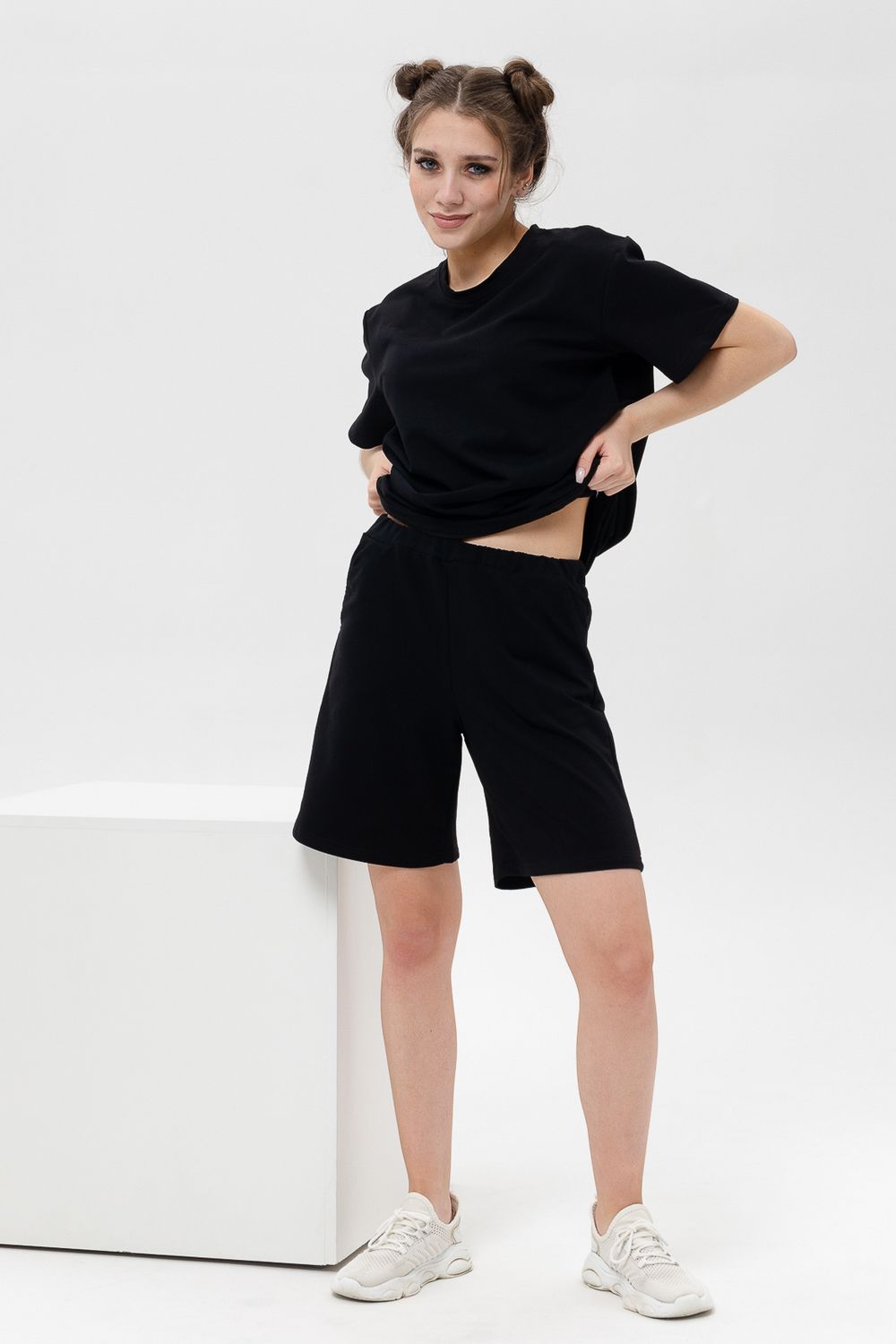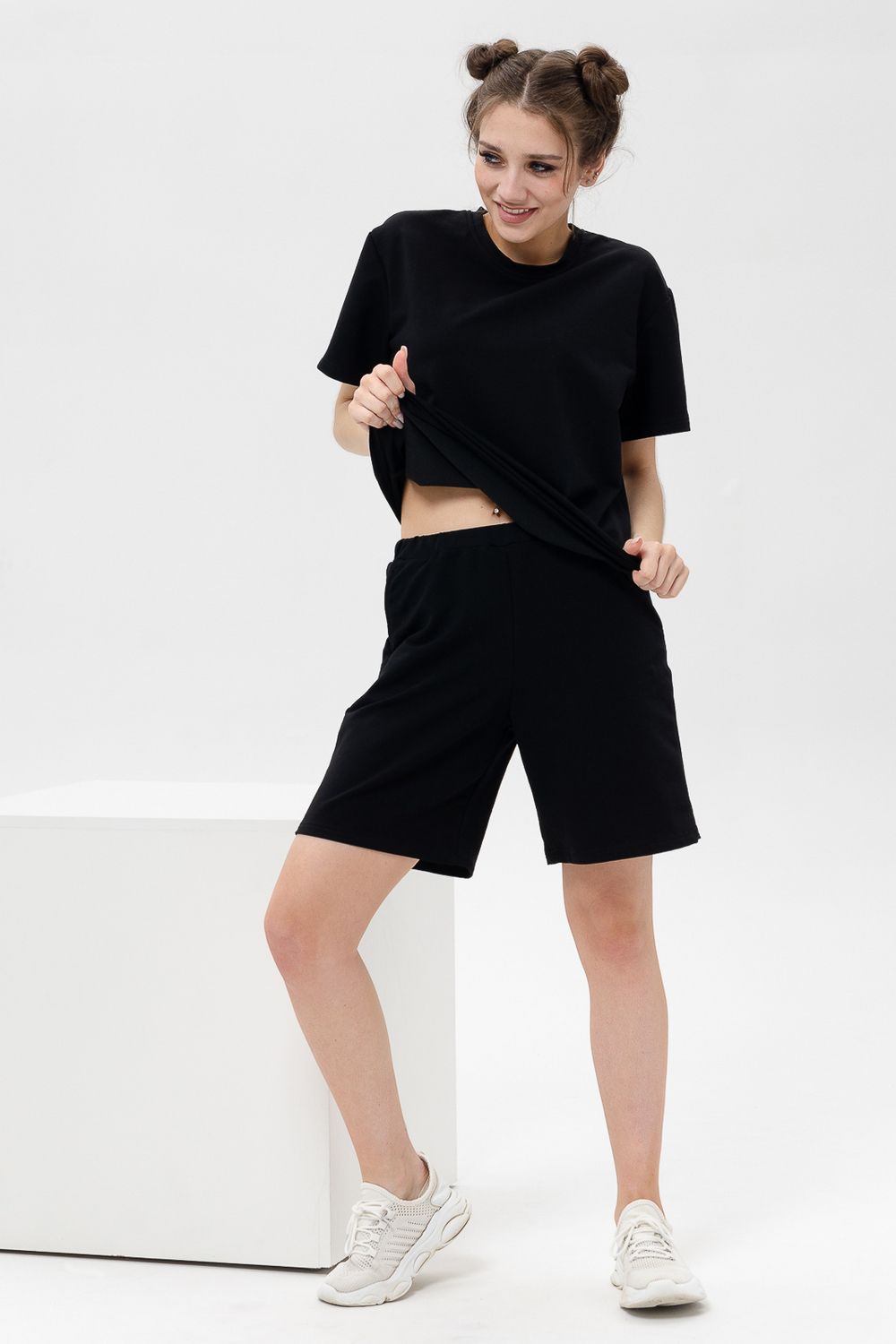 Женский костюм из футболки с шортами. Верх: однотонная футболка с коротким рукавом. Комфортная футболка для дома и занятий спортом. Актуальный крой и трендовые расцветки модели делают её универсальной для летнего гардероба. Низ: Шорты свободного покроя с карманами. Костюм спортивный в приятных модных расцветках. Комплект будет идеально смотреться как домашний и как спортивный на летний сезон. Костюм сшит из футера. Это износостойкая, приятная на ощупь, мягкая ткань из натурального хлопка. За ней легко ухаживать