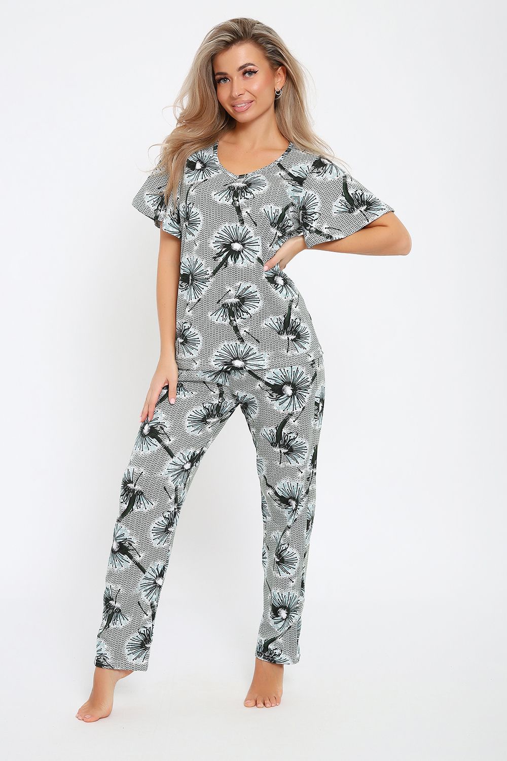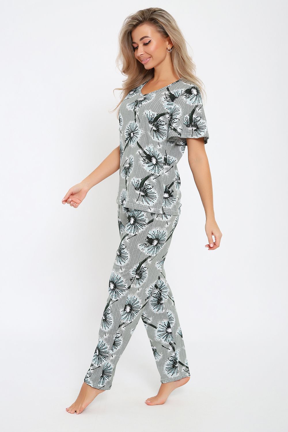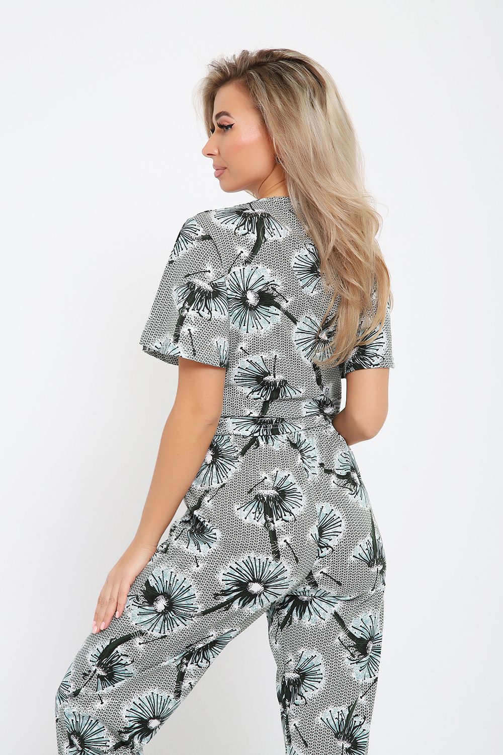 Домашний костюм состоит из футболки и брюк. Брюки с карманами. Футболка с короткими рукавами - крылышками. Комфортен для повседневной носки.