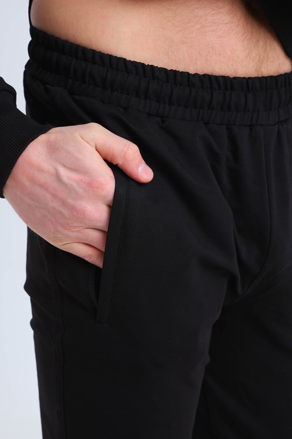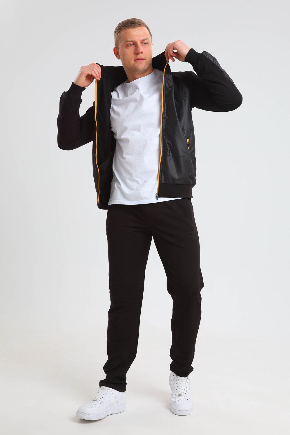 Спортивный мужской костюм. Кофта на молнии, спереди и на рукавах декоративная вставка из плащевки, сбоку вышивная надпись. Воротник - стойка, низ кофты и рукава на манжетах. Брюки прямого кроя, карманы на молнии. Костюм отличного качества из турецкой ткани. Подойдет для прогулок, спорта, отдыха.