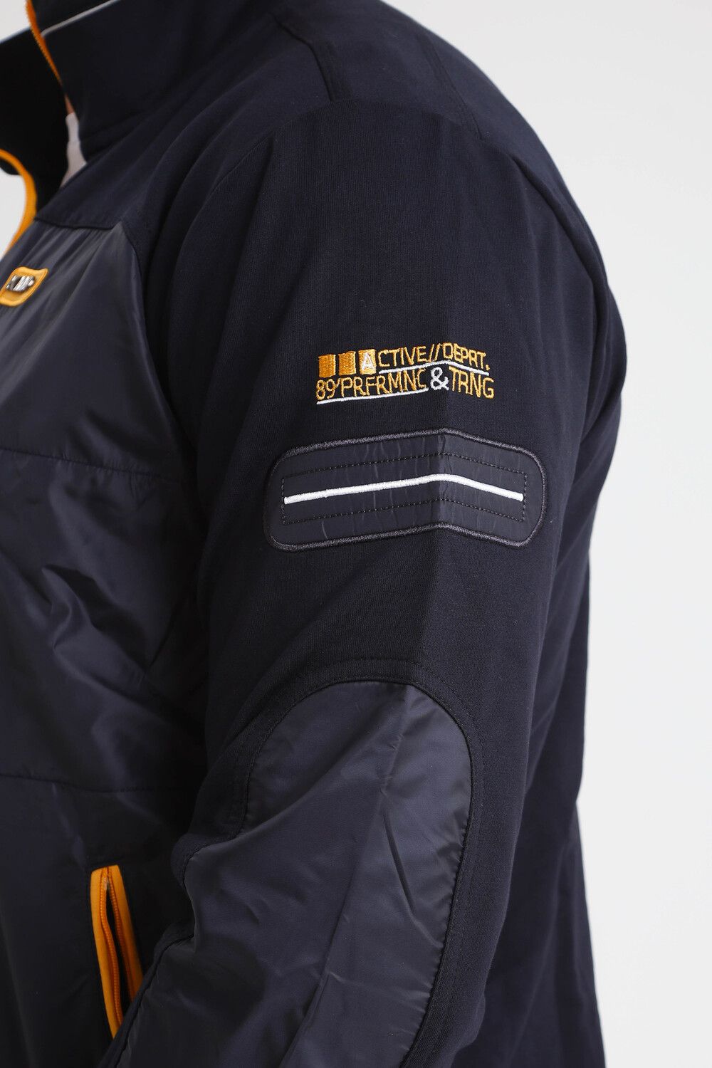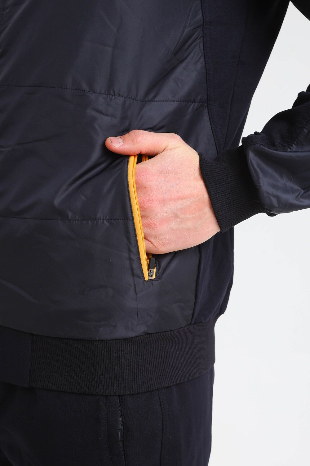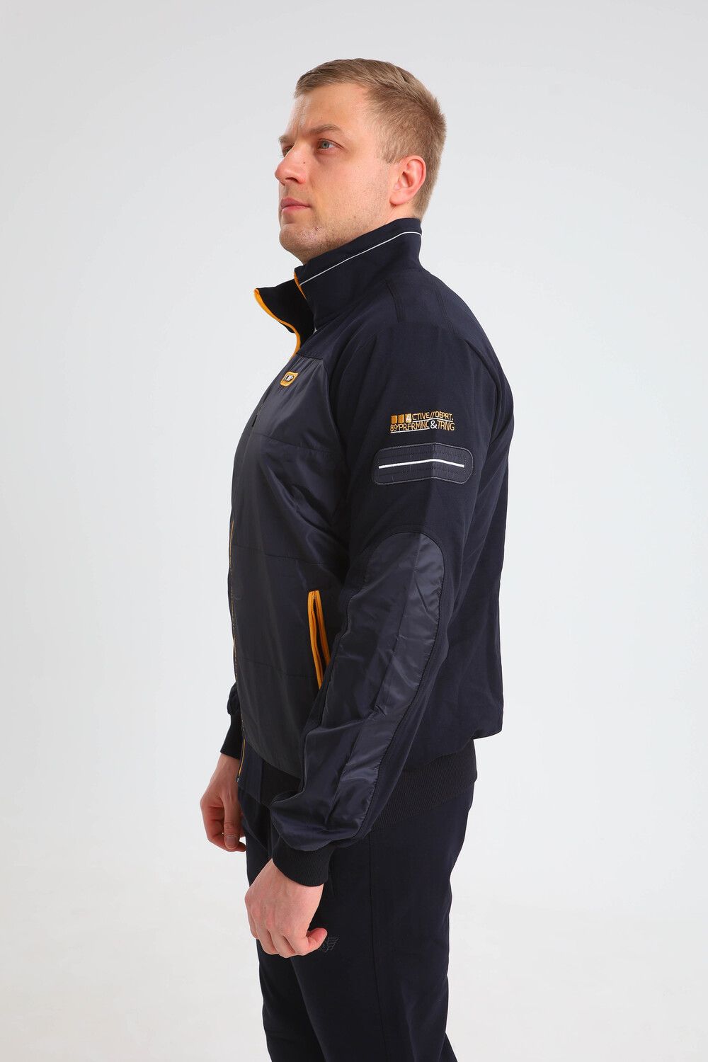 Спортивный мужской костюм. Кофта на молнии, спереди и на рукавах декоративная вставка из плащевки, сбоку вышивная надпись. Воротник - стойка, низ кофты и рукава на манжетах. Брюки прямого кроя, карманы на молнии. Костюм отличного качества из турецкой ткани. Подойдет для прогулок, спорта, отдыха.