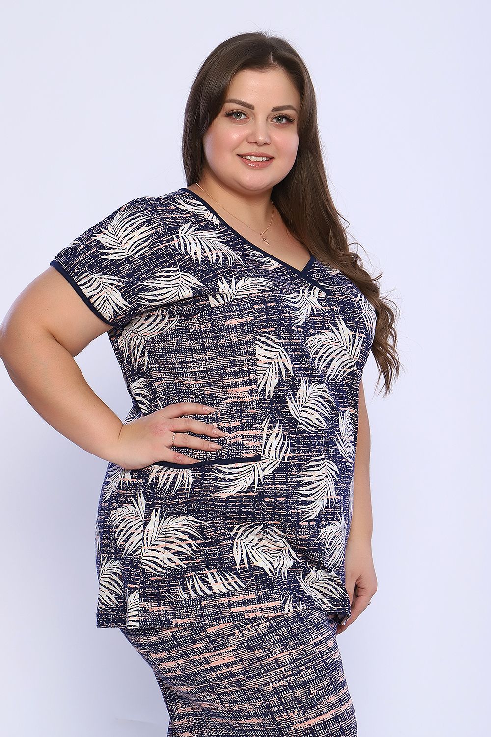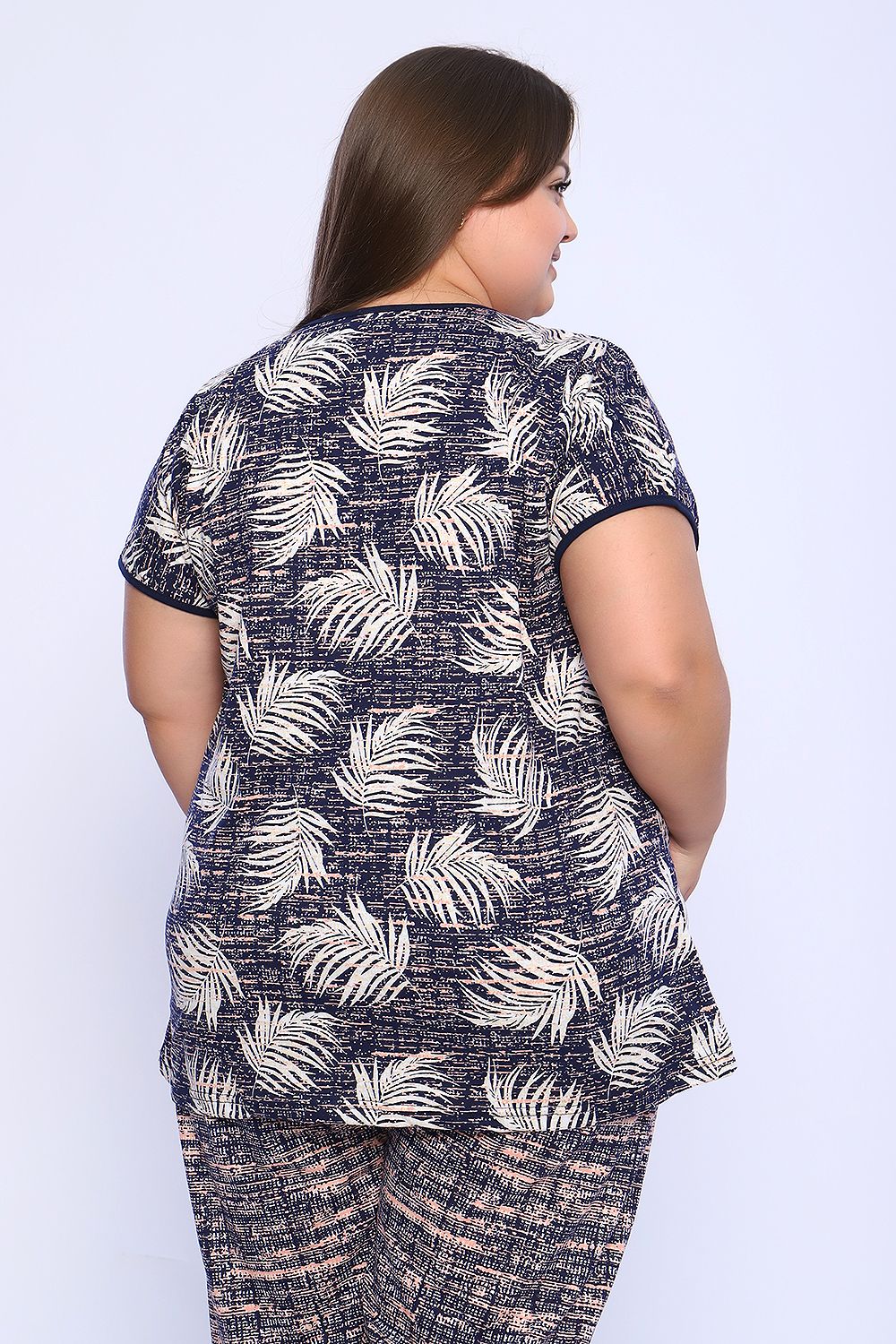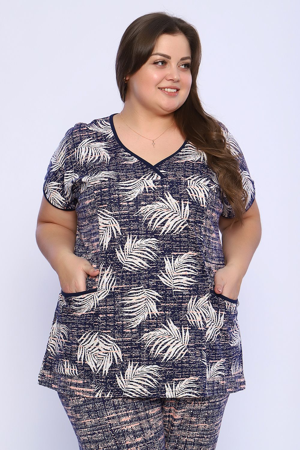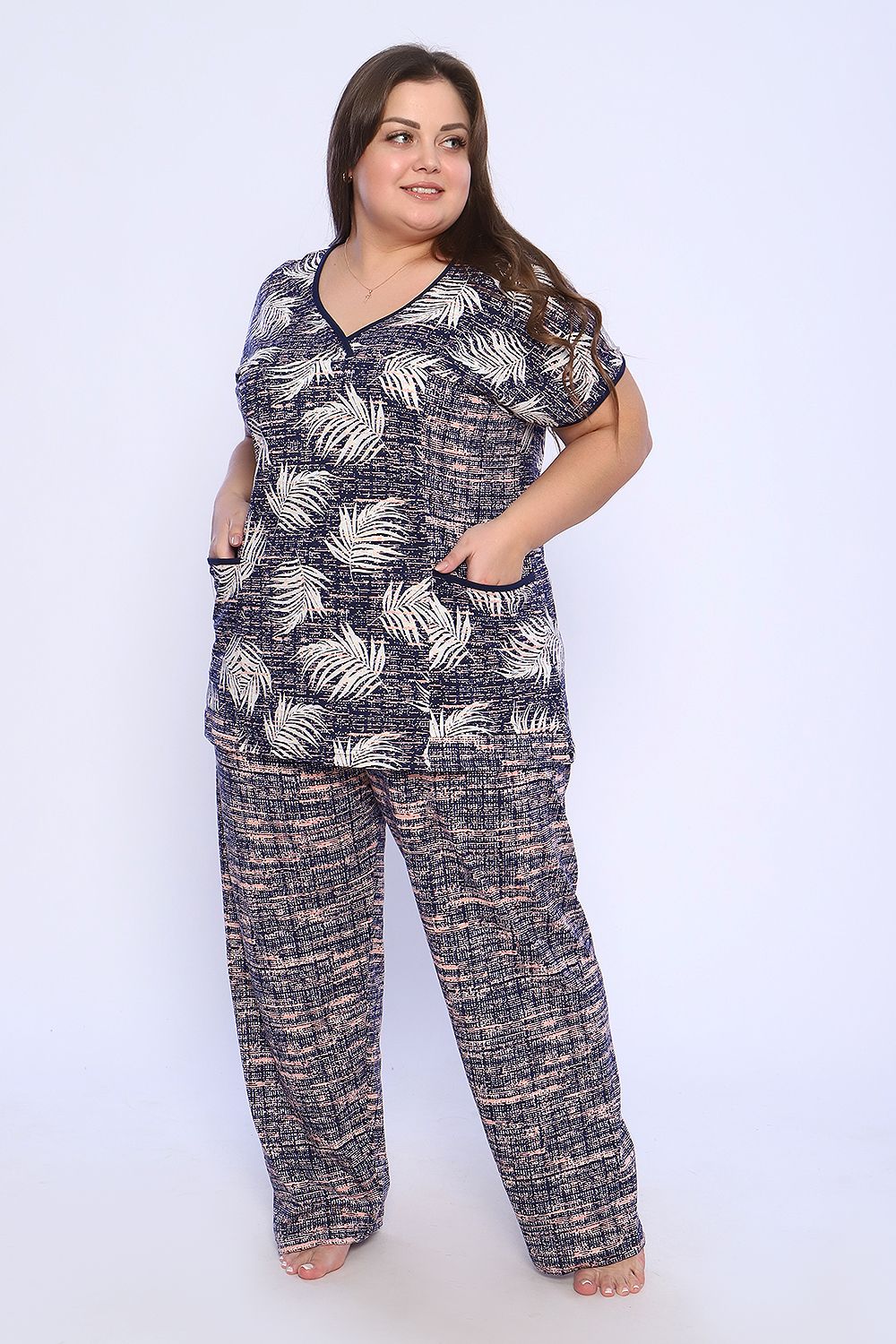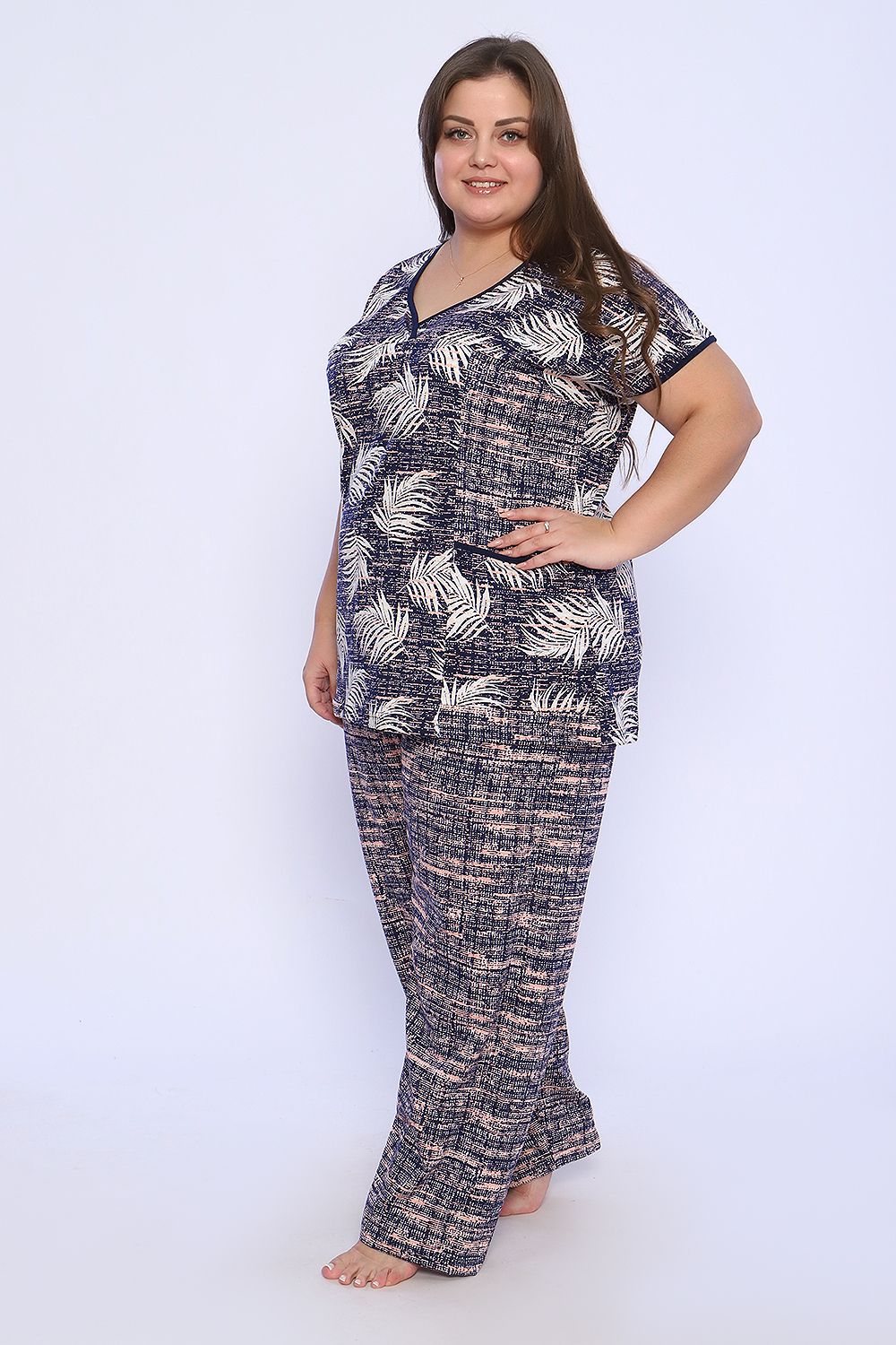 Костюм состоит из блузки и брюк. Брюки полной длины с притачной резинкой, низ изделия обработан швом в подгибку. Блузка со спущенной проймой, по бокам два функциональных кармана.