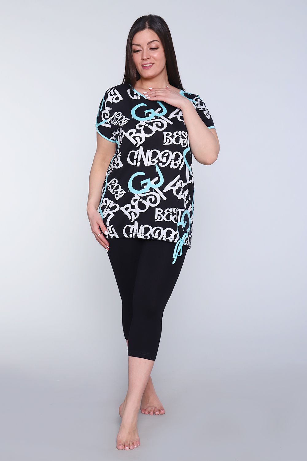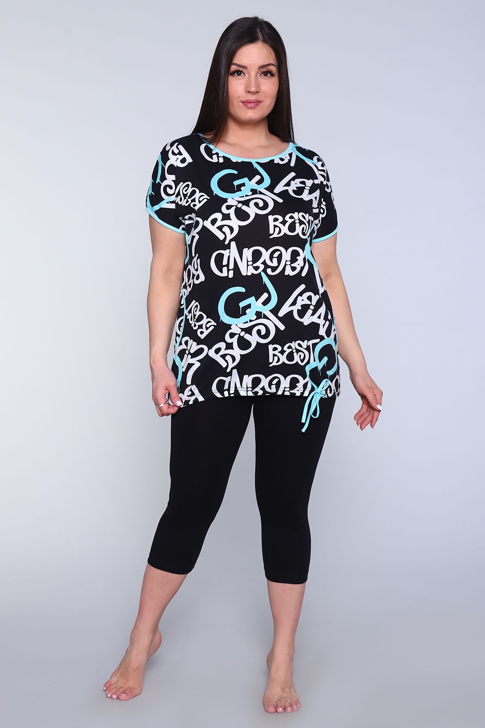 Костюм женский состоит из бриджей и кофты. Бриджи с притачной резинкой, низ изделия обработан швом в подгибку. Низ кофты обработан швом в подгибку с прокладыванием шнурка. По бокам два кармана. Входы в карман, горловина и рукава обработаны контрастной бейкой.