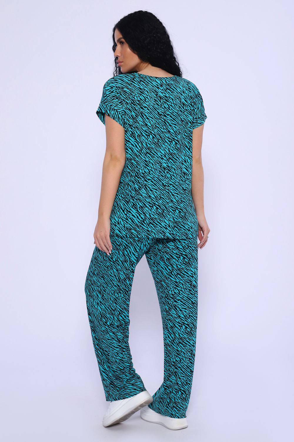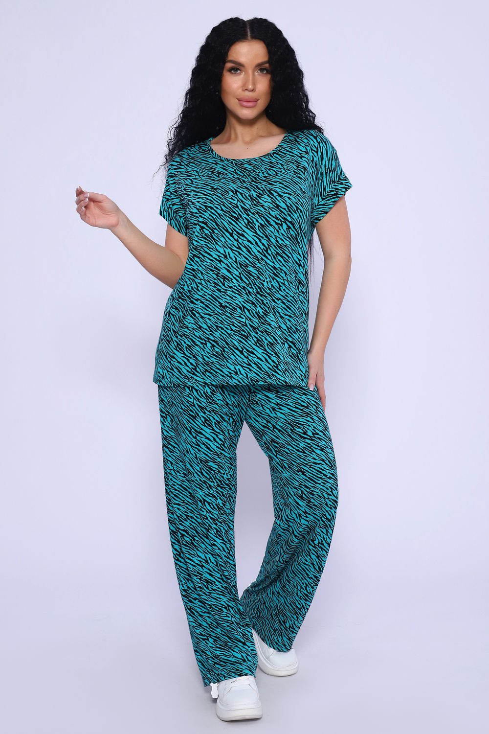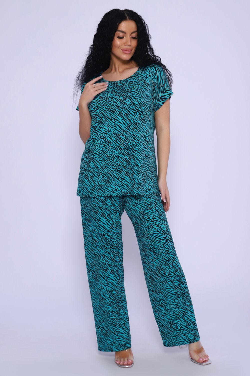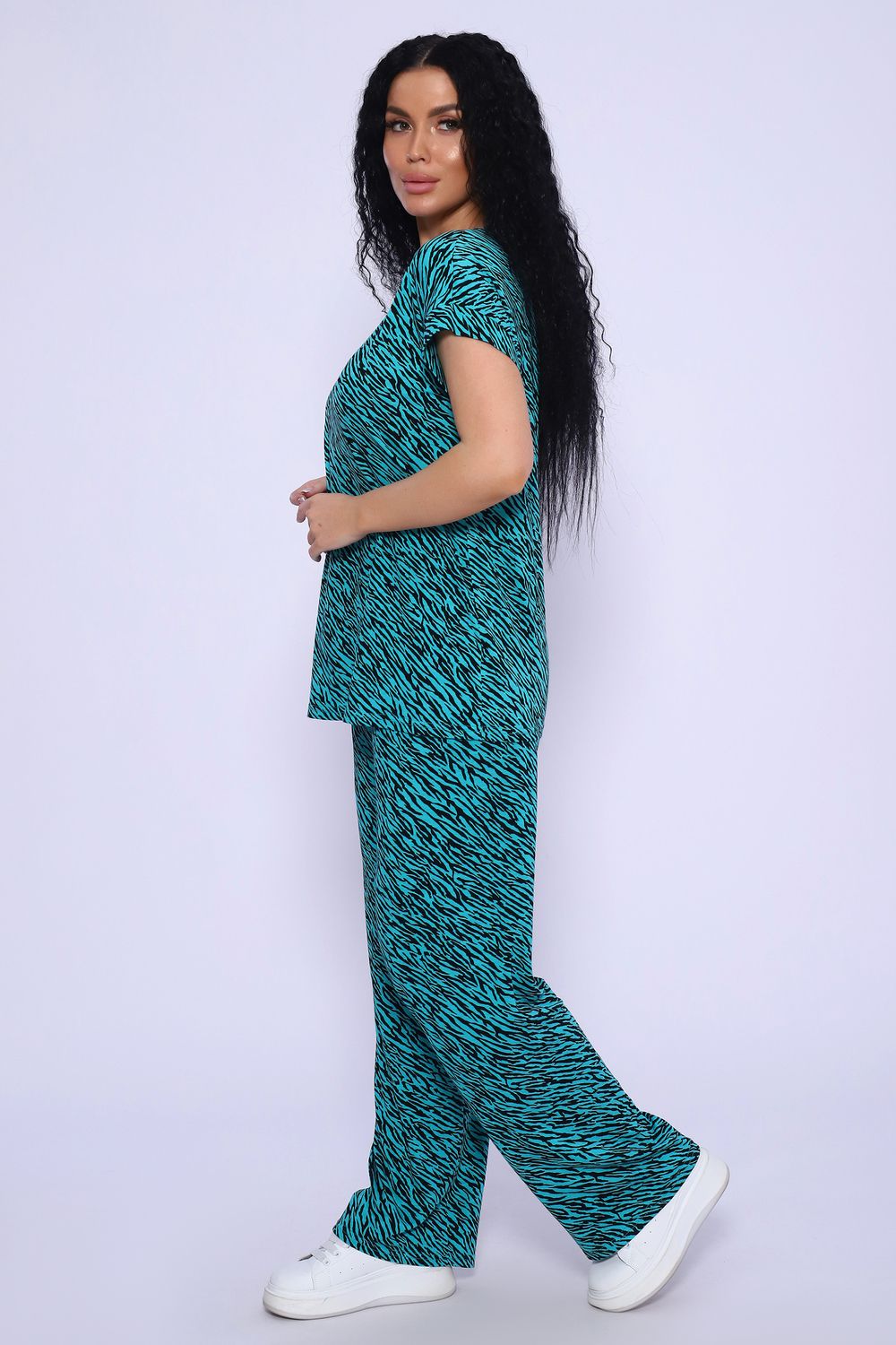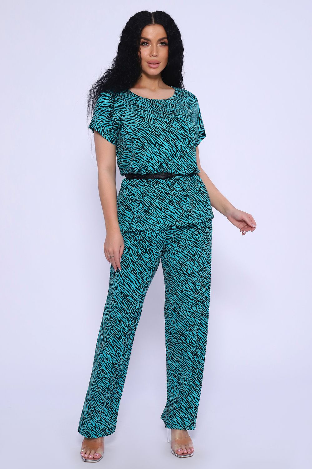 Модель свободного силуэта - легкий, яркий брючный костюм украсит как повседневный, так и офисный гардероб. Блузка полуприлегающего силуэта со спущенным рукавом на манжете, не сковывает движений, а широкие брюки палаццо на эластичном поясе-резинке так же свободны на фигуре. Костюм прекрасно будет смотреться на девушках и женщинах любой комплекции, не полнит, при желании можно подчеркнуть талию любым ремешком. Модель изготовлена из дышащей трикотажной ткани вискоза, которая очень приятна к телу, не мнётся, универсальна и актуальна!