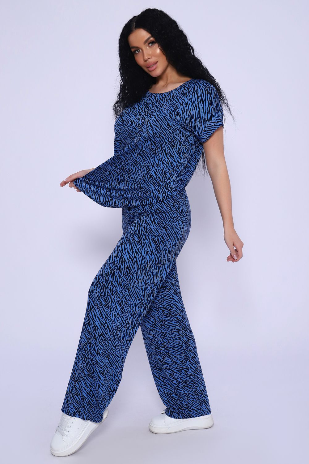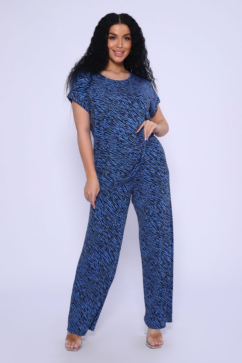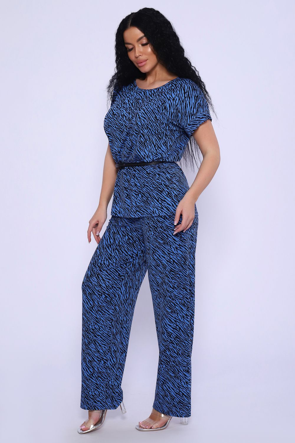 Модель свободного силуэта - легкий, яркий брючный костюм украсит как повседневный, так и офисный гардероб. Блузка полуприлегающего силуэта со спущенным рукавом на манжете, не сковывает движений, а широкие брюки палаццо на эластичном поясе-резинке так же свободны на фигуре. Костюм прекрасно будет смотреться на девушках и женщинах любой комплекции, не полнит, при желании можно подчеркнуть талию любым ремешком. Модель изготовлена из дышащей трикотажной ткани вискоза, которая очень приятна к телу, не мнётся, универсальна и актуальна!