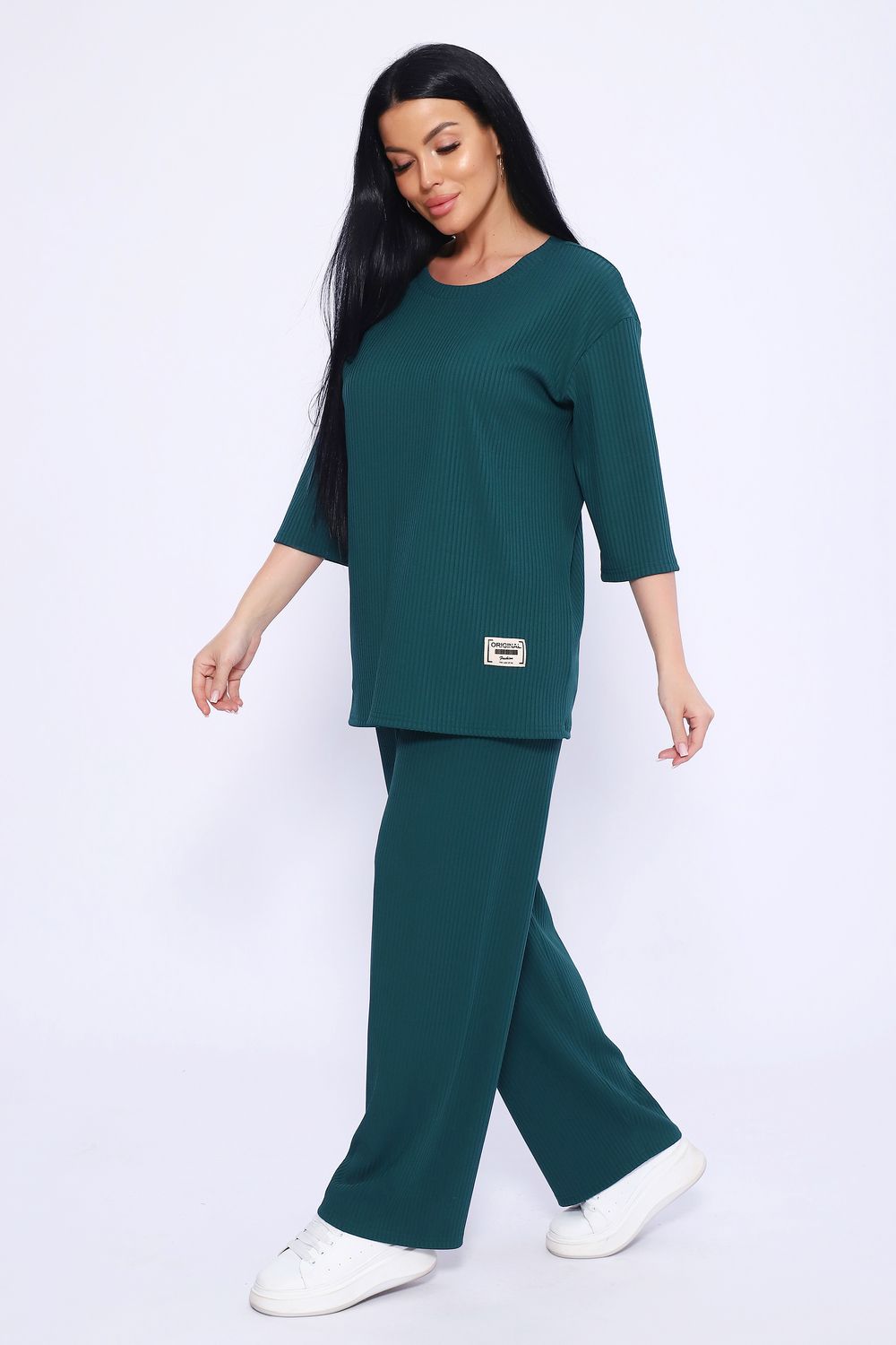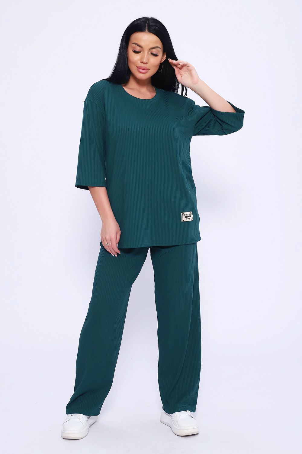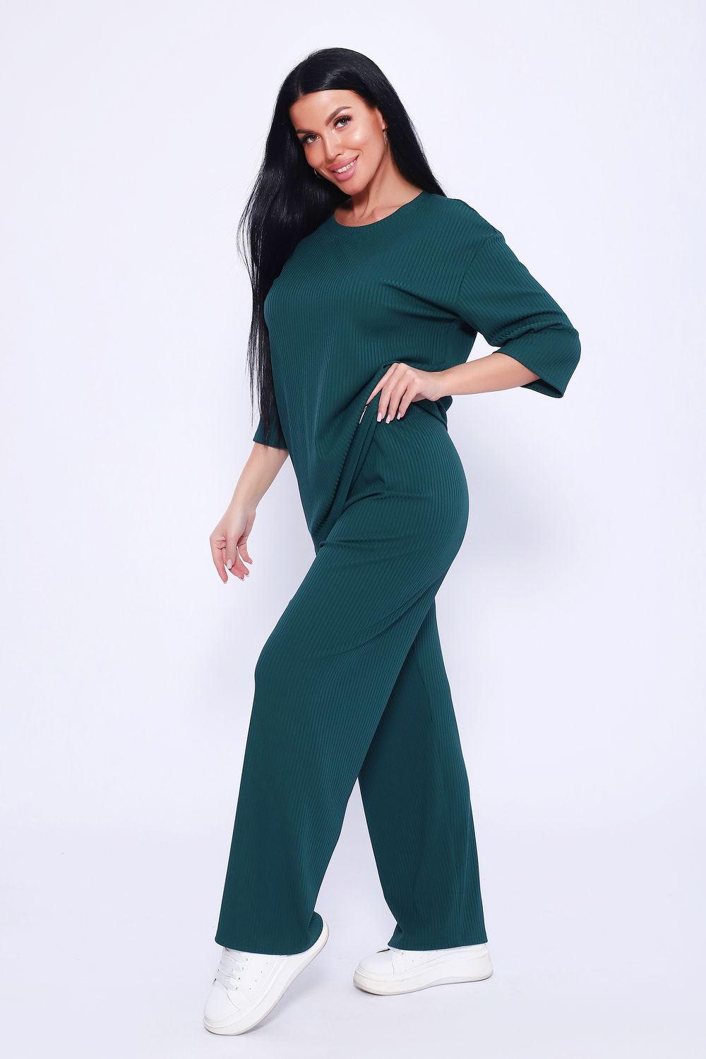 Модель свободного силуэта состоит из джемпера с рукавом 34 и брюк палаццо. Костюм изготовлен из модной трикотажной ткани лапша, она плотная, хорошо тянется и очень красиво струится при движении, не мнётся и эффектно смотрится с любым вашим образом. Этот костюмчик будет уместен и дома, и на прогулках, и в поездках на отдых. В замерах длина рукава указана от начала горловины