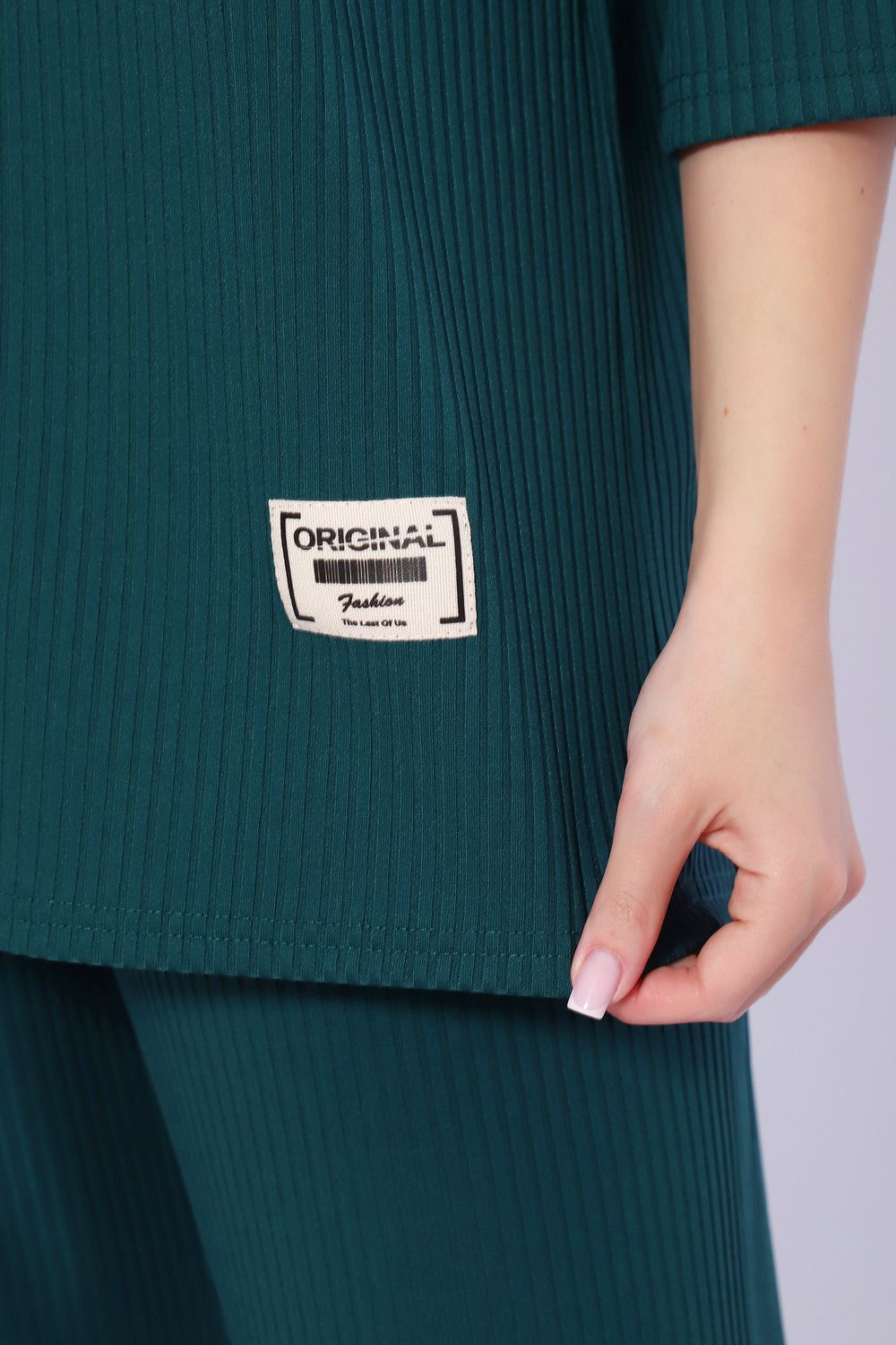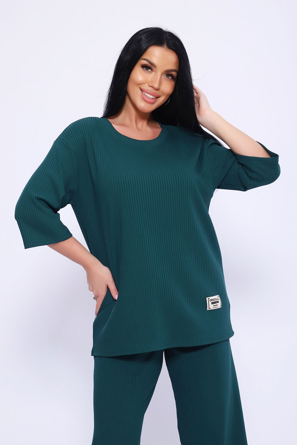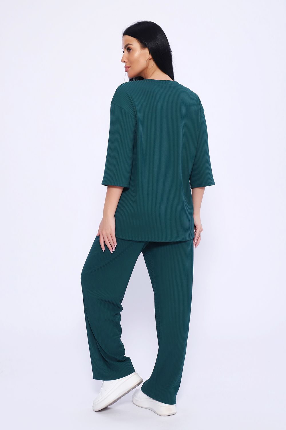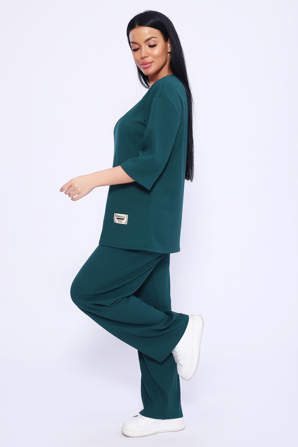 Модель свободного силуэта состоит из джемпера с рукавом 34 и брюк палаццо. Костюм изготовлен из модной трикотажной ткани лапша, она плотная, хорошо тянется и очень красиво струится при движении, не мнётся и эффектно смотрится с любым вашим образом. Этот костюмчик будет уместен и дома, и на прогулках, и в поездках на отдых. В замерах длина рукава указана от начала горловины