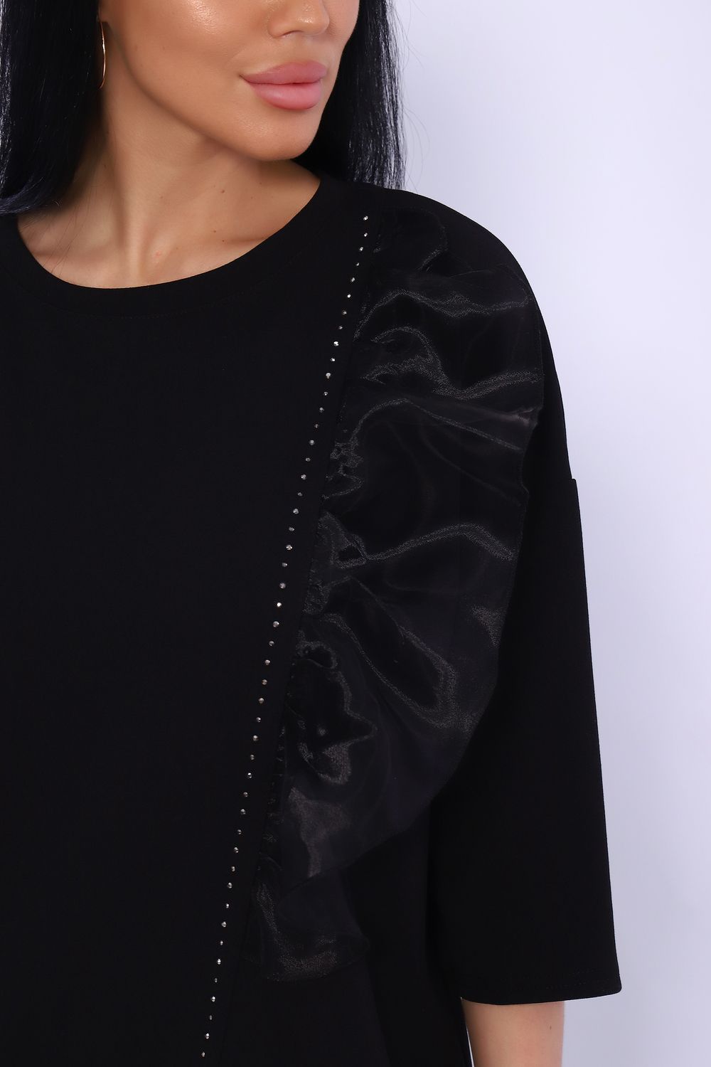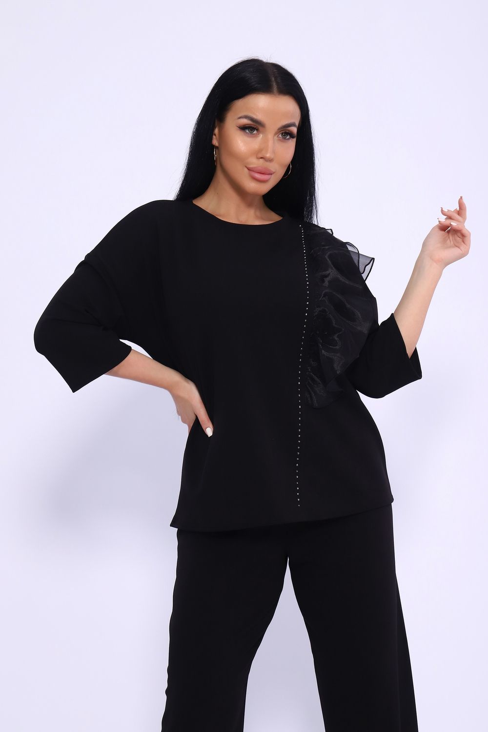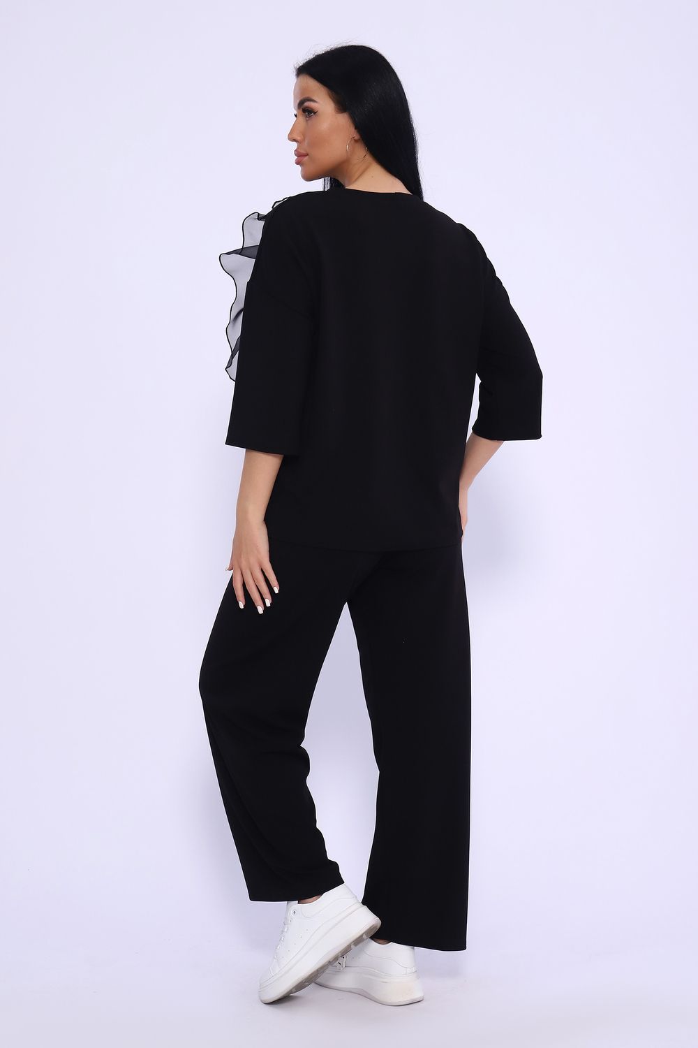 Модель свободного силуэта состоит из брюк палаццо и туники с рукавом 34. По переду туники дорожка из страз и оборка из органзы, что делает костюм интересным и эффектным. Брюки с очень удобной высокой посадкой, а туника тоже комфортно и свободно подойдёт практически на любую фигуру. Добавьте этот образ в свой праздничный или повседневный день, и ваша жизнь будет более красочной. В замерах длина рукава указана от начала горловины.