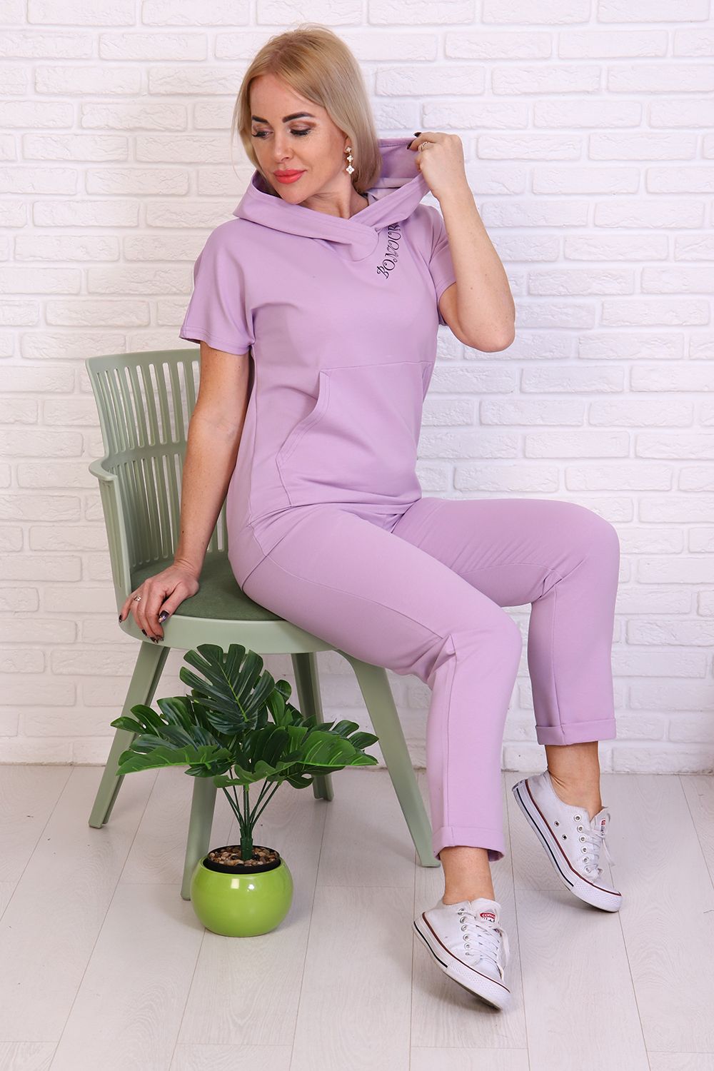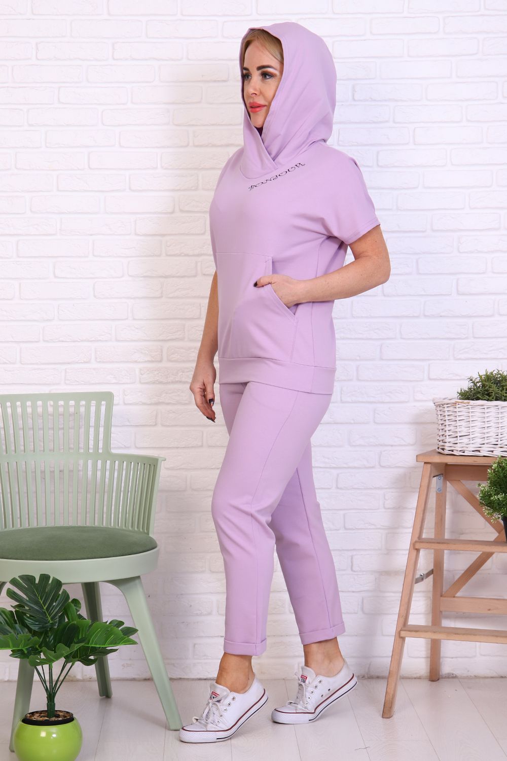 Молодежный костюм с капюшоном. Кофта свободного кроя, карман кенгуру. Неброская печать возле капюшона. Рукав спущенный. Брюки укороченные с манжетом. Карман с подкроенным бочком. Модный стильный костюмчик на любой вкус.