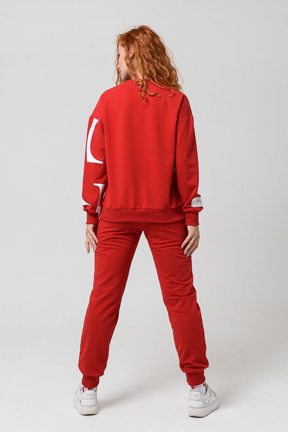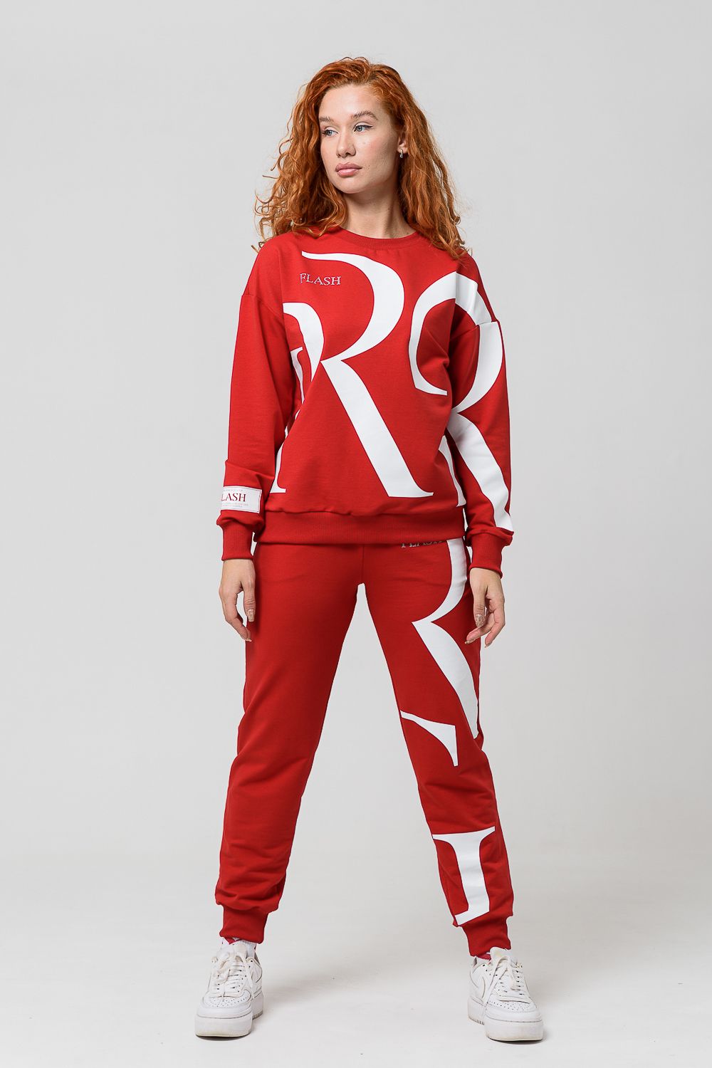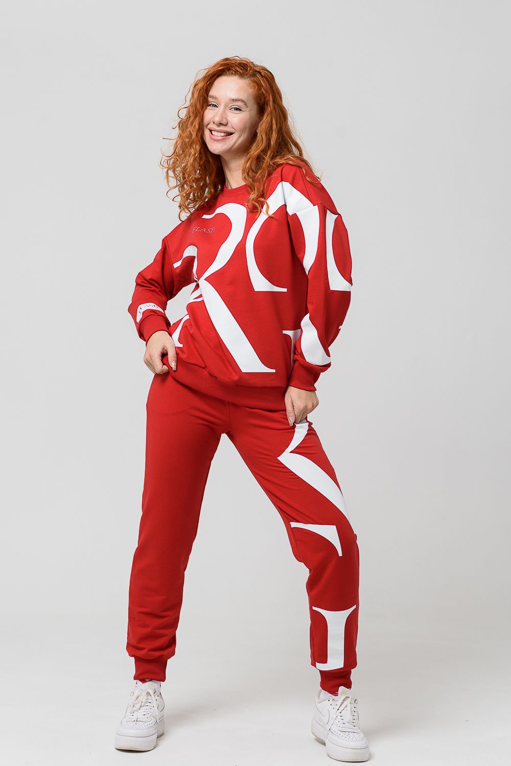 Женский костюм с брюками и толстовкой. Материал футер 2-х нитка с лайкрой. По все длине брюк и толстовки печать. Толстовка с манжетами, по низу брюк резинка.