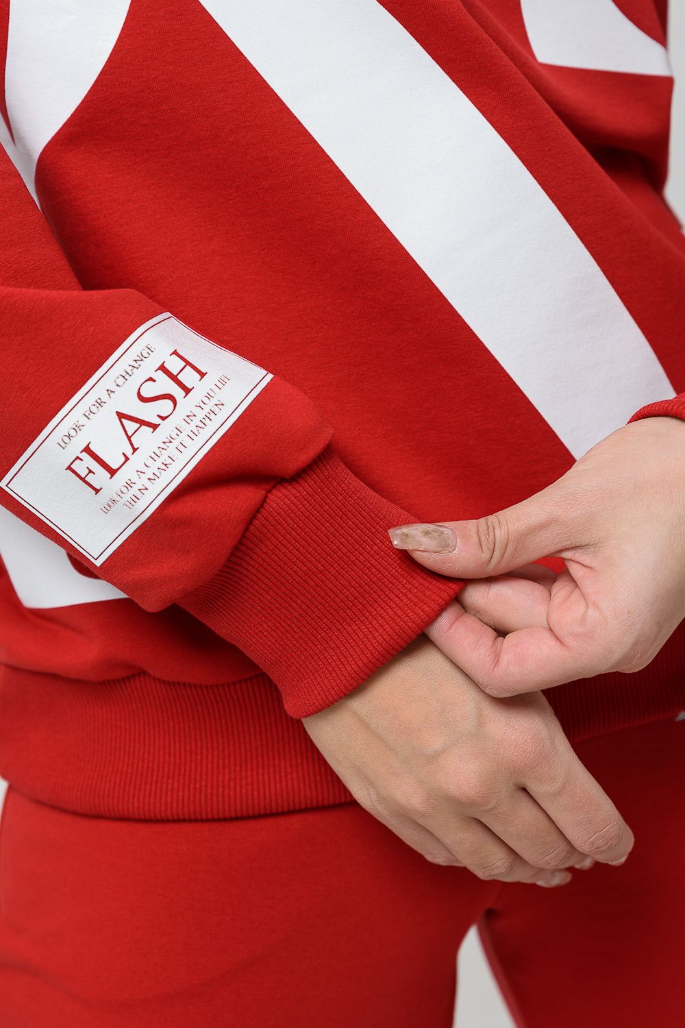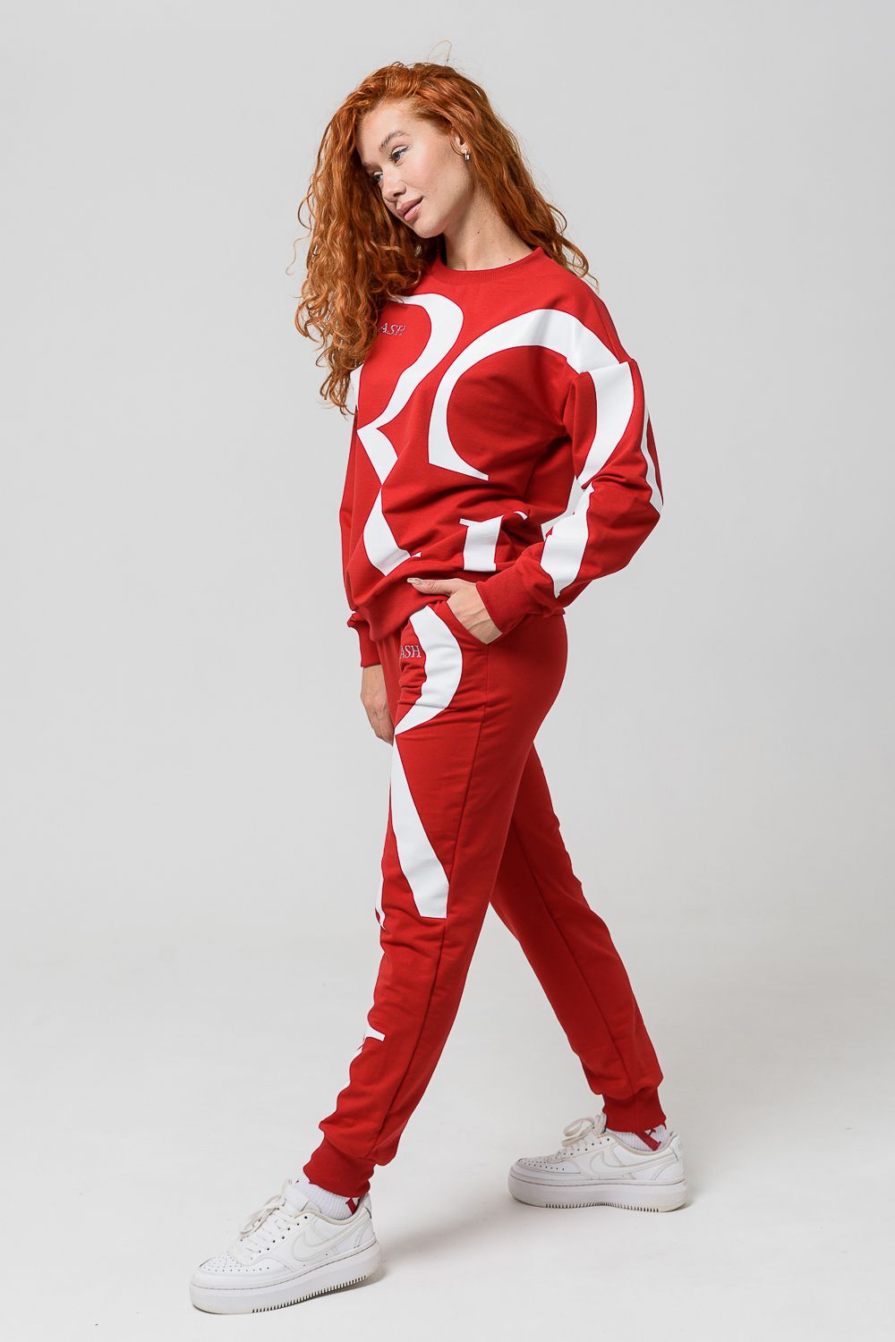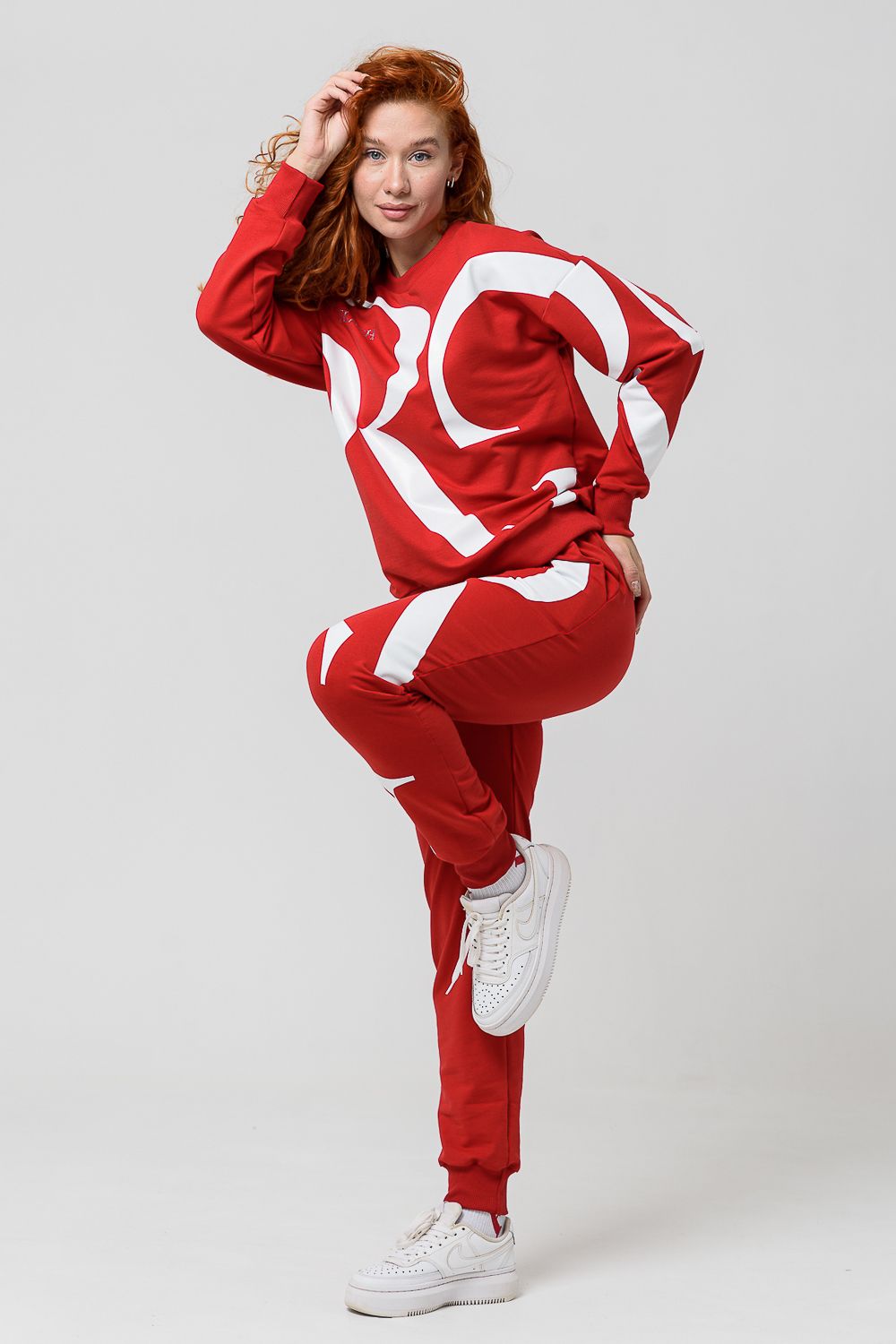 Женский костюм с брюками и толстовкой. Материал футер 2-х нитка с лайкрой. По все длине брюк и толстовки печать. Толстовка с манжетами, по низу брюк резинка.