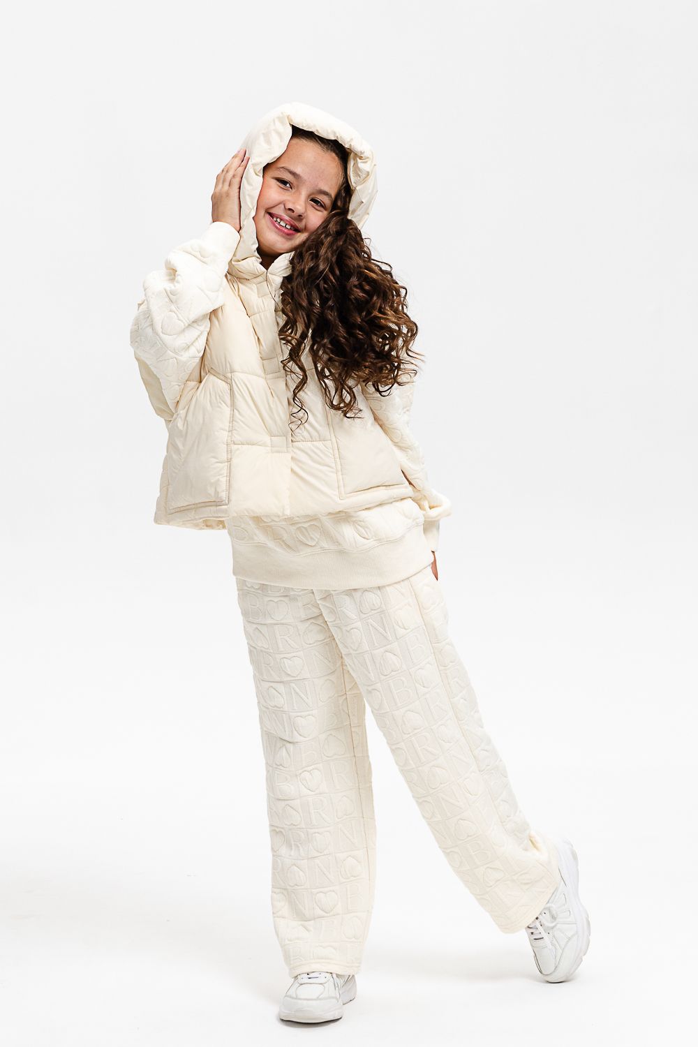Костюм тройка для девочки. Свободные брюки, толстовка и утепленная жилетка.