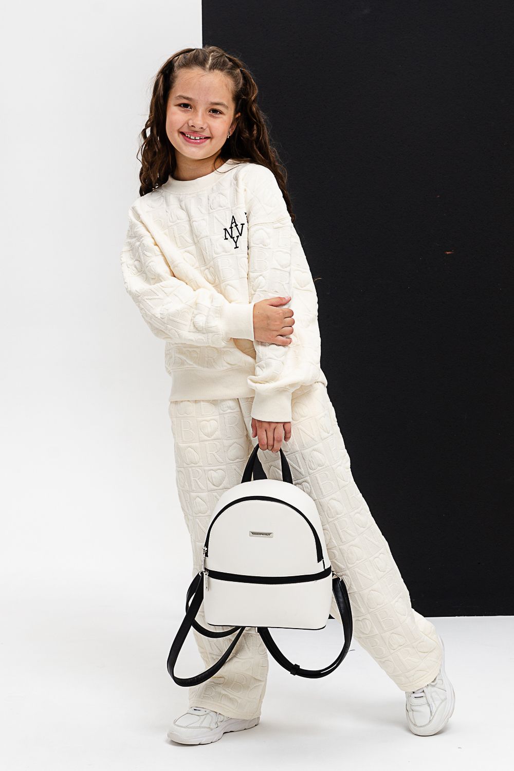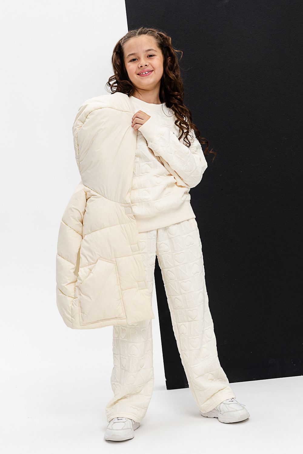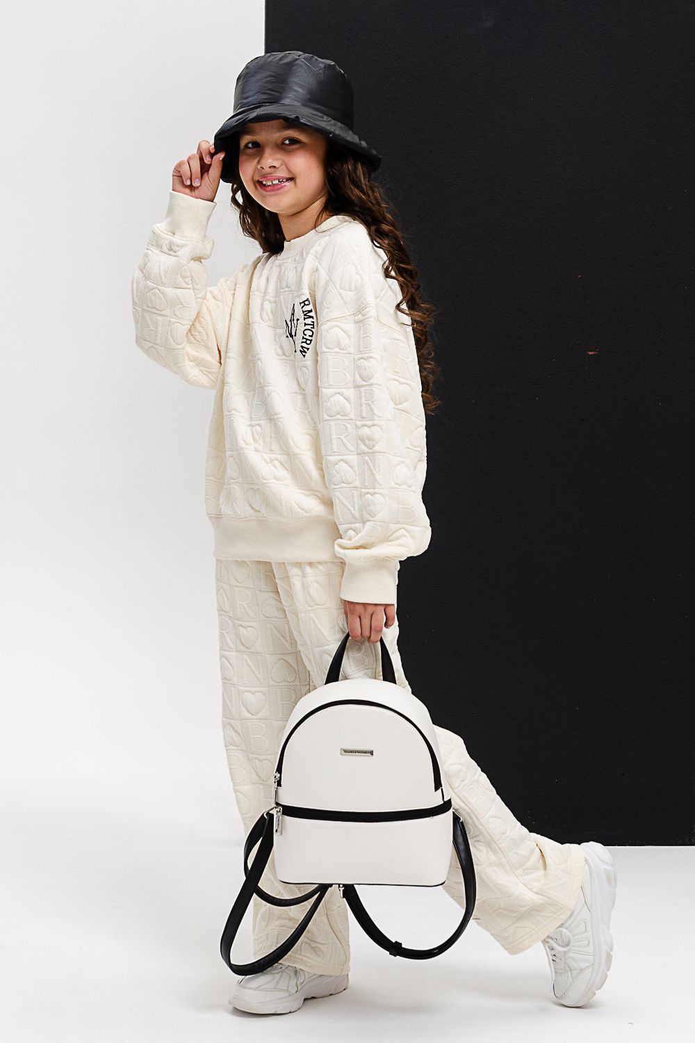 Костюм 28033 детский - черная надпись/молочный
