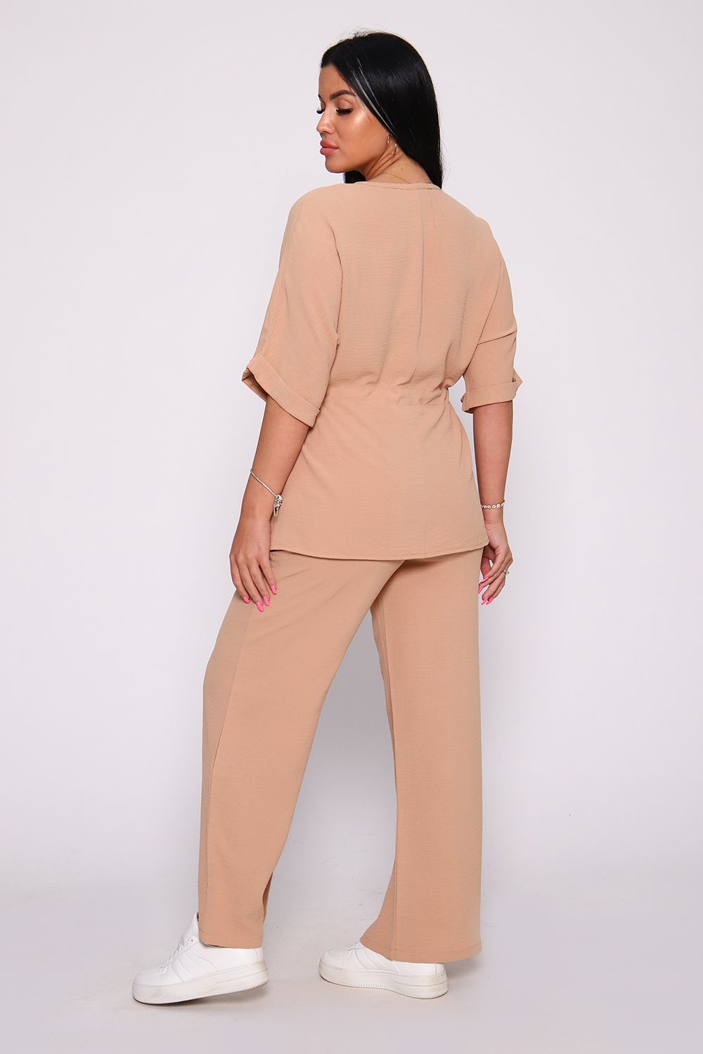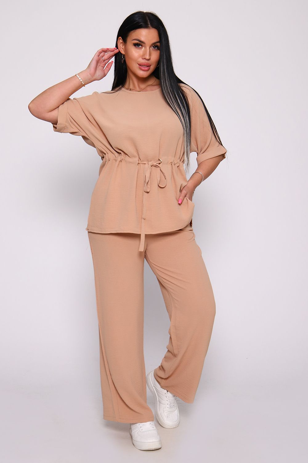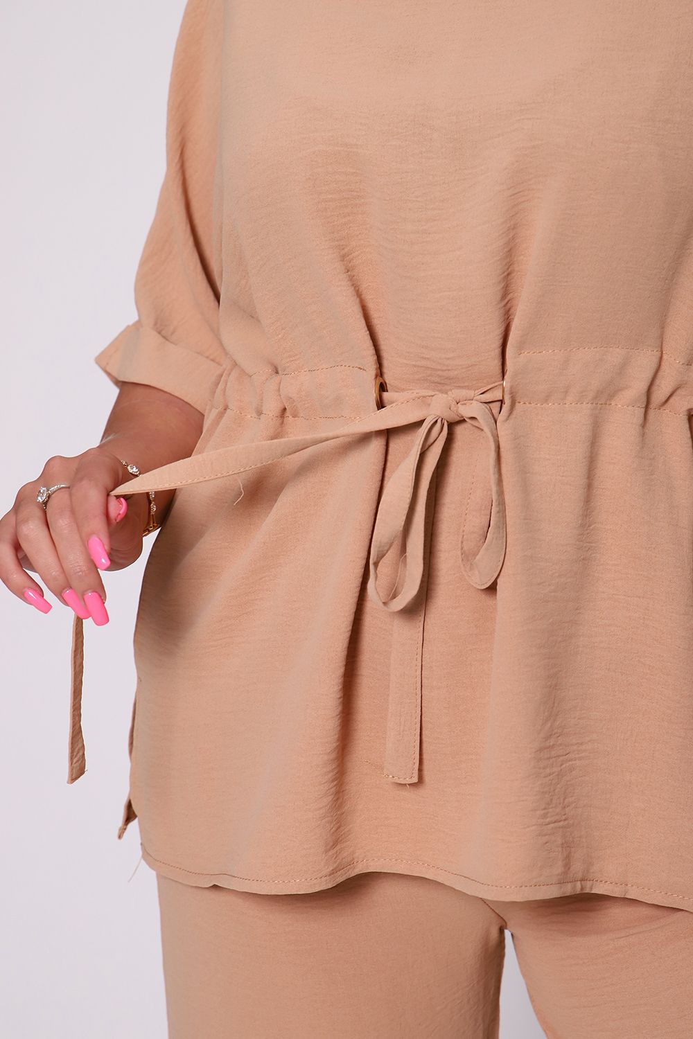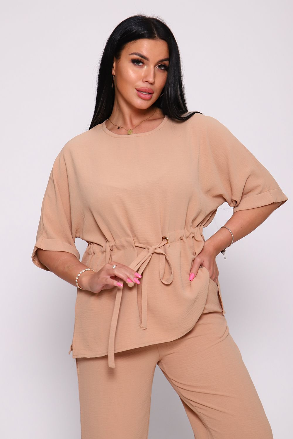 Представляем Вам костюм двойку. Костюм состоит из туники и брюк свободного кроя и доступен в трех расцветках. Модель туники напоминает летучую мышь, что придает костюму легкость и воздушность. Этот костюм - идеальное решение для жаркой погоды, благодаря его легкому и воздушному материалу.